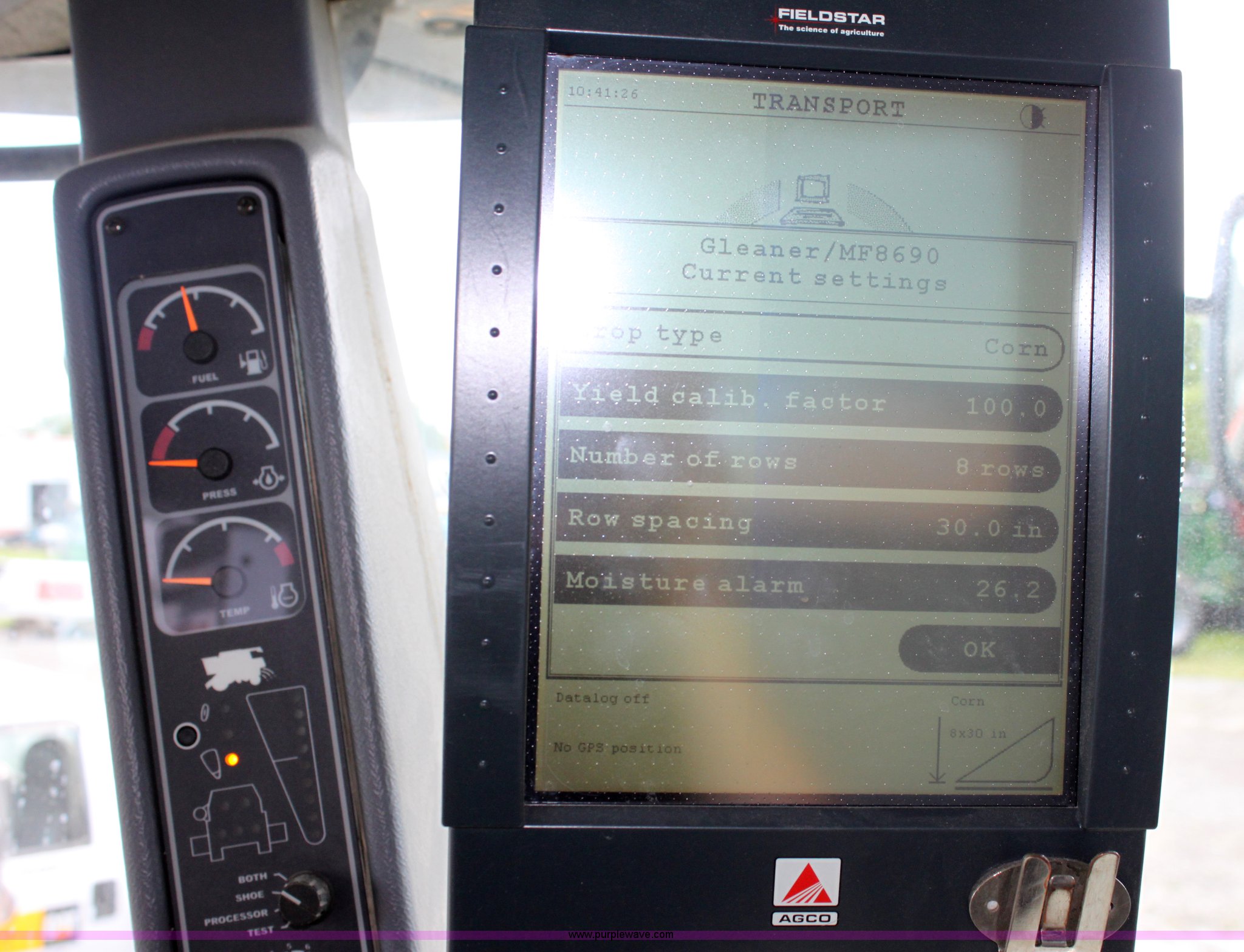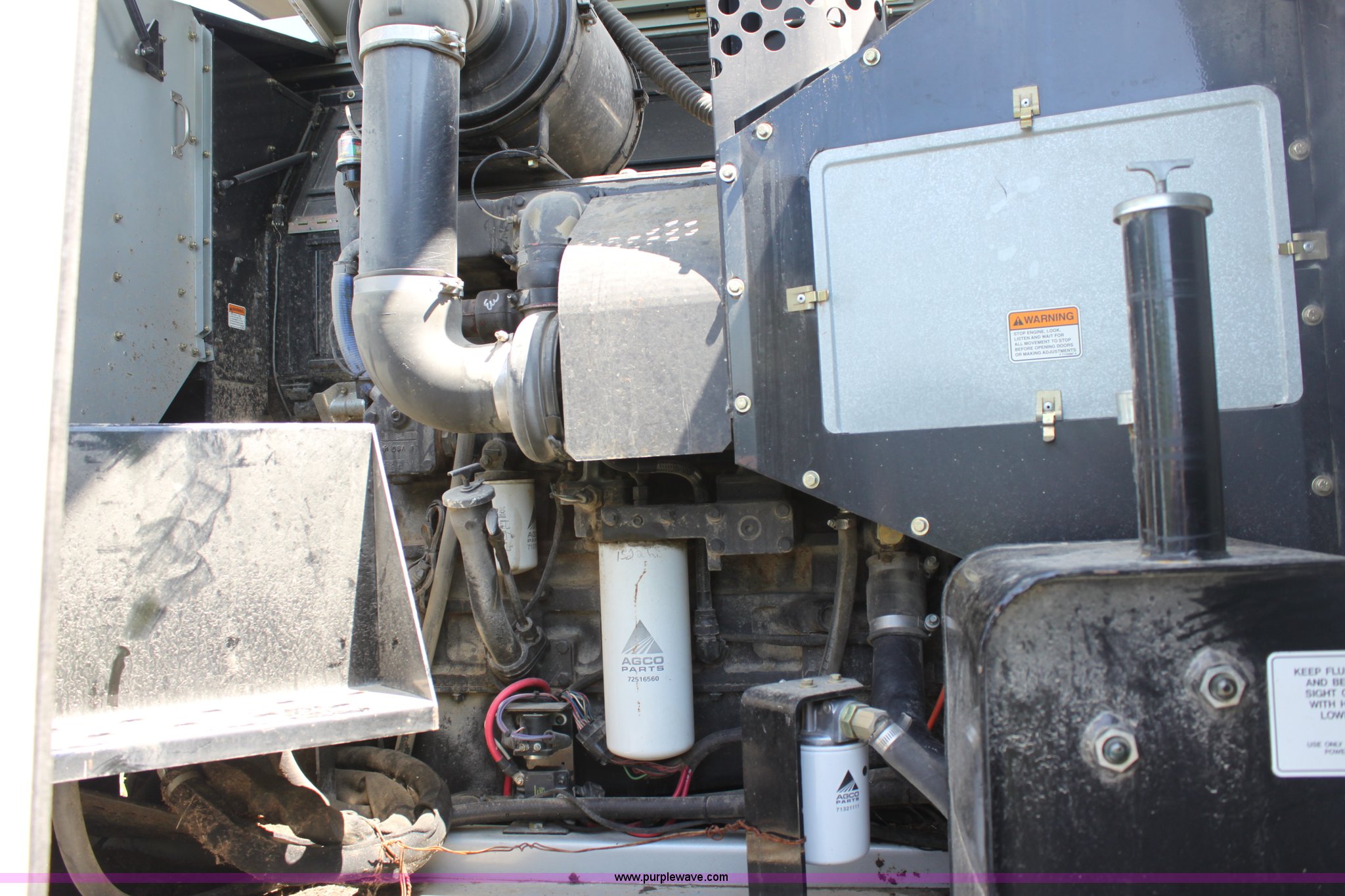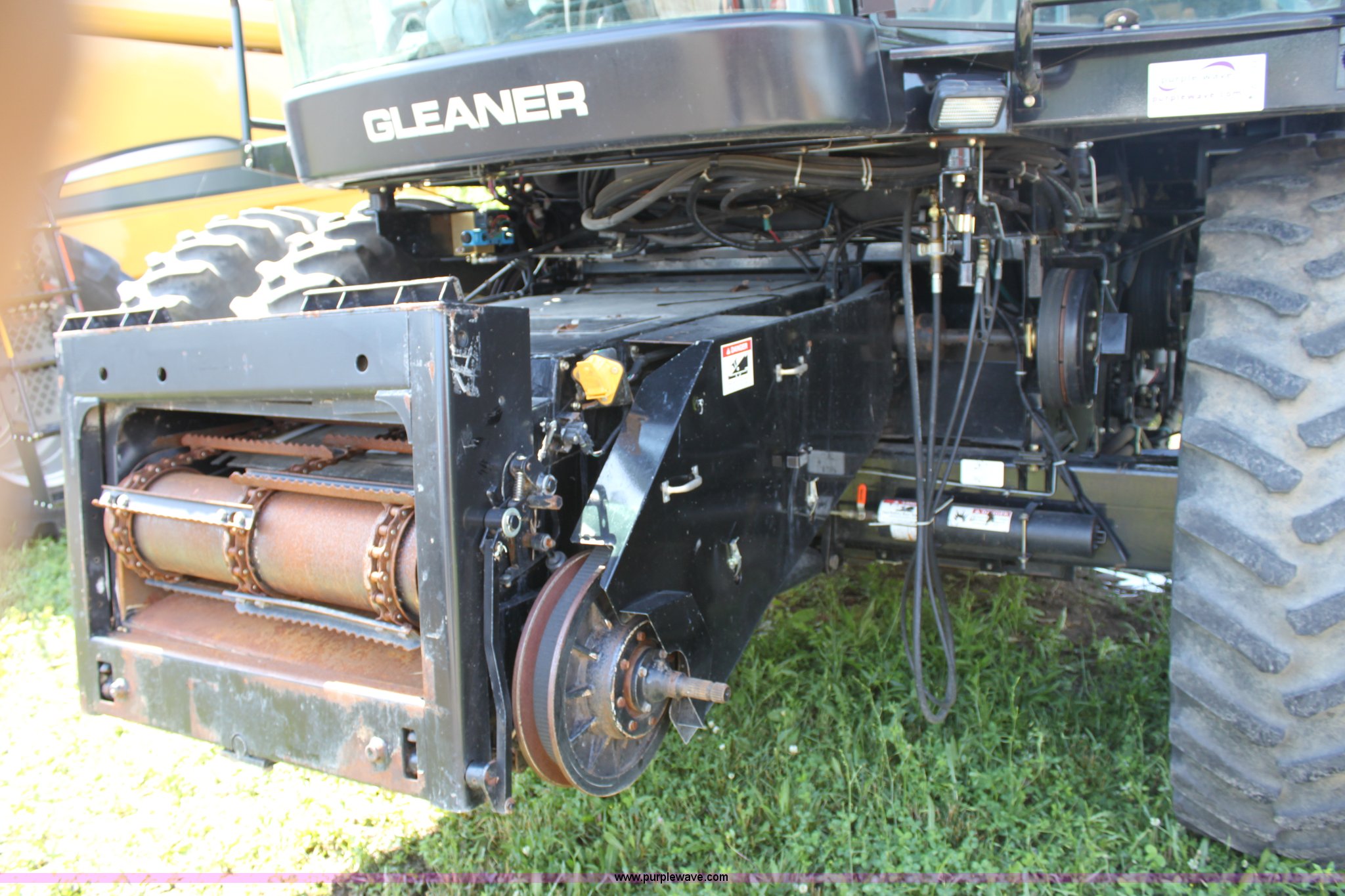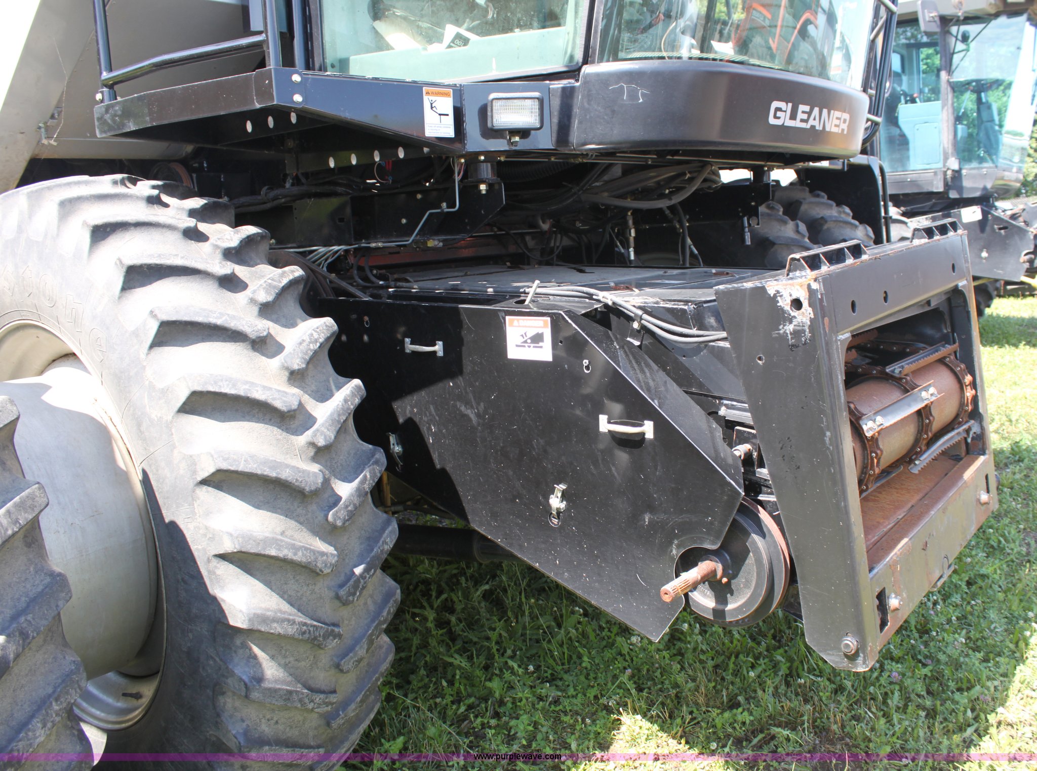 Purple Wave is selling a used Combine in Missouri. This item is a 2003 AGCO Gleaner R75 RWA combine with the following: 2,032 engine hours on meter, 1,375 separator hours on meter, Cummins M11 10.8L six cylinder diesel engine, Four speed hydrostatic transmission, Rear wheel assist, AC and heat, AM/FM, Field star monitor, Yield, moisture, and grain loss monitors, Maurer bin extensions, 18.4R42 front tires, duals, 18.4-26 rear tires, Serial HM72525, ID 10S122