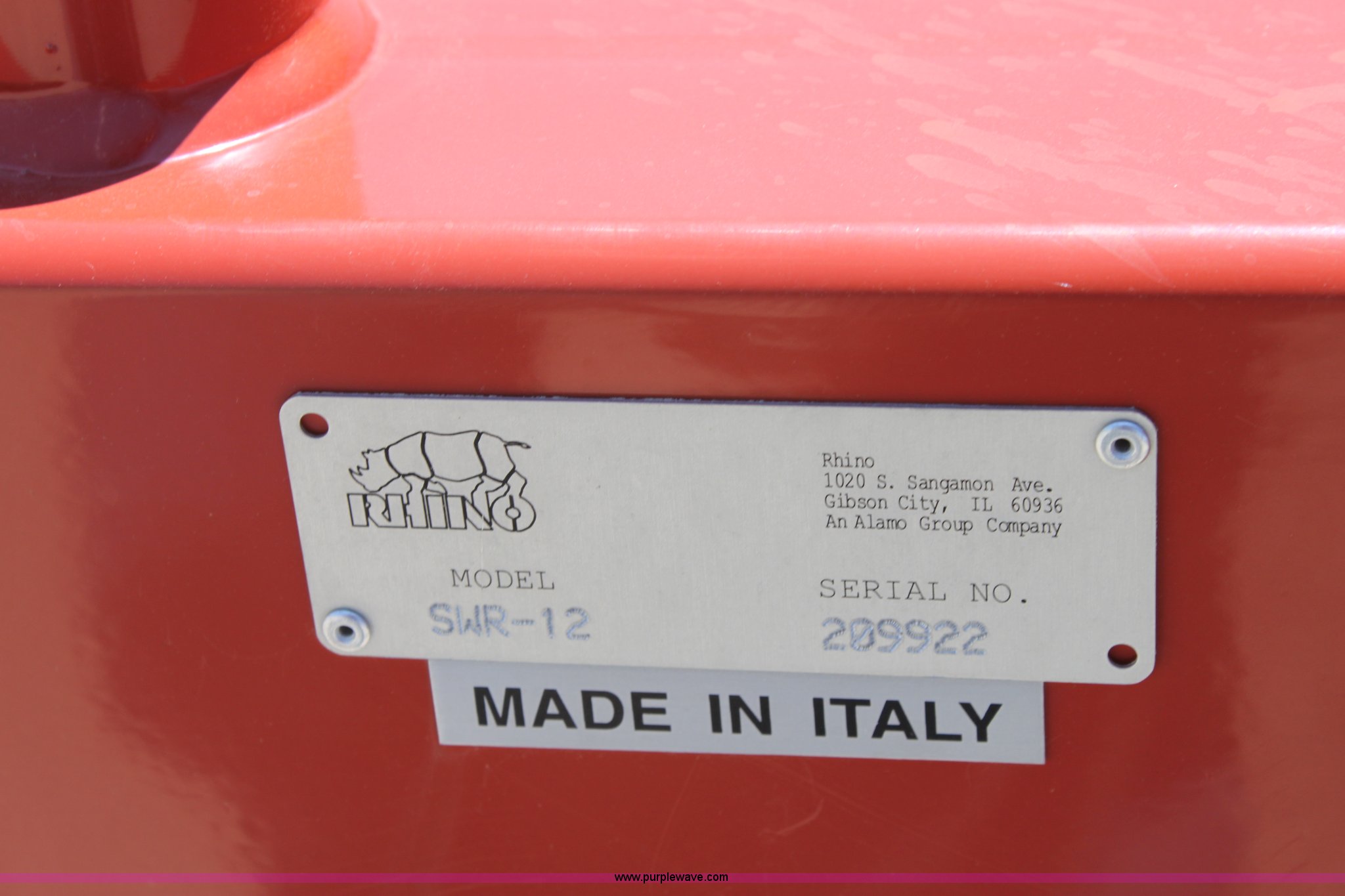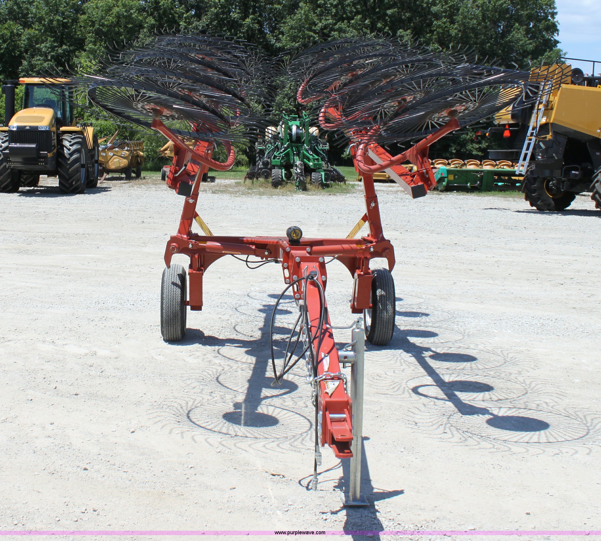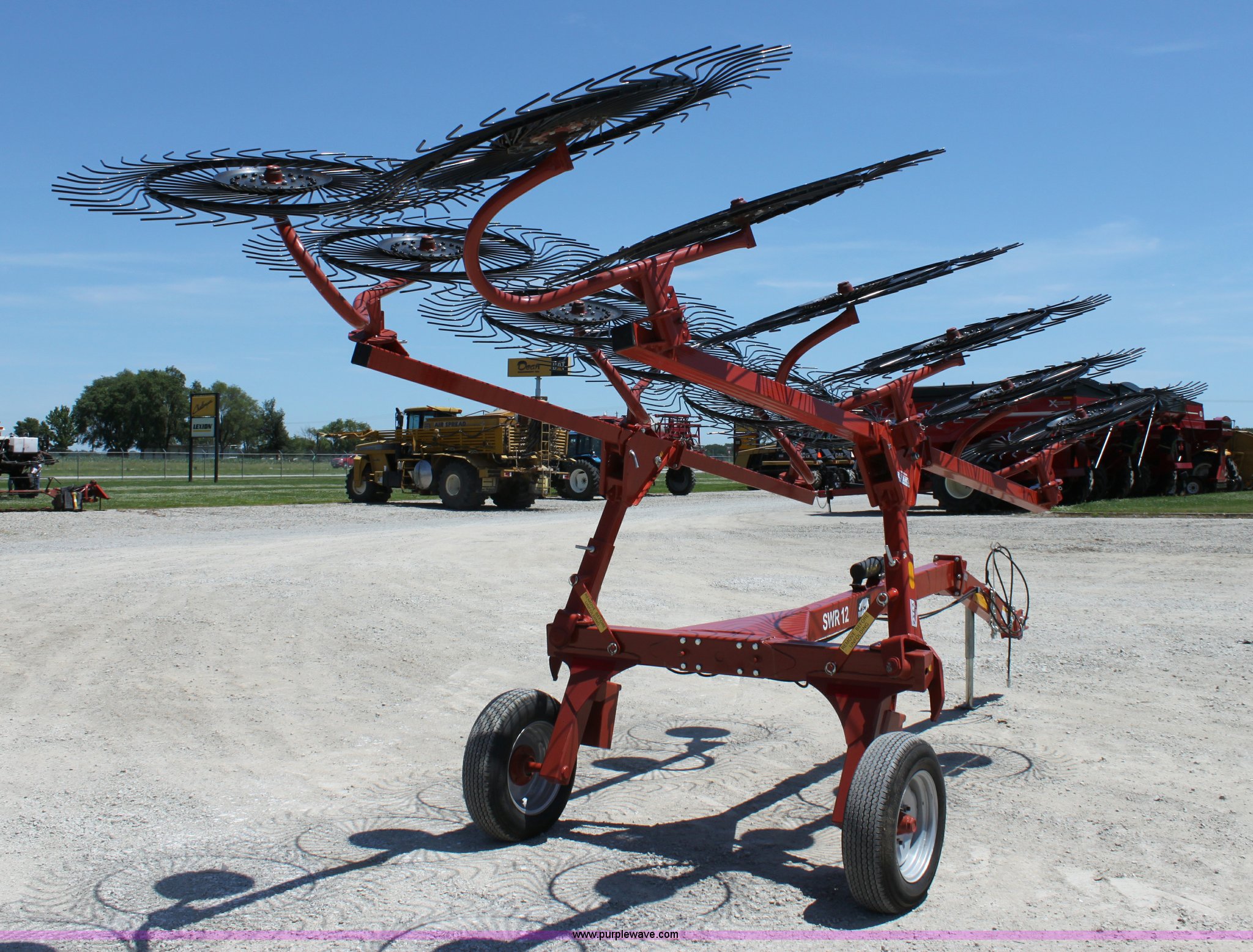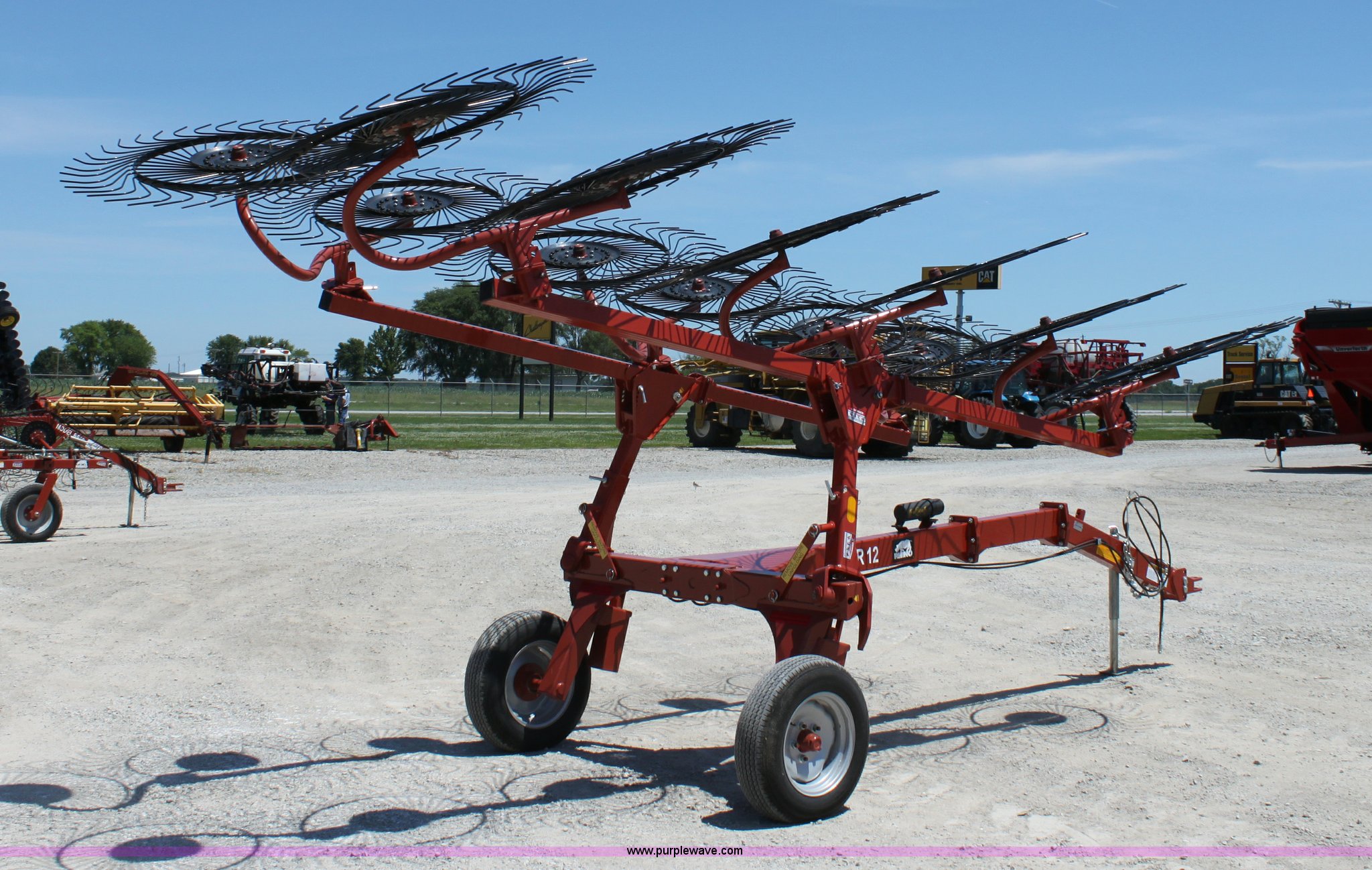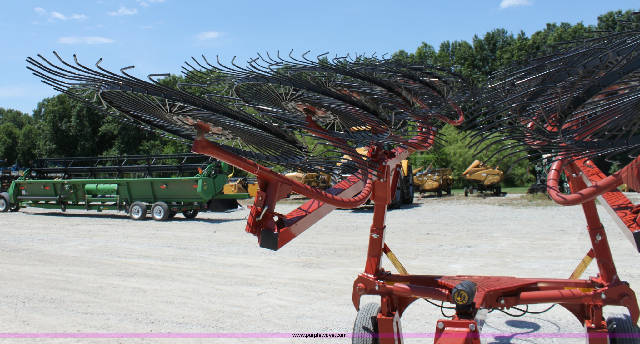 Purple Wave is selling a used Hay Rake in Missouri. This item is a 2009 Rhino SWR12 hay rake with the following: 12 wheels, Hydraulic lift, Two wheel carriage, Pin hitch, 205/75D15 tires, Serial 209922, ID 08F770