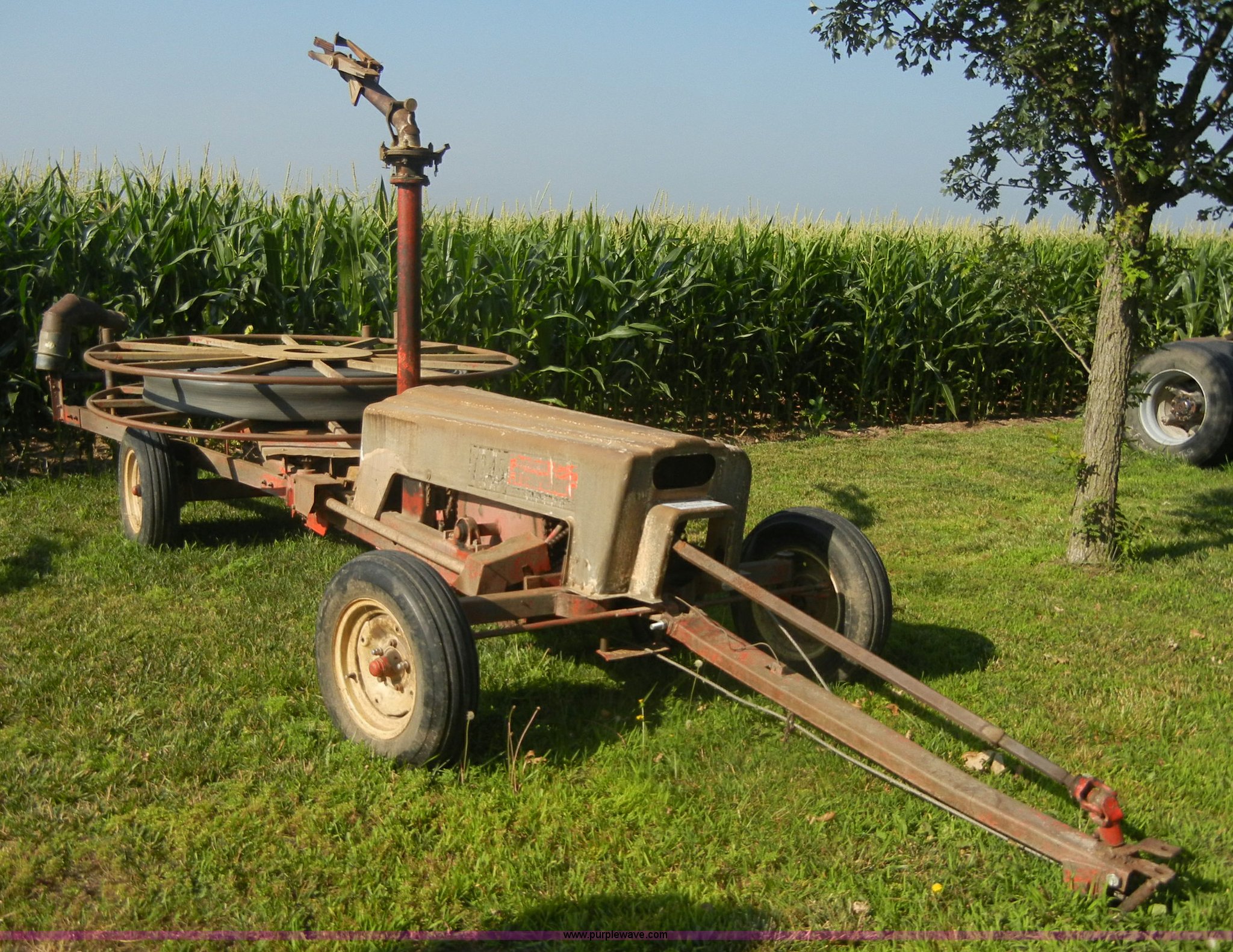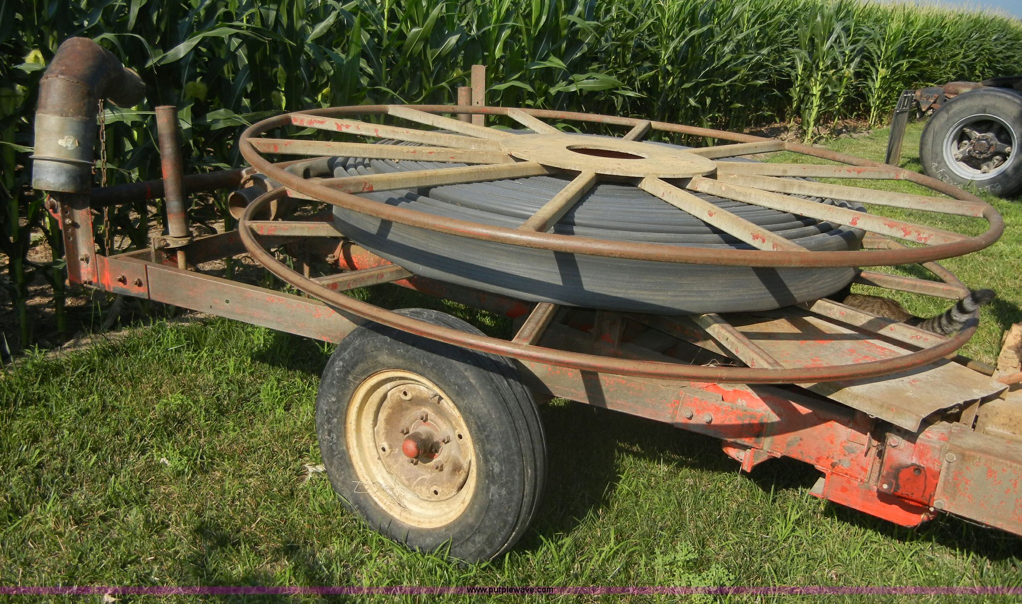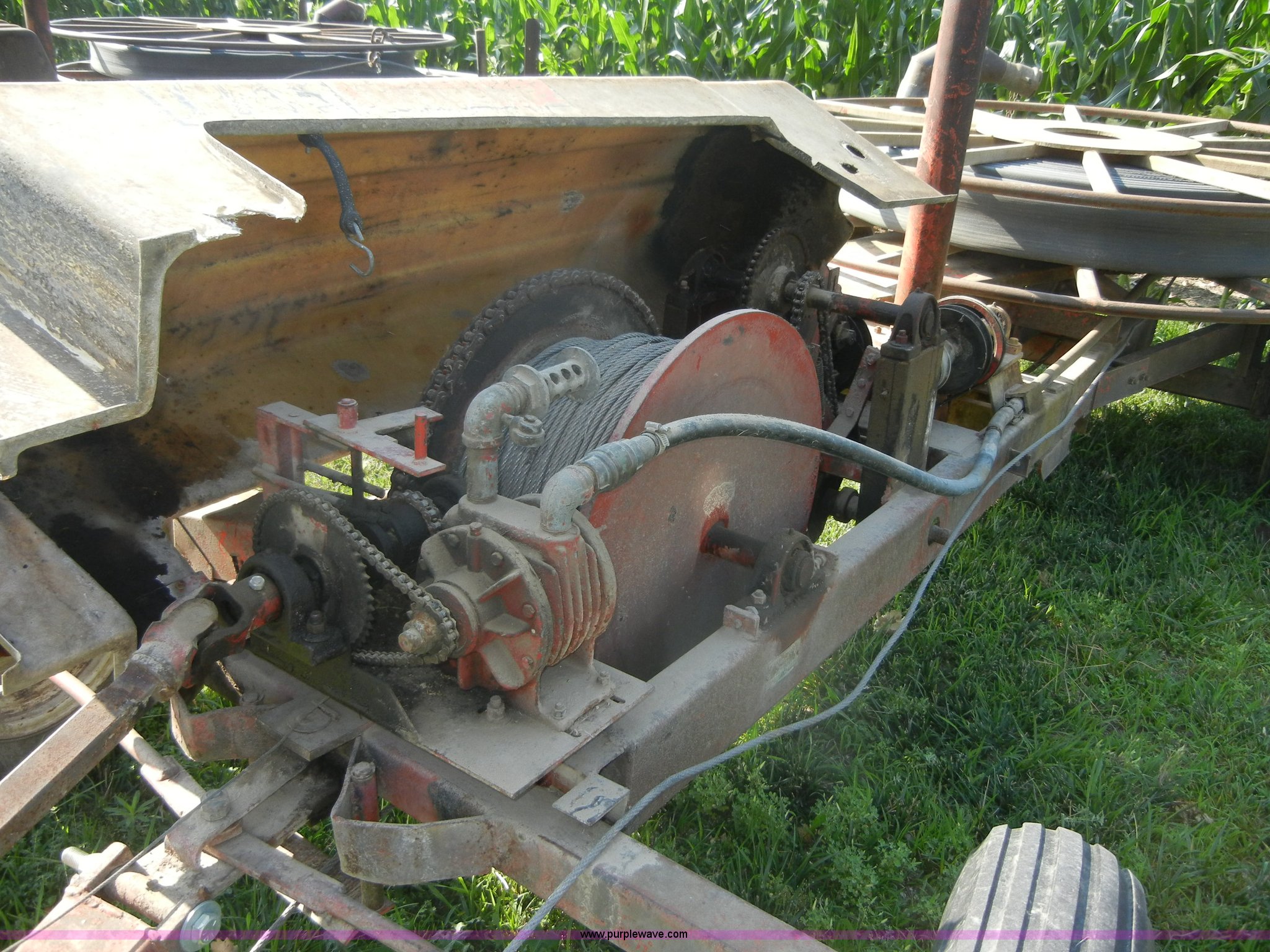 Purple Wave is selling a used Hose Reel in Kansas. This item is a Heinzman 7245 traveling gun with the following: 540 PTO, Air pump, Approx. 700' hose, Approx. 1,300' cable, Manuals included, 6.40-15 tires, Serial 66801294