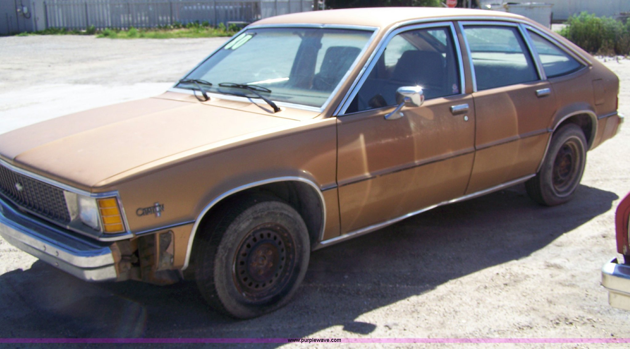 Purple Wave is selling a used Passenger Vehicle in Kansas. This item is a 1980 Chevrolet Citation with the following: 104,585 miles on odometer, Four cylinder gas engine, Automatic transmission, AC and heat, Tilt, AM/FM, Manual windows and locks, Cosmetic damage