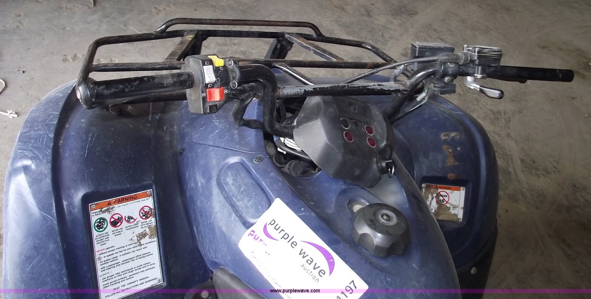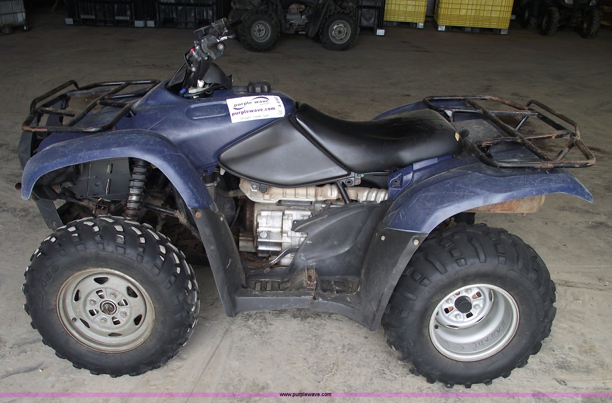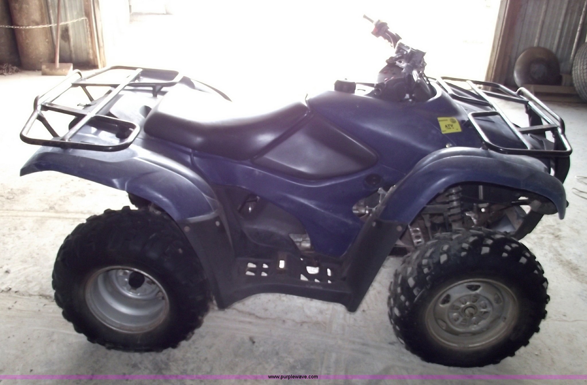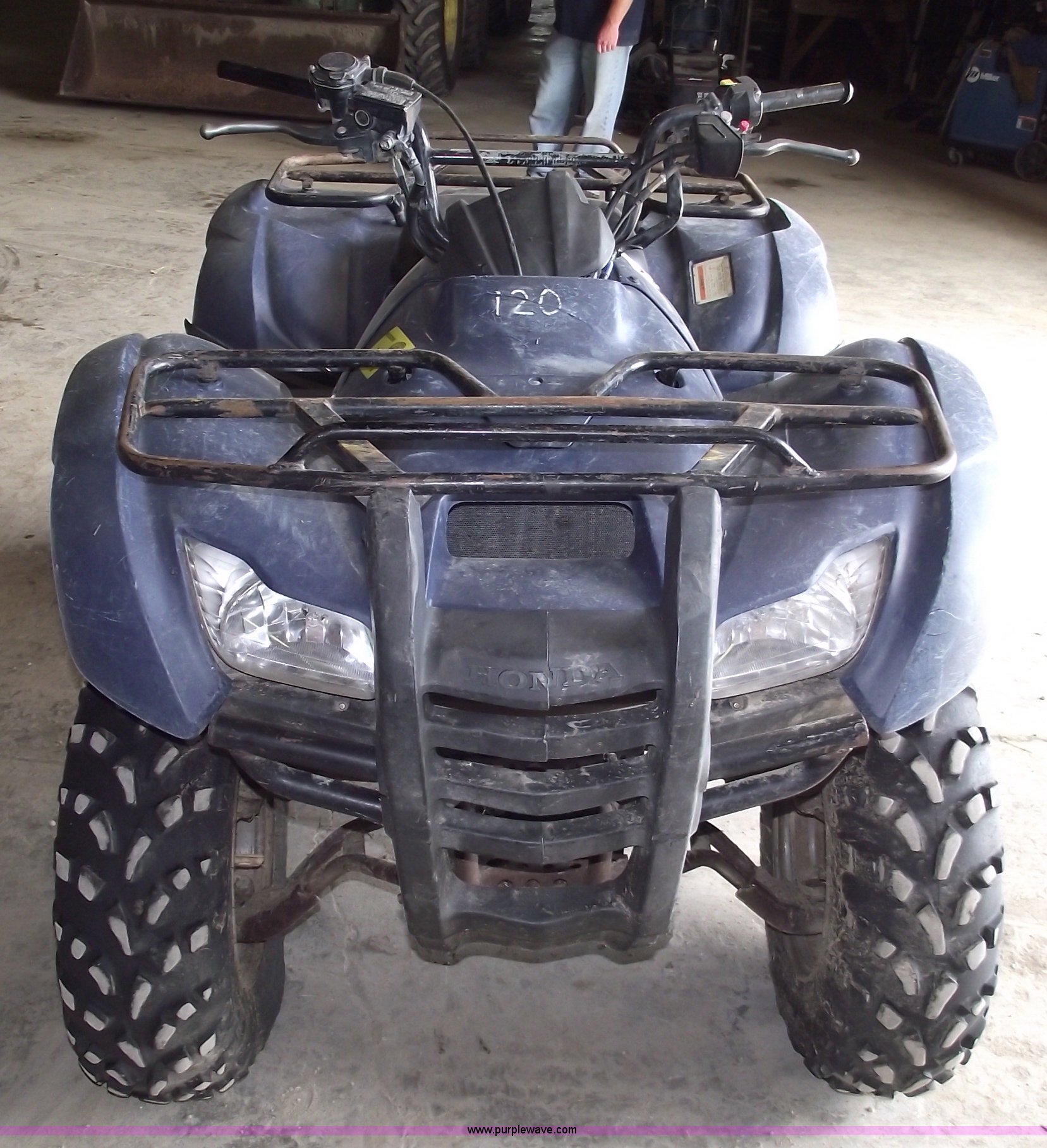 Purple Wave is selling a used ATV in Missouri. This item is a 2007 Honda TRX420 Rancher four wheeler with the following: Five speed transmission with reverse, Shaft driven, Liquid cooled, Electric start, Front and rear racks, Two wheel drive, 24x10-11 rear tires, 24x8-12 front tires, Does not run, Cust.# 120