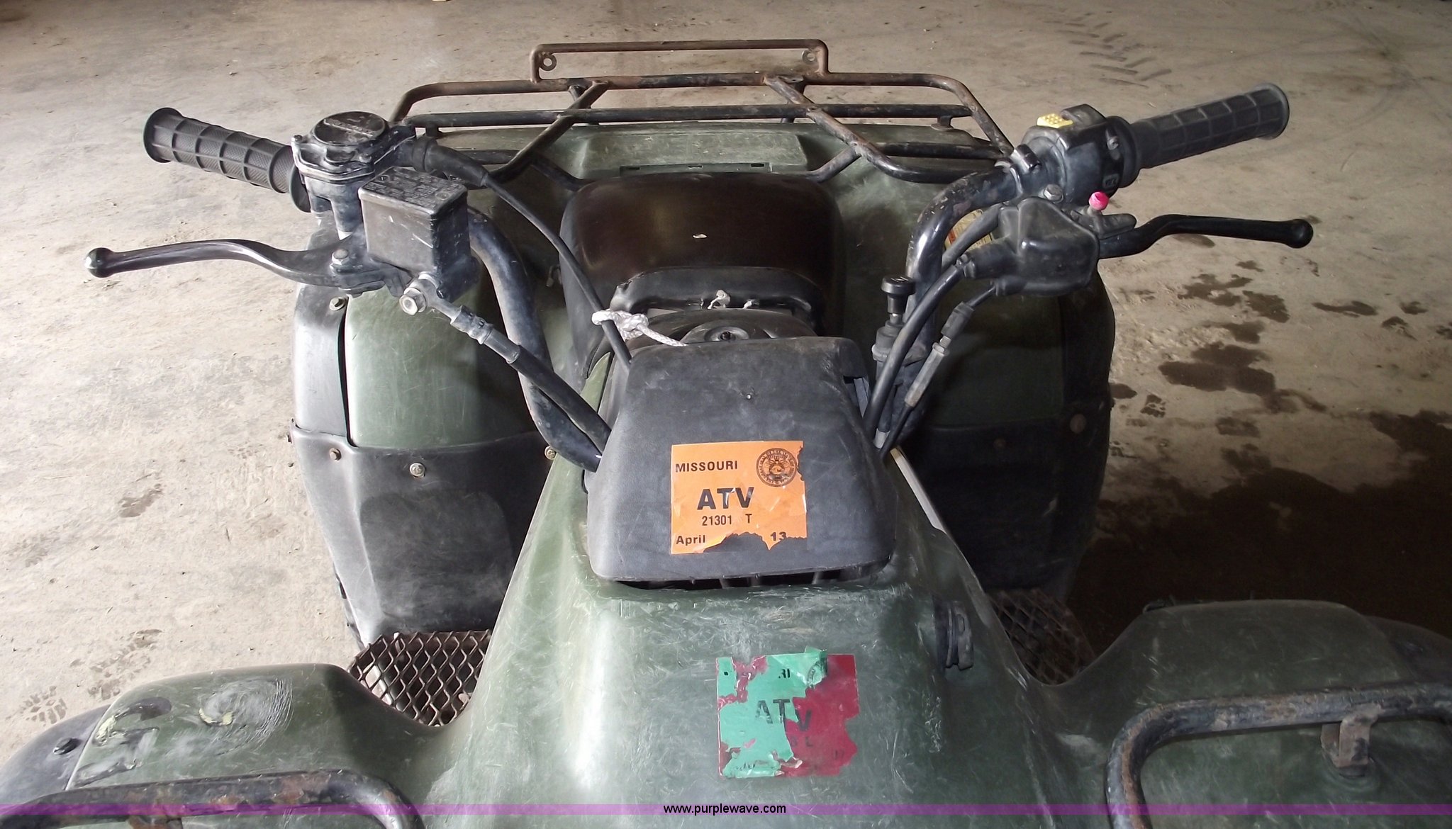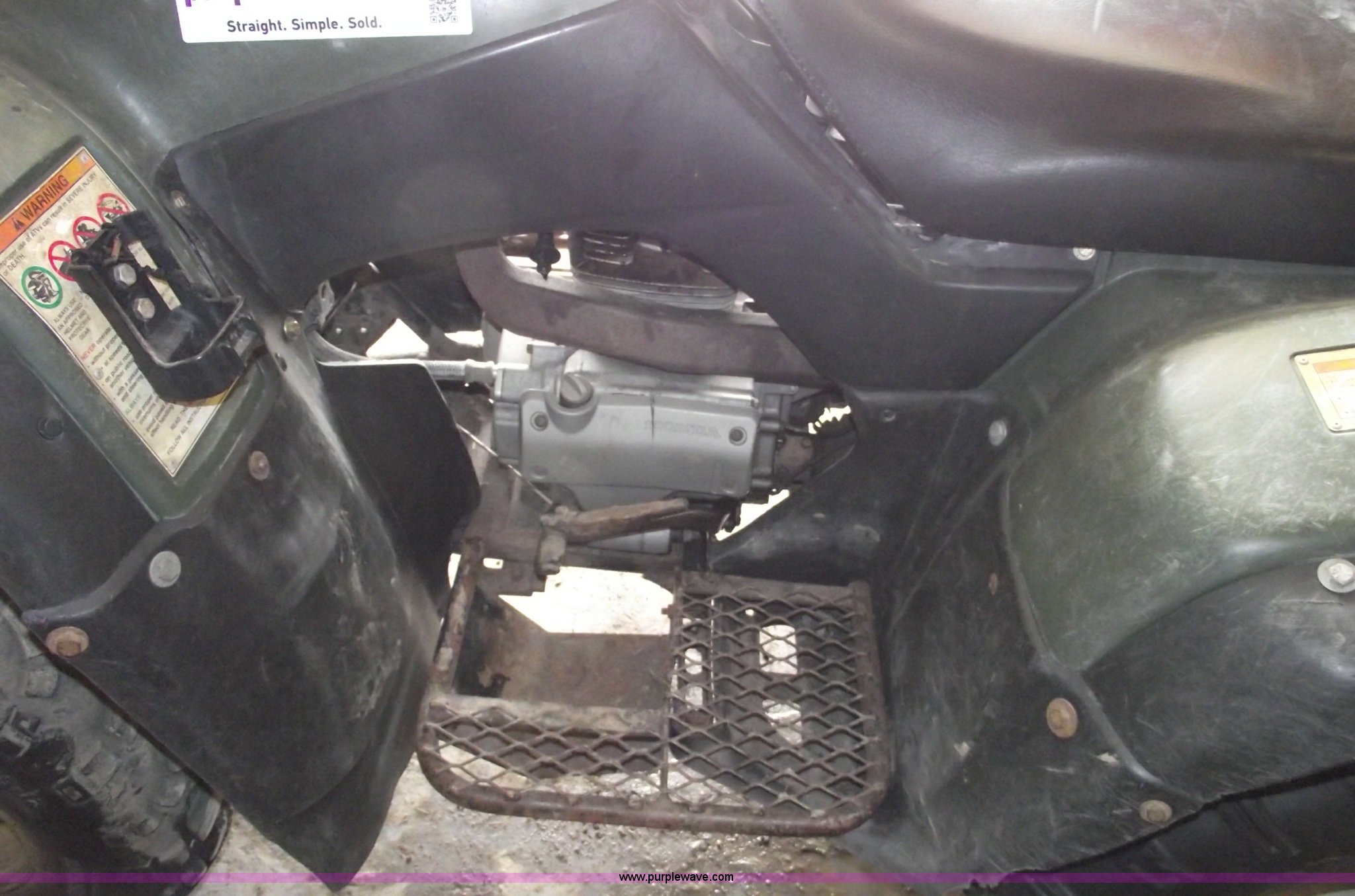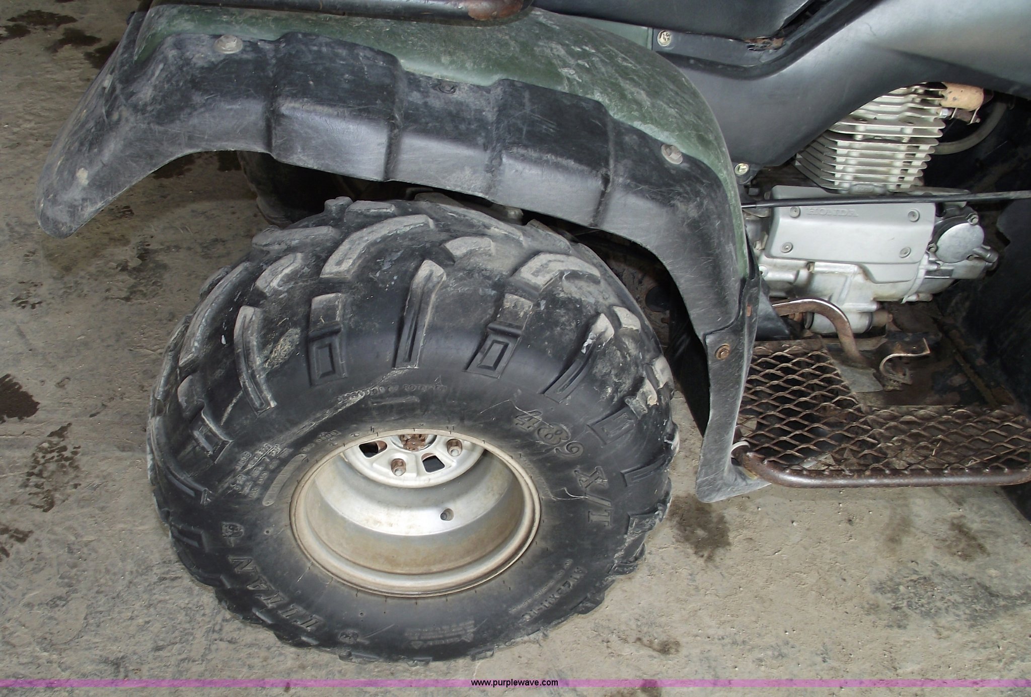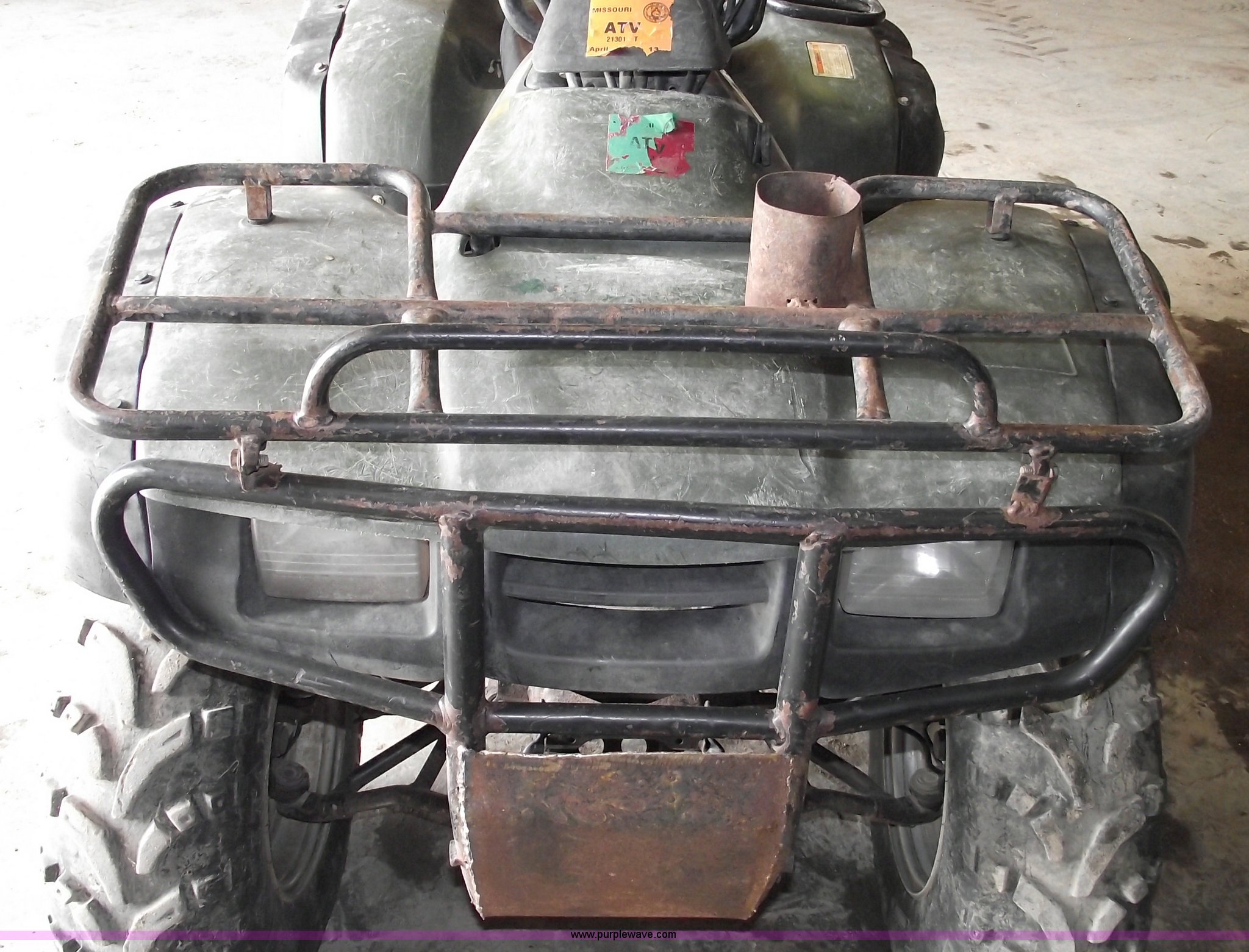 Purple Wave is selling a used ATV in Missouri. This item is a 2002 Honda TRX350 Rancher four wheeler with the following: Five speed manual transmission with reverse, Shaft driven, Electric start, Front and rear racks, Two wheel drive, 25x11-10 rear tires, 25x8-12 front tires, Needs front brakes, Cust.# 65