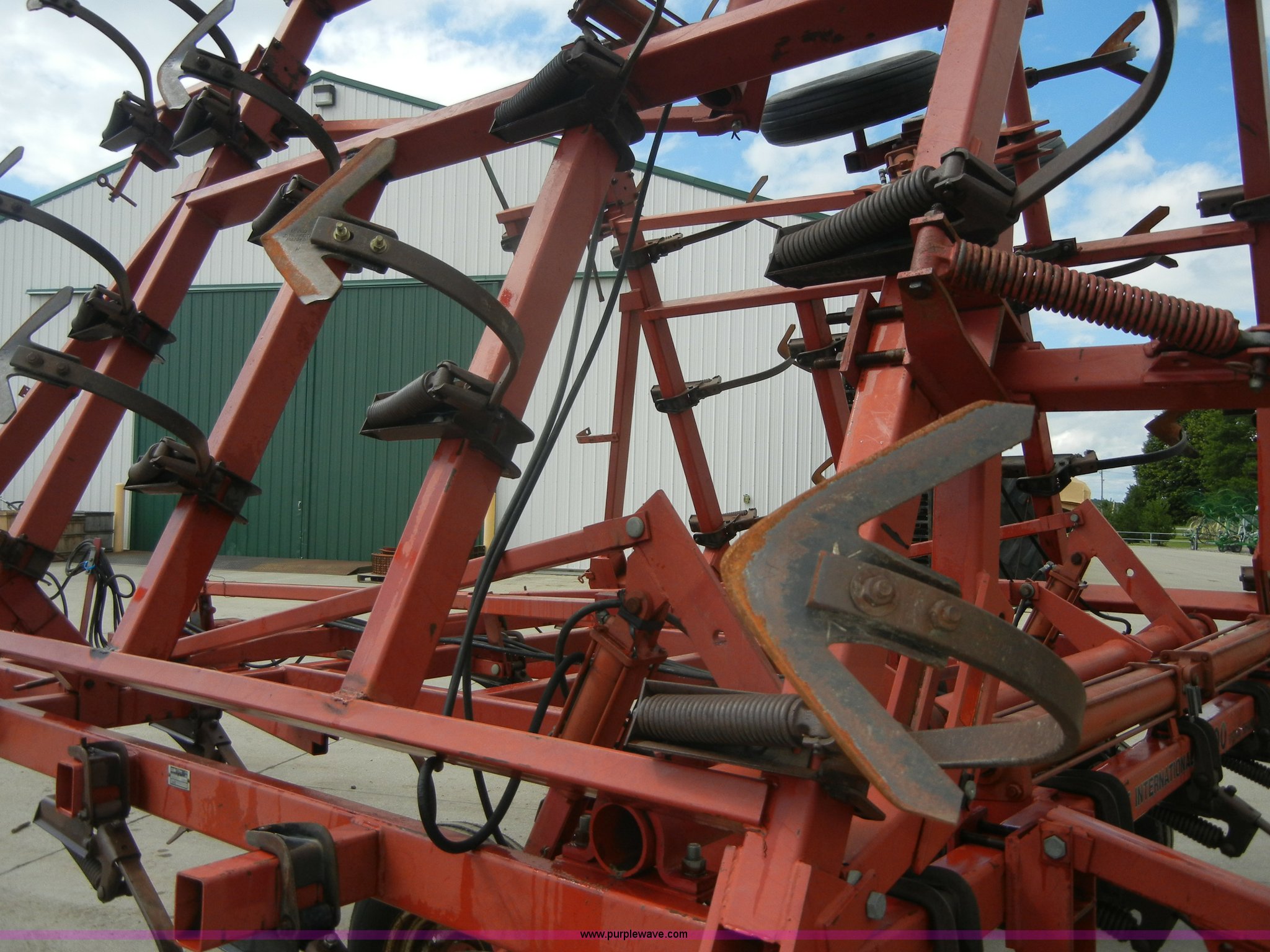 Purple Wave is selling a used Field Cultivator or Sweep Plow in Kansas. This item is a Case IH 4800 Vibra shank field cultivator with the following: 30' width, 9" shovels, Three gang drag harrows, Hydraulic lift and fold, Walking tandems, Pin hitch, 7.60-15 tires, Serial 0060556