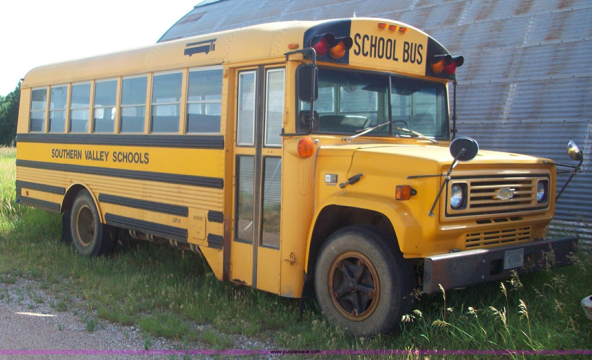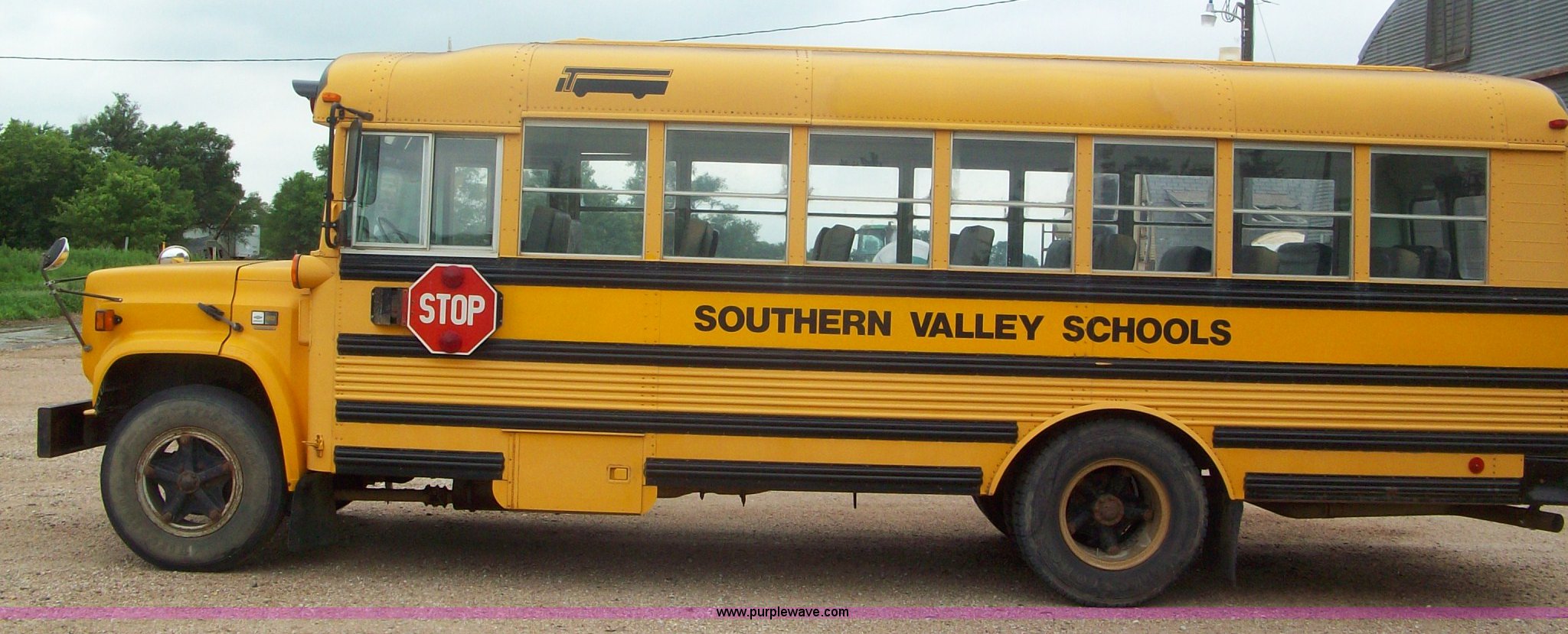 Purple Wave is selling a used Bus in Nebraska. This item is a 1990 Chevrolet S6000 school bus with the following: 86,308 miles on odometer, 366 V8 6.0L gas engine, Automatic transmission, Heater, Manual windows, 9.00R20 tires
