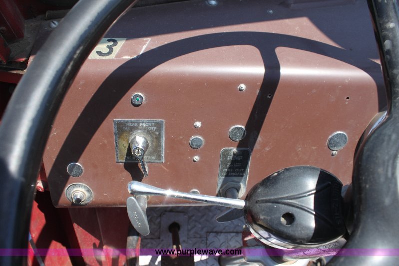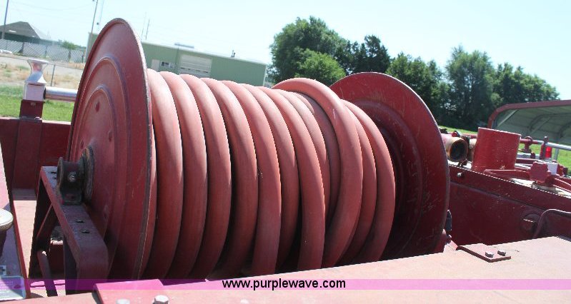 1956 American LaFrance fire engine. 30,306 miles on odometer, 594 actual hours, 12 cylinder flathead gas engine, Five speed manual transmission, Motorola two-way radio, Electric wind hose reel, 1.5" hose, Ladder, (3) hose nozzles, (2) 6" suction hose sections, 300 gallon water tank, Custom made tarp, 8.25-20 tires, Original owners manual included. L5471. 1000 S Cedar. Abilene, KS 67410
