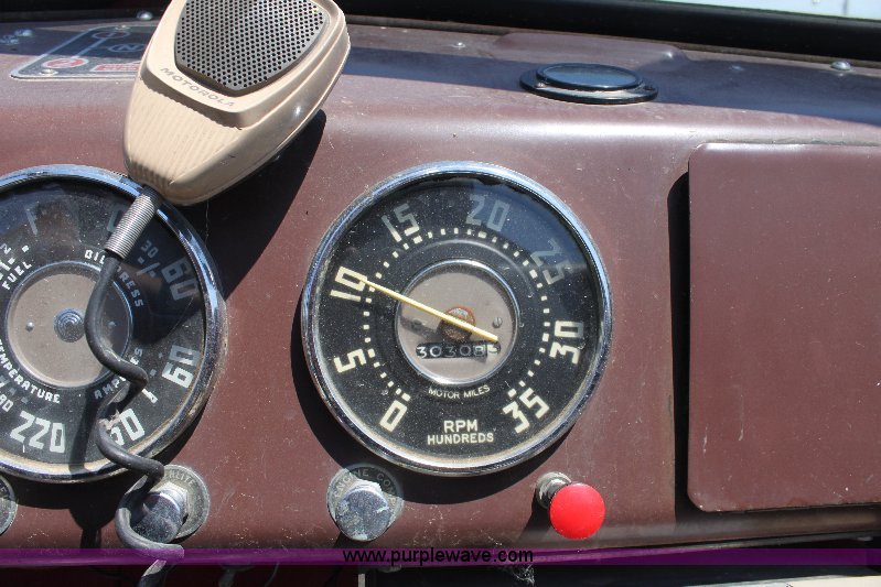 Purple Wave is selling a used Fire Truck or Emergency Vehicle in Kansas. This item is a 1956 American LaFrance fire engine with the following: 30,306 miles on odometer, 594 actual hours, 12 cylinder flathead gas engine, Five speed manual transmission, Motorola two-way radio, Electric wind hose reel, 1.5" hose, Ladder, (3) hose nozzles, (2) 6" suction hose sections, 300 gallon water tank, Custom made tarp, 8.25-20 tires, Original owners manual included