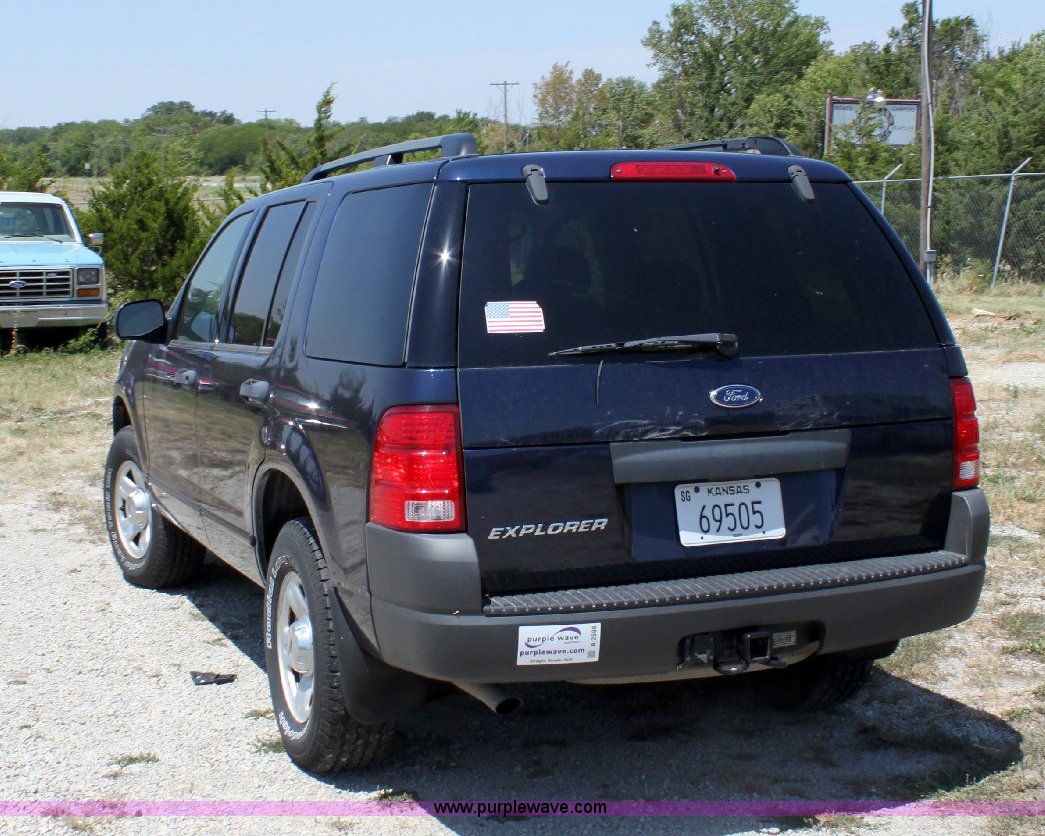 Purple Wave is selling a used Passenger Vehicle in Kansas. This item is a 2003 Ford Explorer XLS SUV with the following: 130,339 miles on odometer, 4.0L V6 EFI engine, Automatic transmission, Four wheel drive, AC and heat, Tilt, Cruise, AM/FM/CD, Power windows, locks, and mirrors, Receiver hitch, Trailer wiring, 255/70R16 tires, Rear door cracked, Equip# 3153