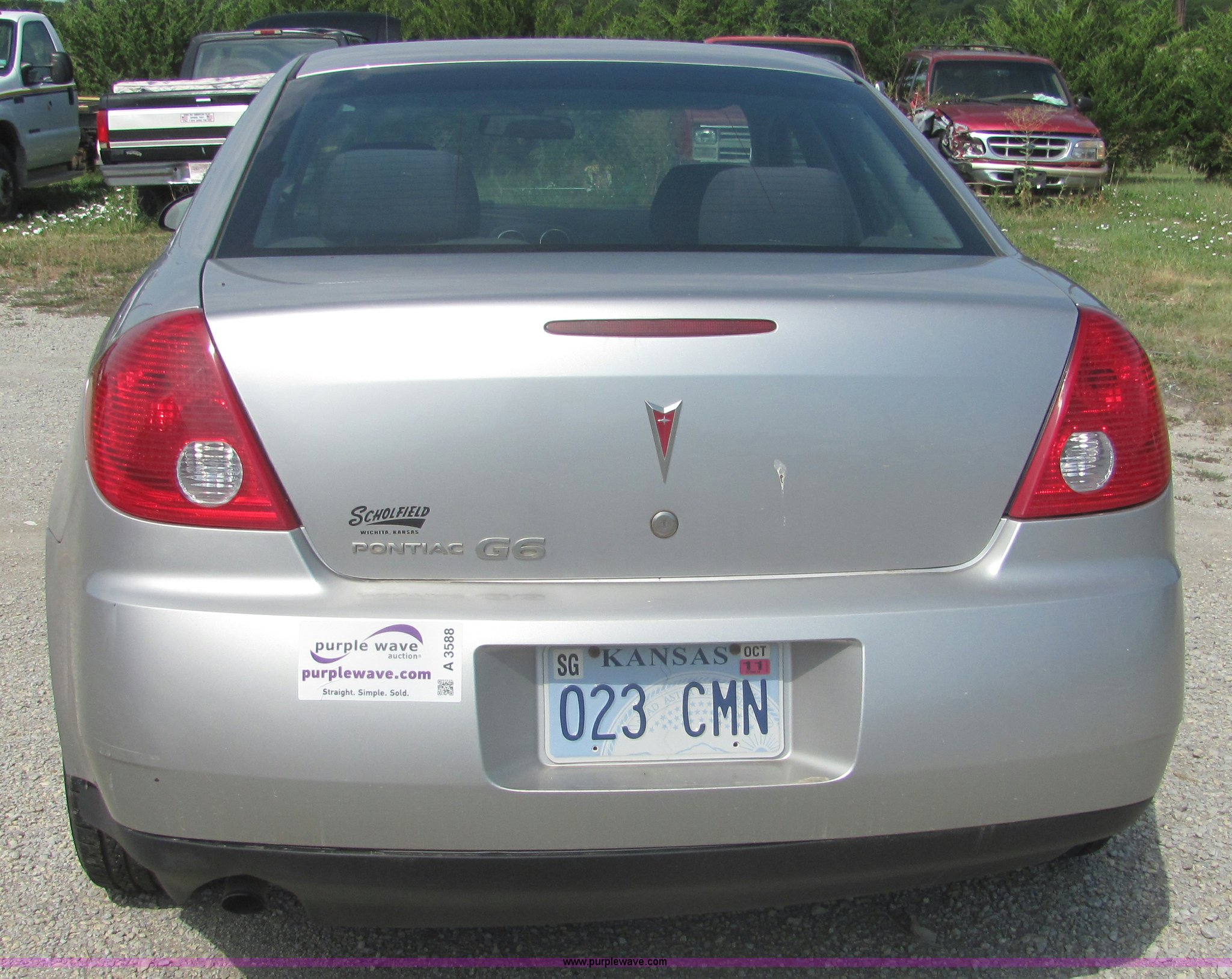 Purple Wave is selling a used Passenger Vehicle in Kansas. This item is a 2007 Pontiac G6 with the following: 61,399 miles on odometer, 2.4L I4 MPI engine, Automatic transmission, AC and heat, Tilt, Cruise, Power windows, locks, mirrors, and seats, 215/60R16 tires, EIN 3016