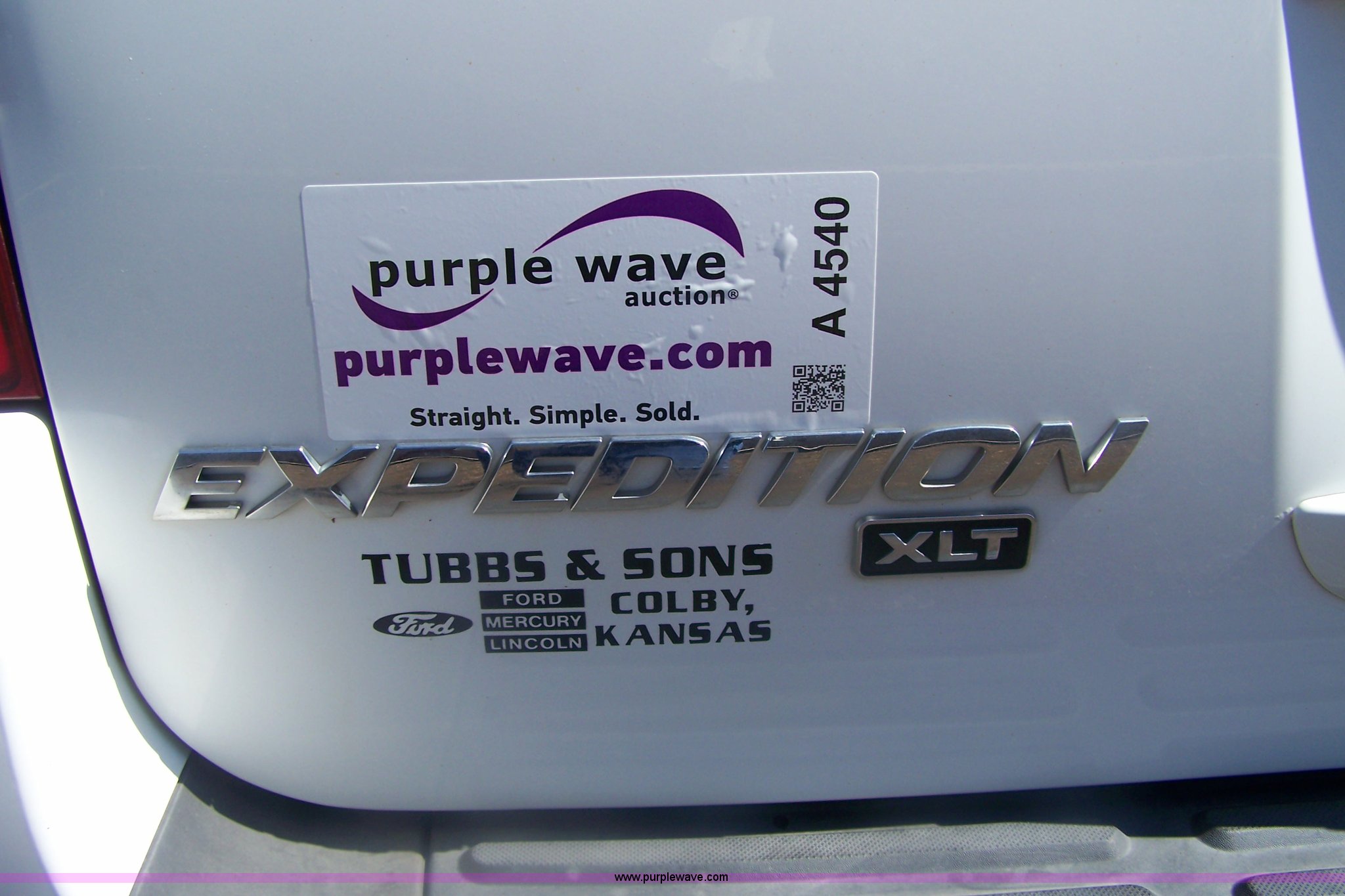 Purple Wave is selling a used Passenger Vehicle in Kansas. This item is a 2004 Ford Expedition XLT SUV with the following: 104,339 miles on odometer, Triton 5.4L V8 EFI engine, Automatic transmission, AdvanceTrac, Four wheel drive, AC and heat, Rear climate control, Tilt, Cruise, AM/FM/Cassette, Power windows, locks, and seats, Receiver hitch, LT265/70R17 tires, Plug holes in roof, Cosmetic damage, Weak battery