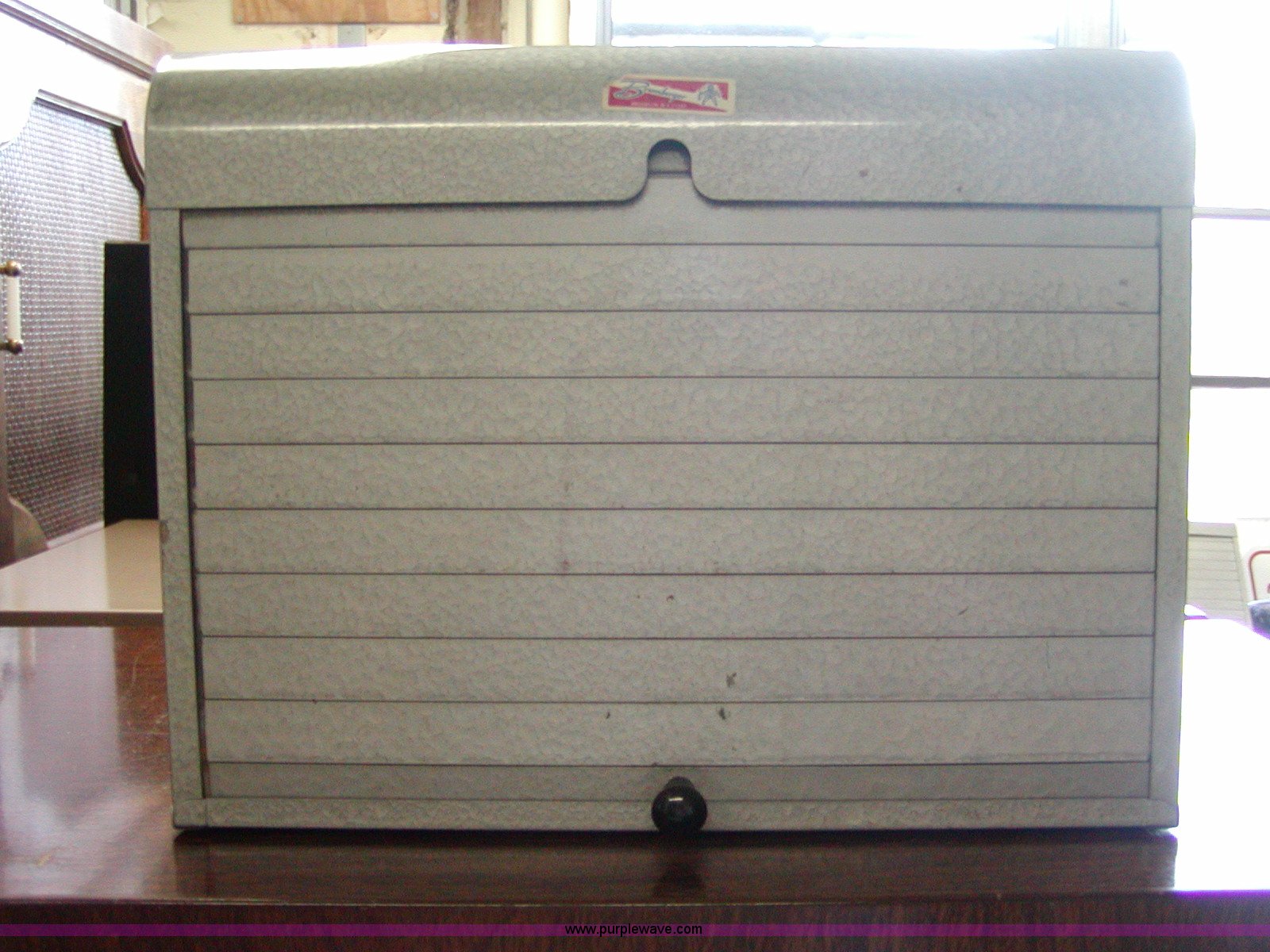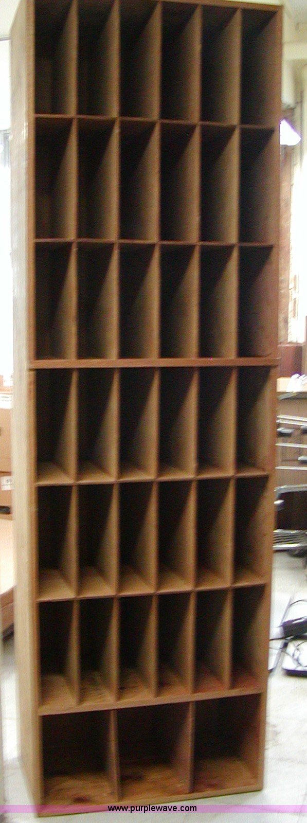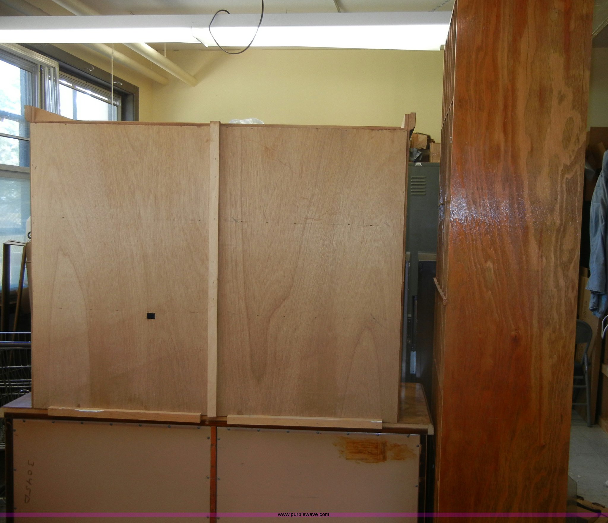 Purple Wave is selling a used Furniture in Kansas. This item is a Assorted office furniture with the following: (3) filing cabinets, (2) aluminum file units, 12" x 9" x 9", Wooden mail slot organizer, 87" x 27" x 15", Wooden credenza, 61.5" x 20.75" x 73.5"