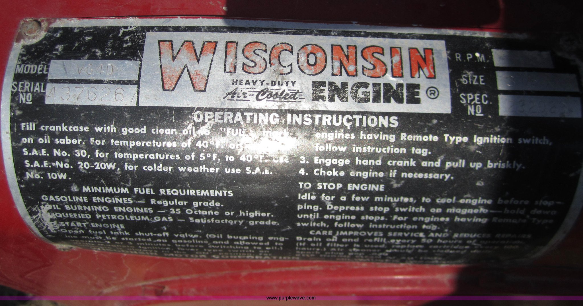 • Wisconsin VG4D four cylinder engine