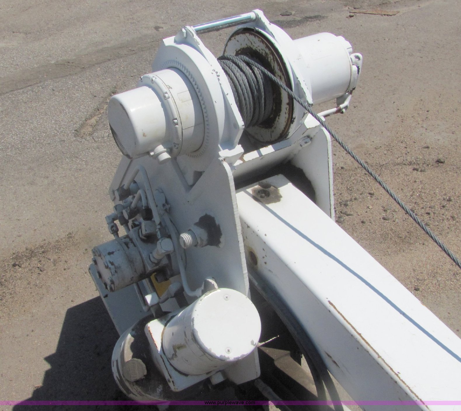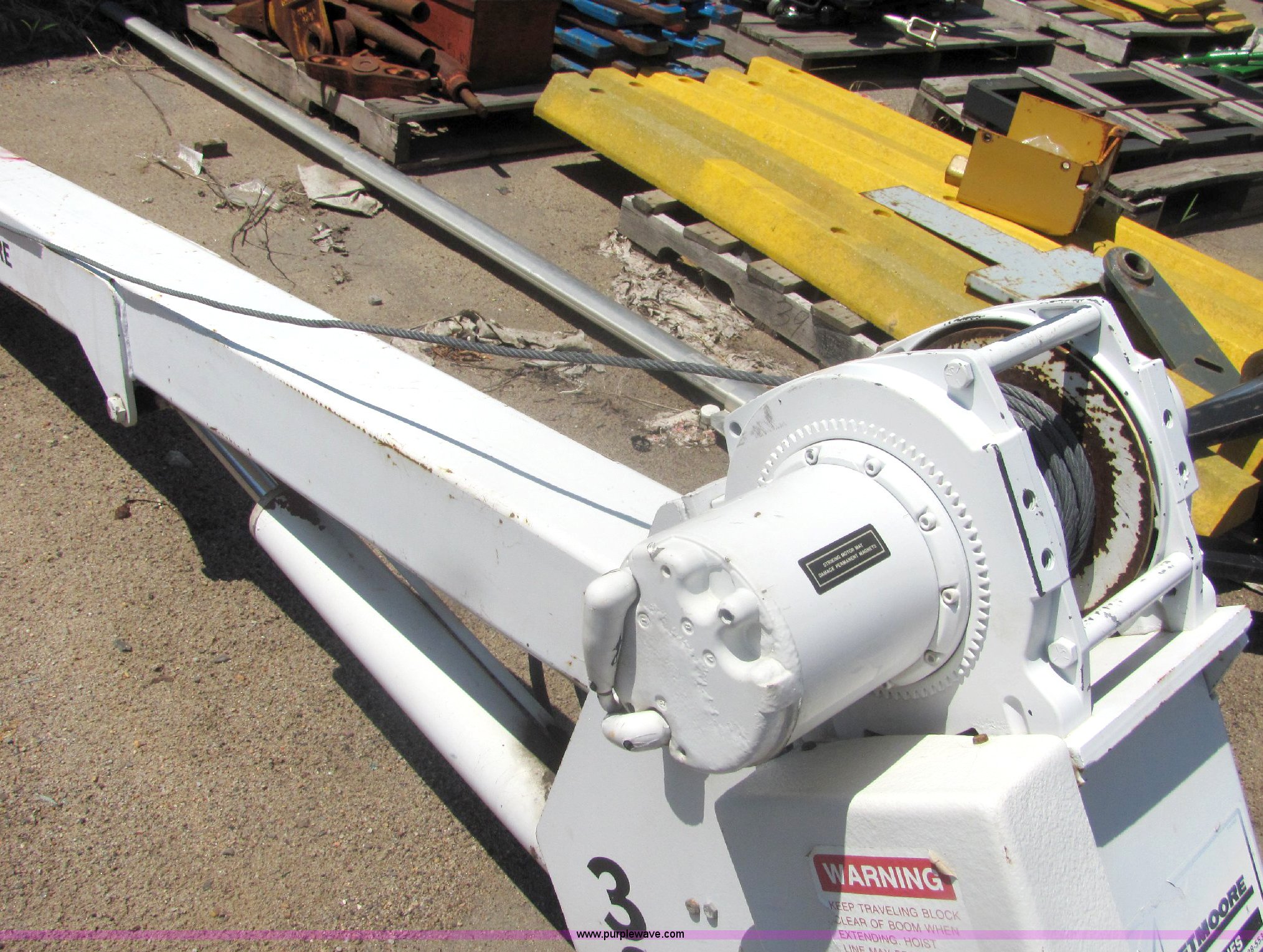 Liftmoore truck crane. 13' max extension, 3,200 lb max capacity. Shipping quotes available. Sedgwick County Heavy Equipment. 1021 Stillwell. Wichita, KS 67213