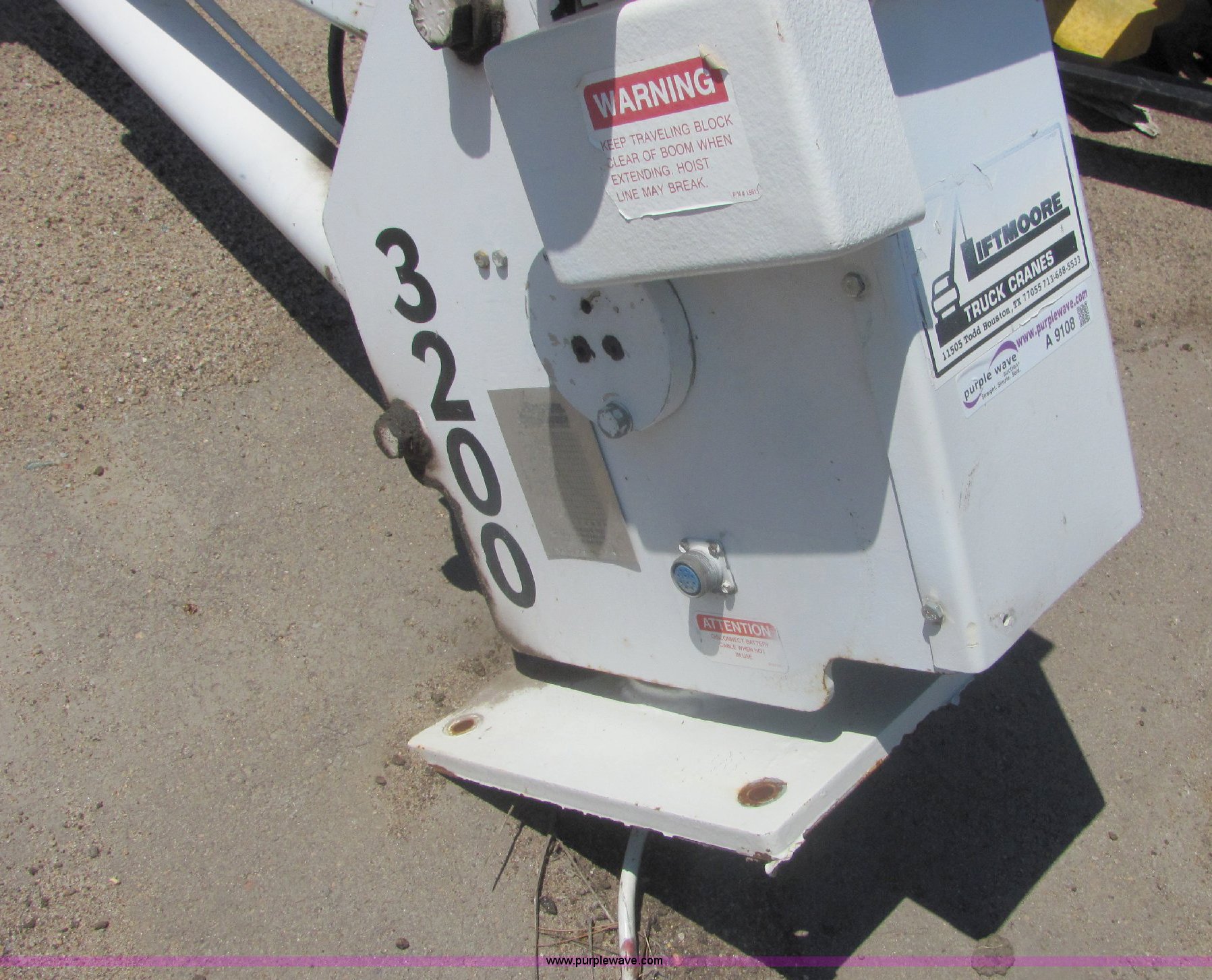 Purple Wave is selling a used Truck Part and Attach. in Kansas. This item is a Liftmoore truck crane with the following: 13' max extension, 3,200 lb max capacity