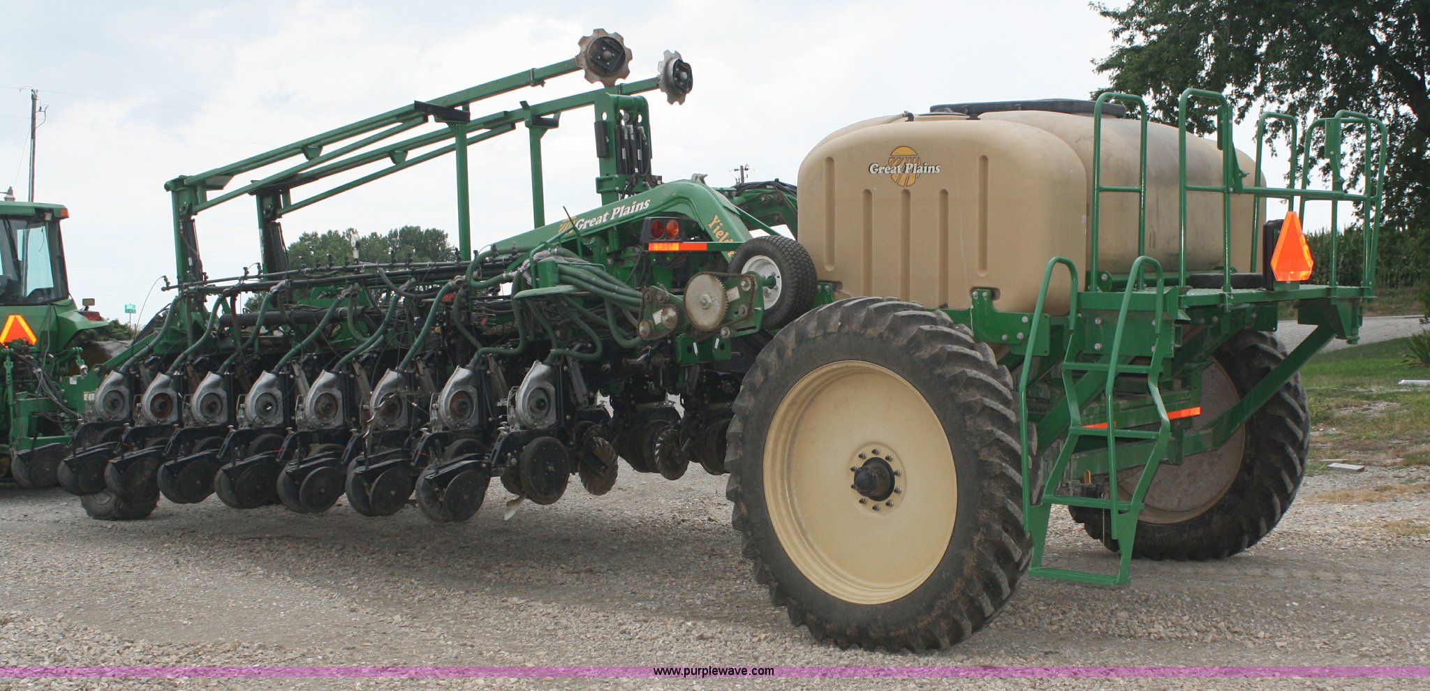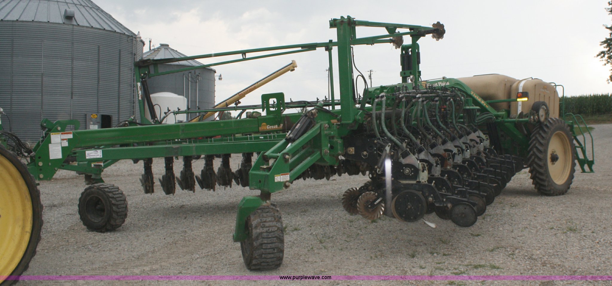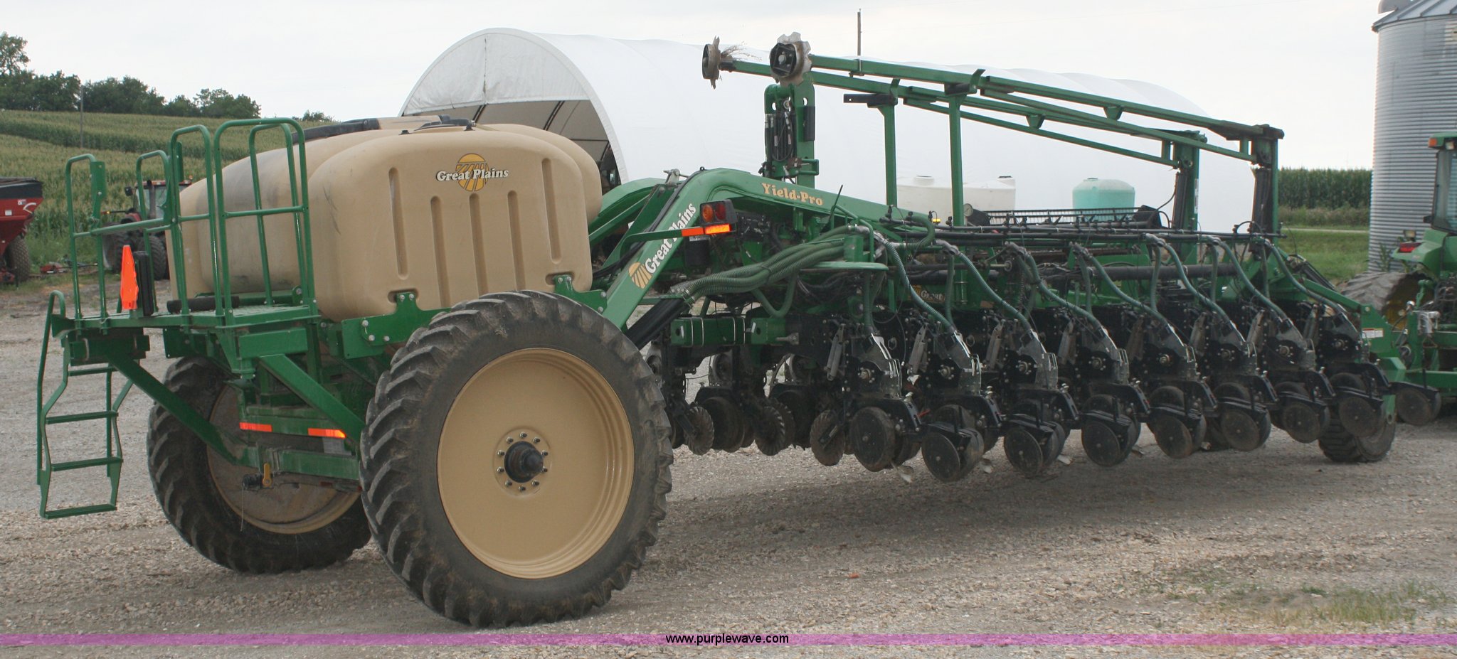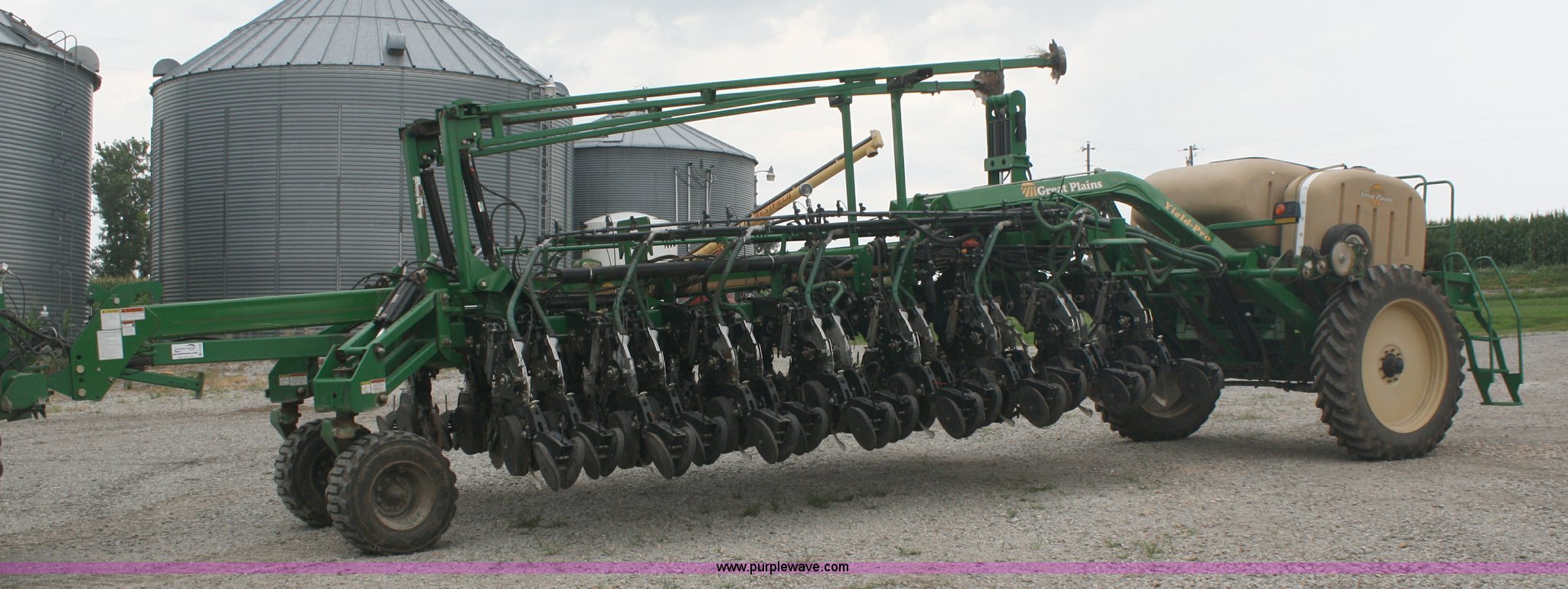 Purple Wave is selling a used Planter in Missouri. This item is a Great Plains Yield Pro 1625 planter with the following: 31 row at 15" spacing, Ground driven seed metering system, 82 bushel bulk seed box, Hydraulic markers, Ground driven fertilizer pump, (2) 200 gallon liquid fertilizer tanks, (31) No-till coulters, (16) Keeton row cleaners, (31) bean and milo meters, each, (16) corn meters, Ag Leader sensors included, Ag Leader monitor not included, Dickie John monitor, Three point hitch, Serial GPA1108B