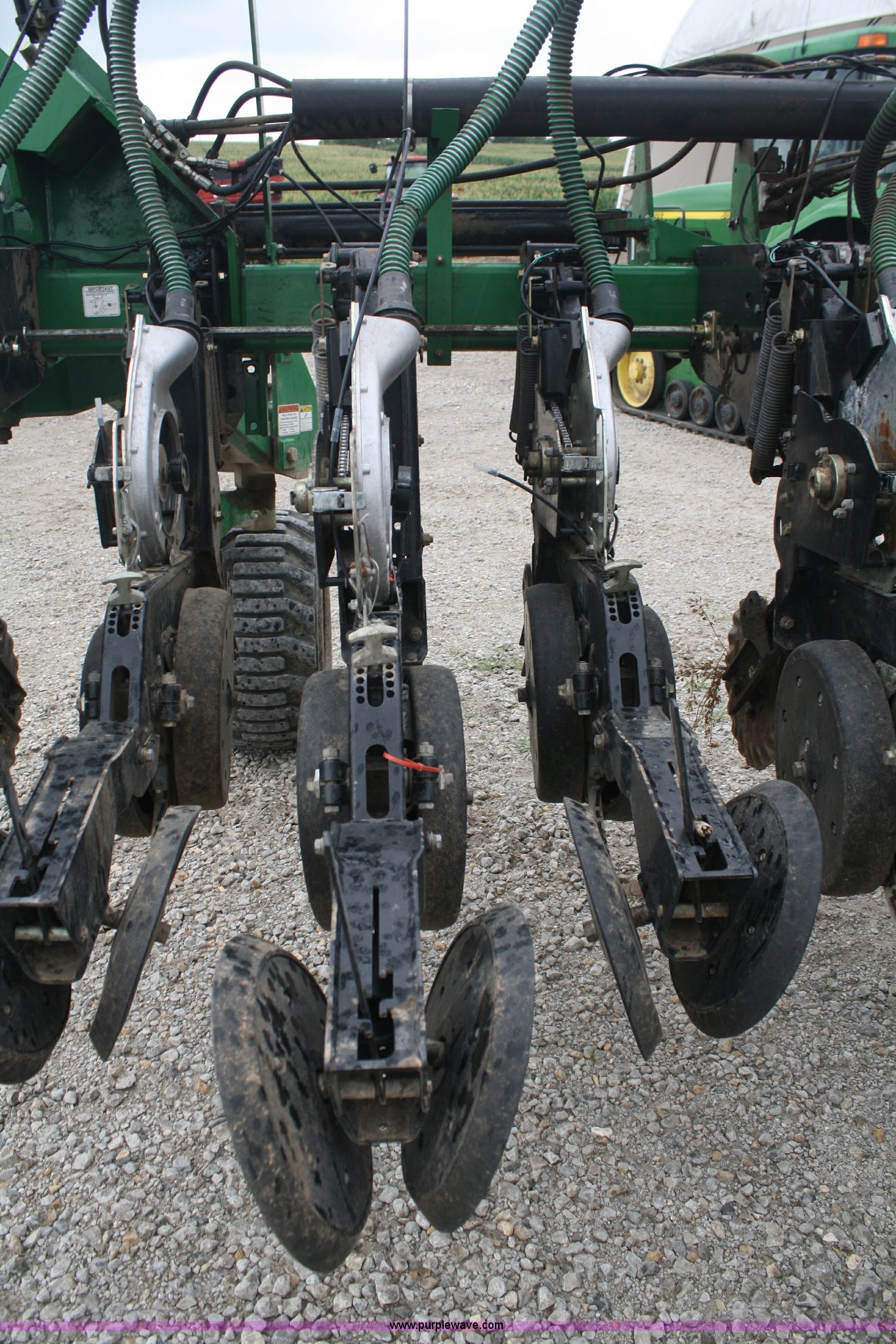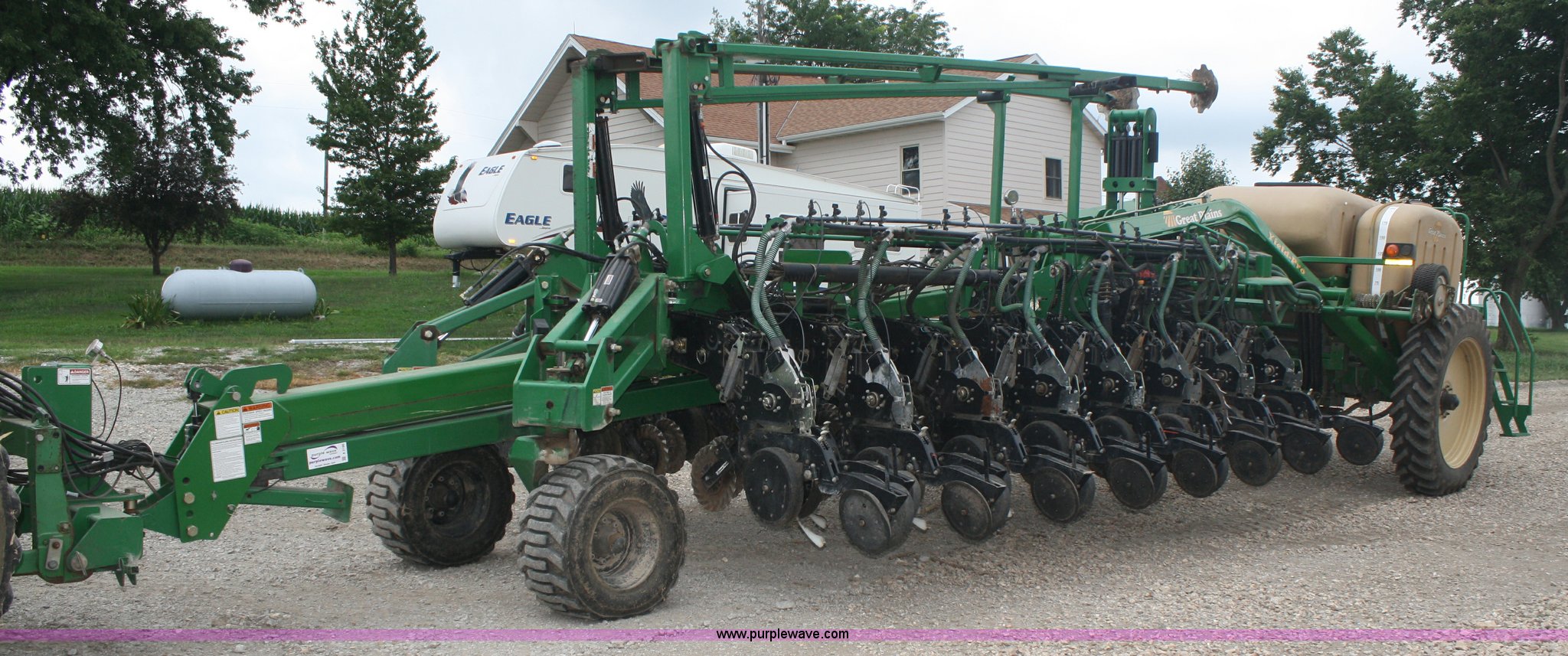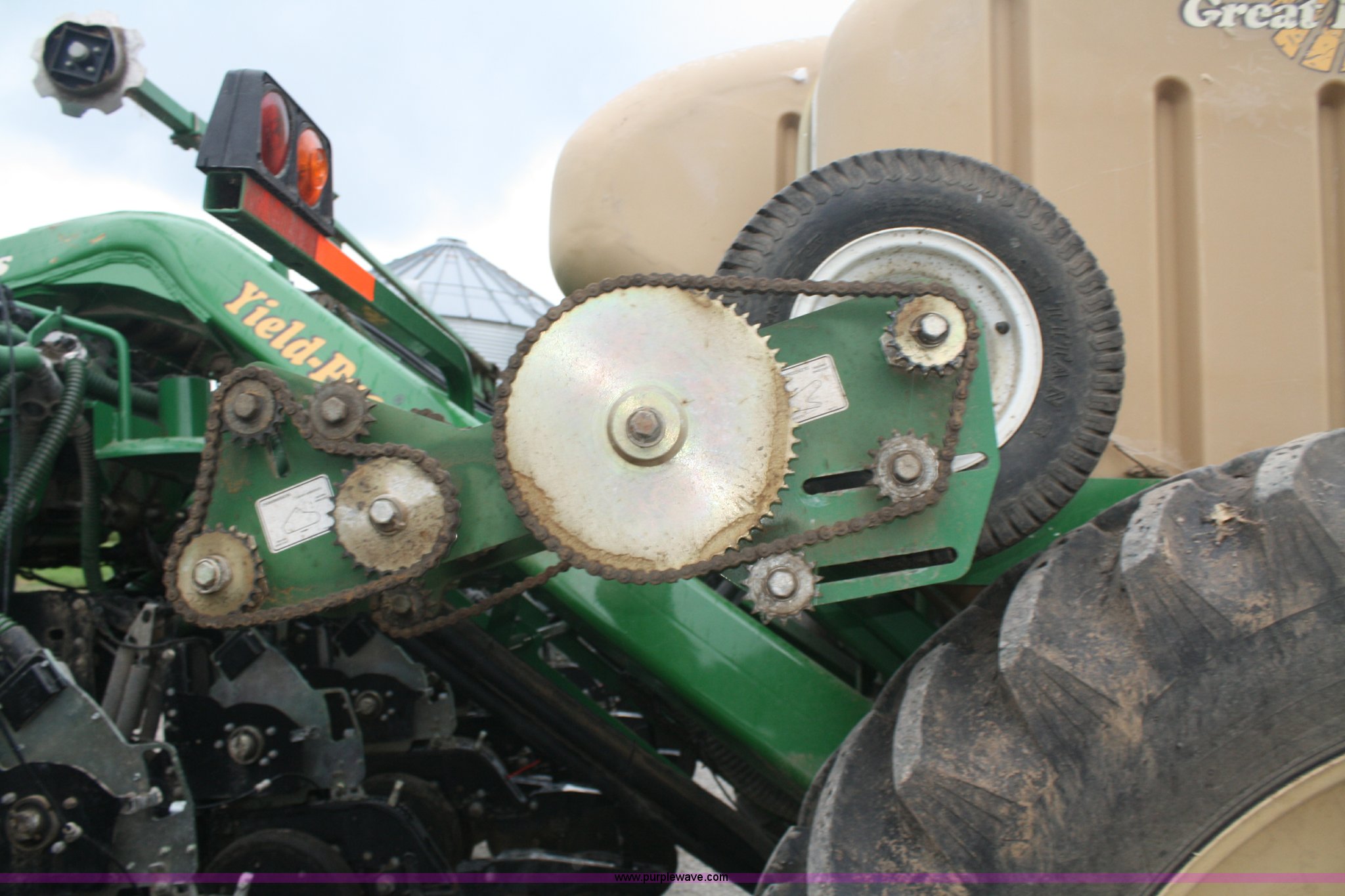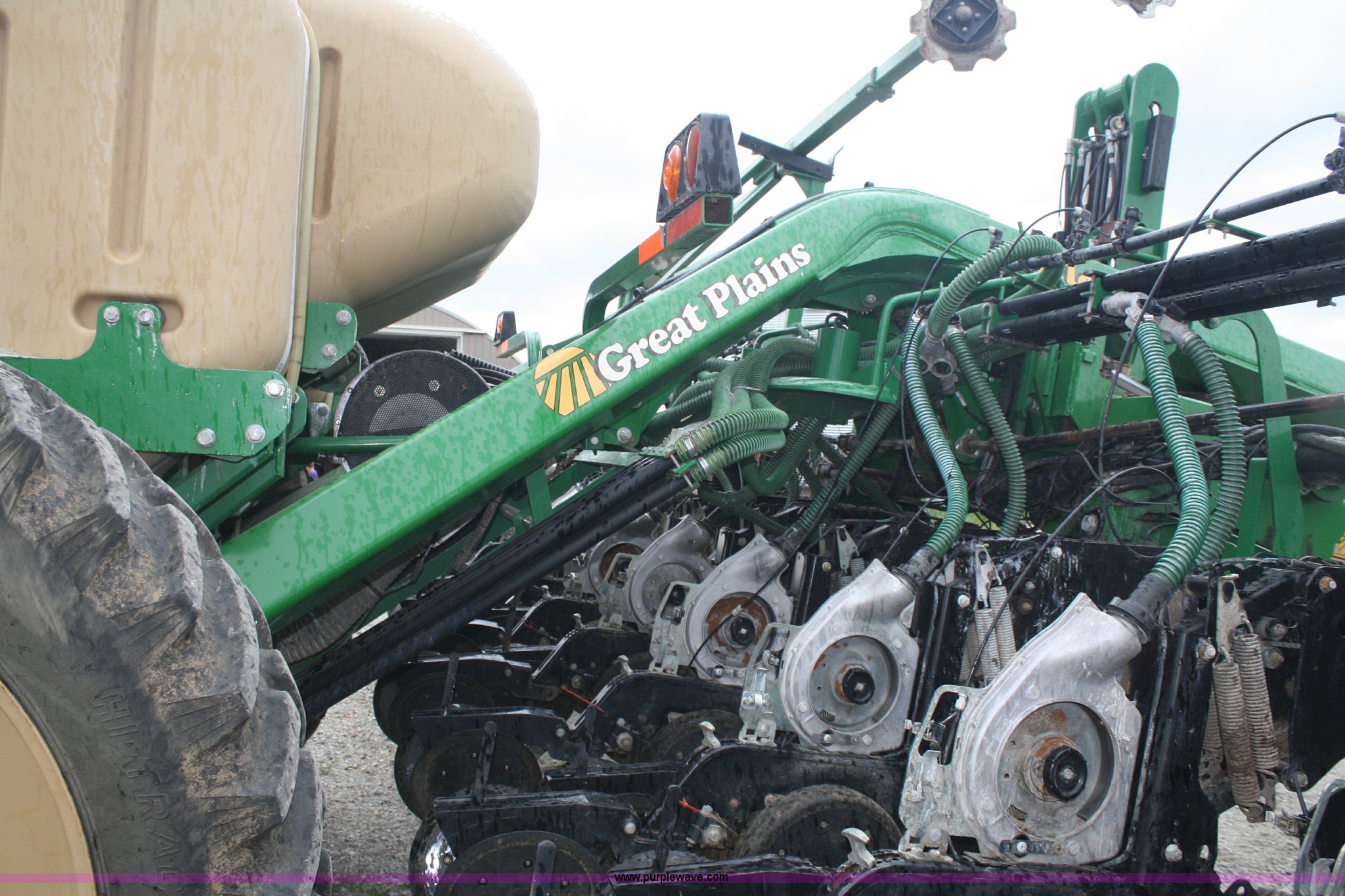 Purple Wave is selling a used Planter in Missouri. This item is a Great Plains Yield Pro 1625 planter with the following: 31 row at 15" spacing, Ground driven seed metering system, 82 bushel bulk seed box, Hydraulic markers, Ground driven fertilizer pump, (2) 200 gallon liquid fertilizer tanks, (31) No-till coulters, (16) Keeton row cleaners, (31) bean and milo meters, each, (16) corn meters, Ag Leader sensors included, Ag Leader monitor not included, Dickie John monitor, Three point hitch, Serial GPA1108B