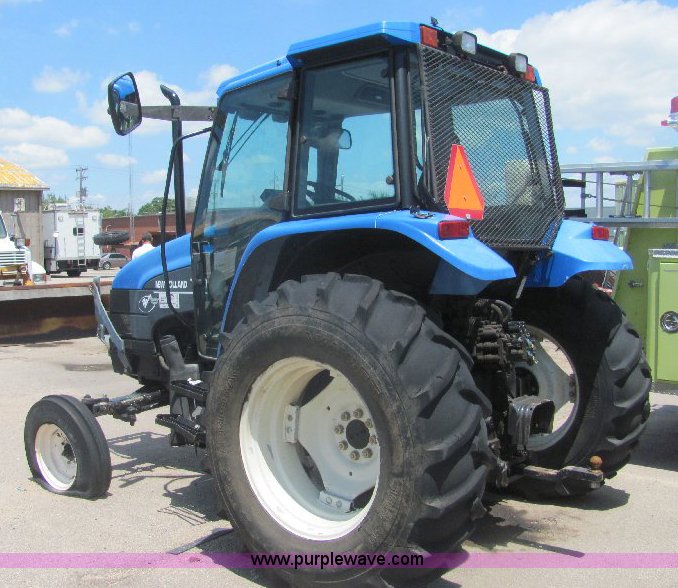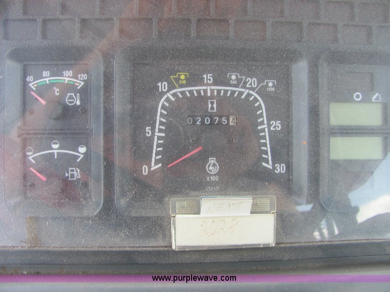 Purple Wave is selling a used Tractor in Kansas. This item is a New Holland TS110 tractor with the following: 2,075 hours on meter, New Holland four cylinder diesel engine, 16F-16R gears, Differential lock, AC and heat, AM/FM, Suspension seat, Joystick loader control, Front and rear windshield wipers, Front and rear work lights, (4) hydraulic remote sets, 1000 PTO, 10.00-16 front tires, One tire flat, 18.4-30 rear tires, Dead battery, Serial S25241, Equip# 1269
