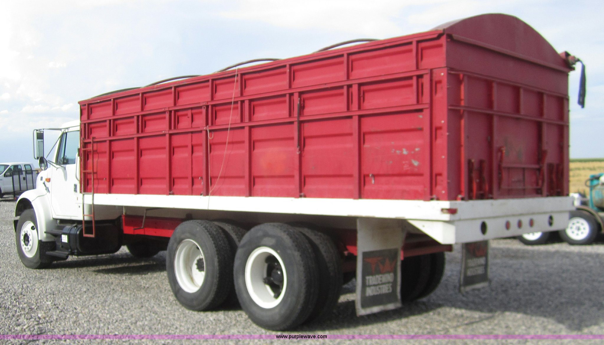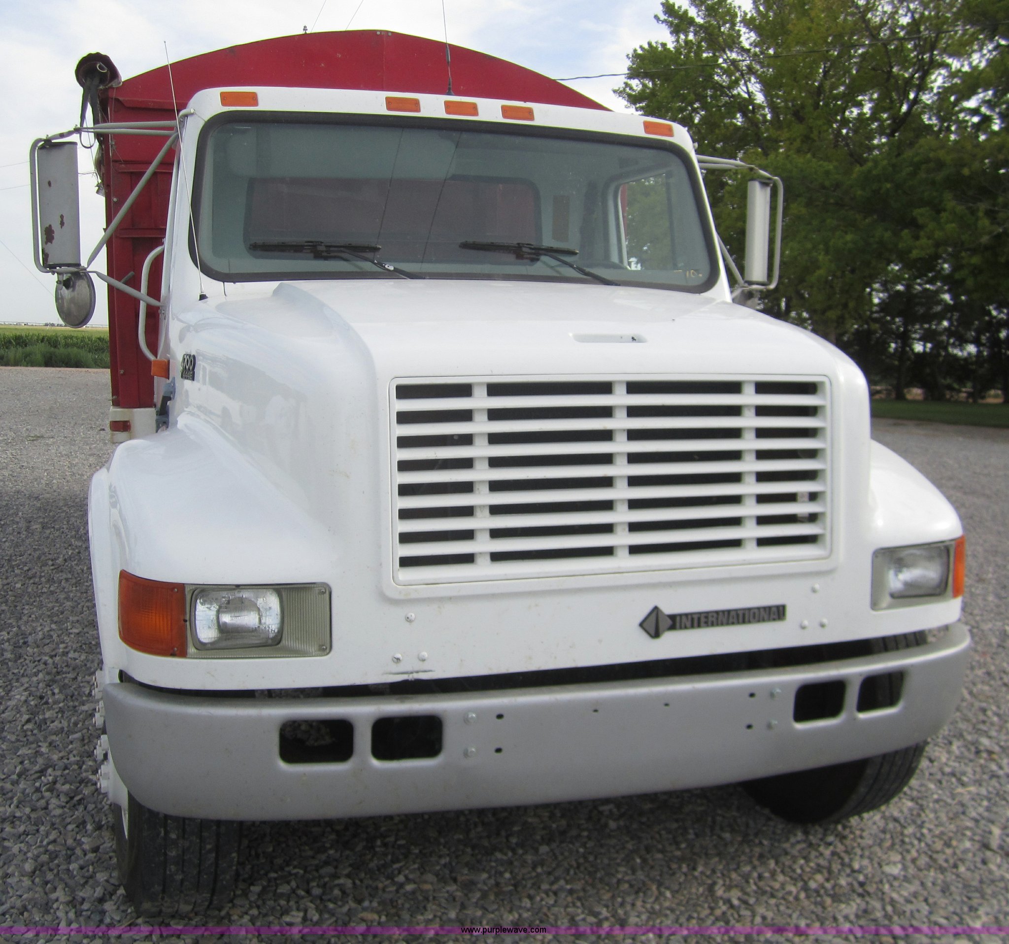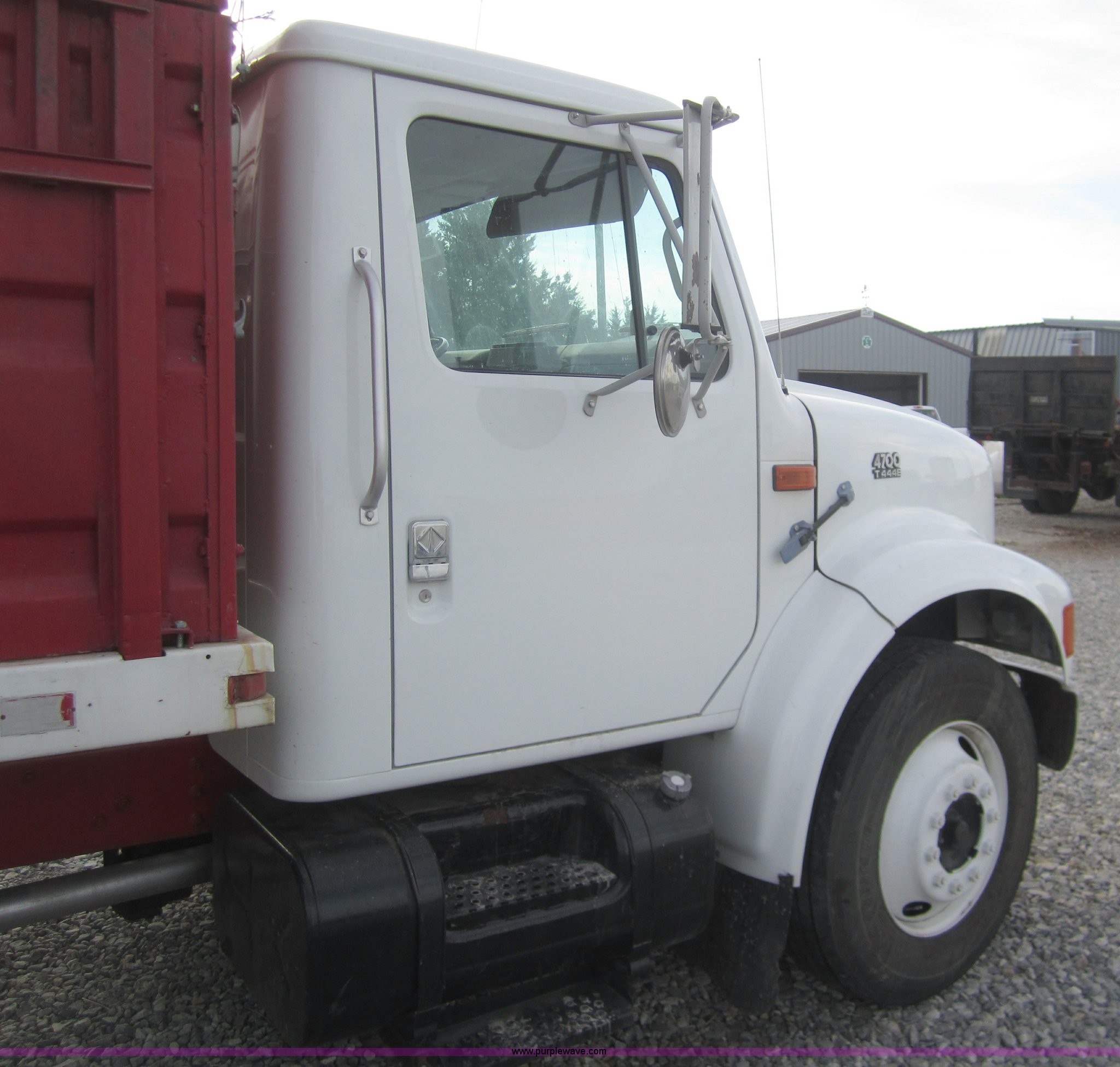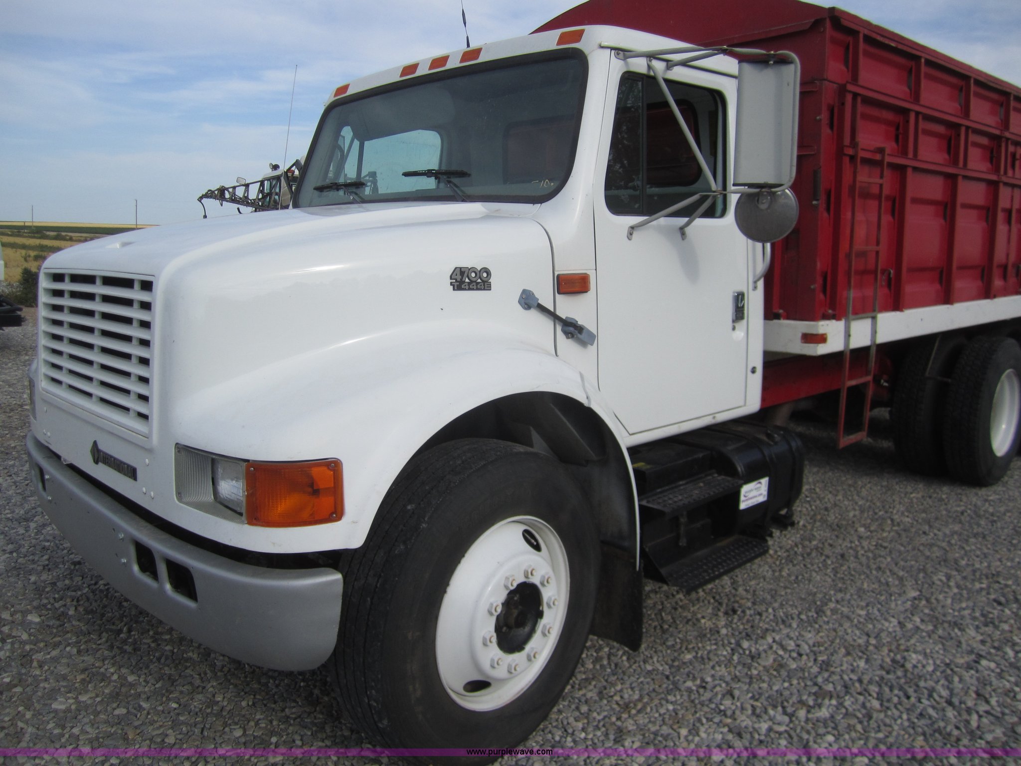 Purple Wave is selling a used Grain Truck in Kansas. This item is a 1998 International 4700 grain truck with the following: 194,943 miles on odometer, International T444 7.3L diesel engine, Seven speed manual transmission, AC and heat, Cruise, AM/FM, Block heater, Tradewind 20' dump bed, Roll over tarp, Manual end gate, Galion twin cylinder hoist, Dual 50 gallon fuel tanks, Spring suspension, Hydraulic brakes, Drag axle, 295/75R22.5 tires, 208" wheelbase