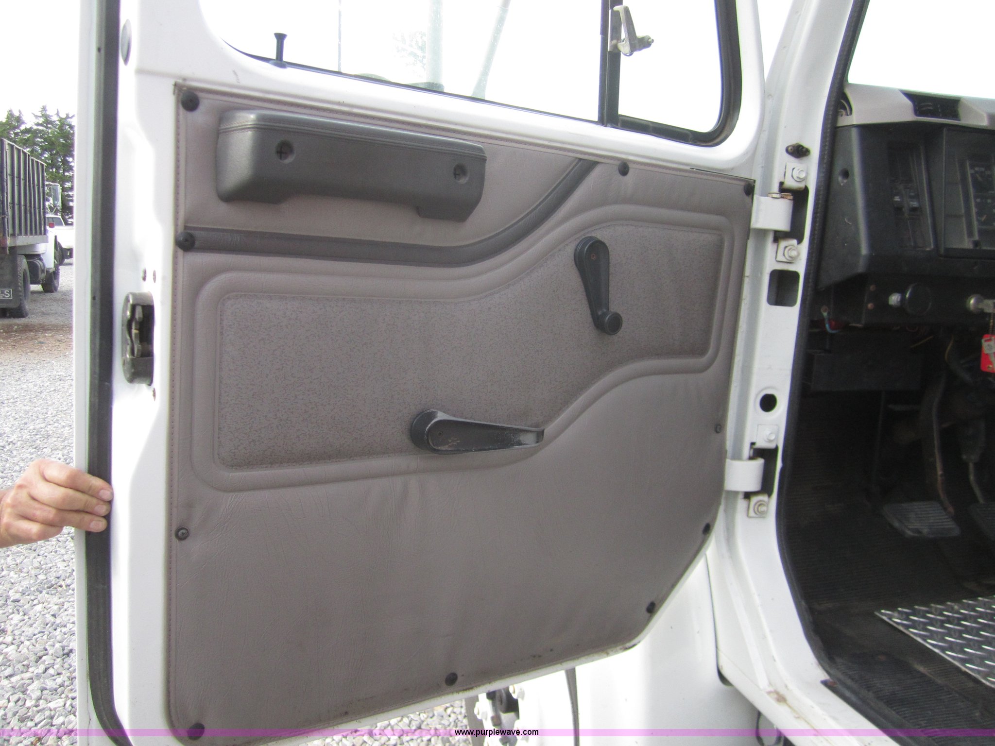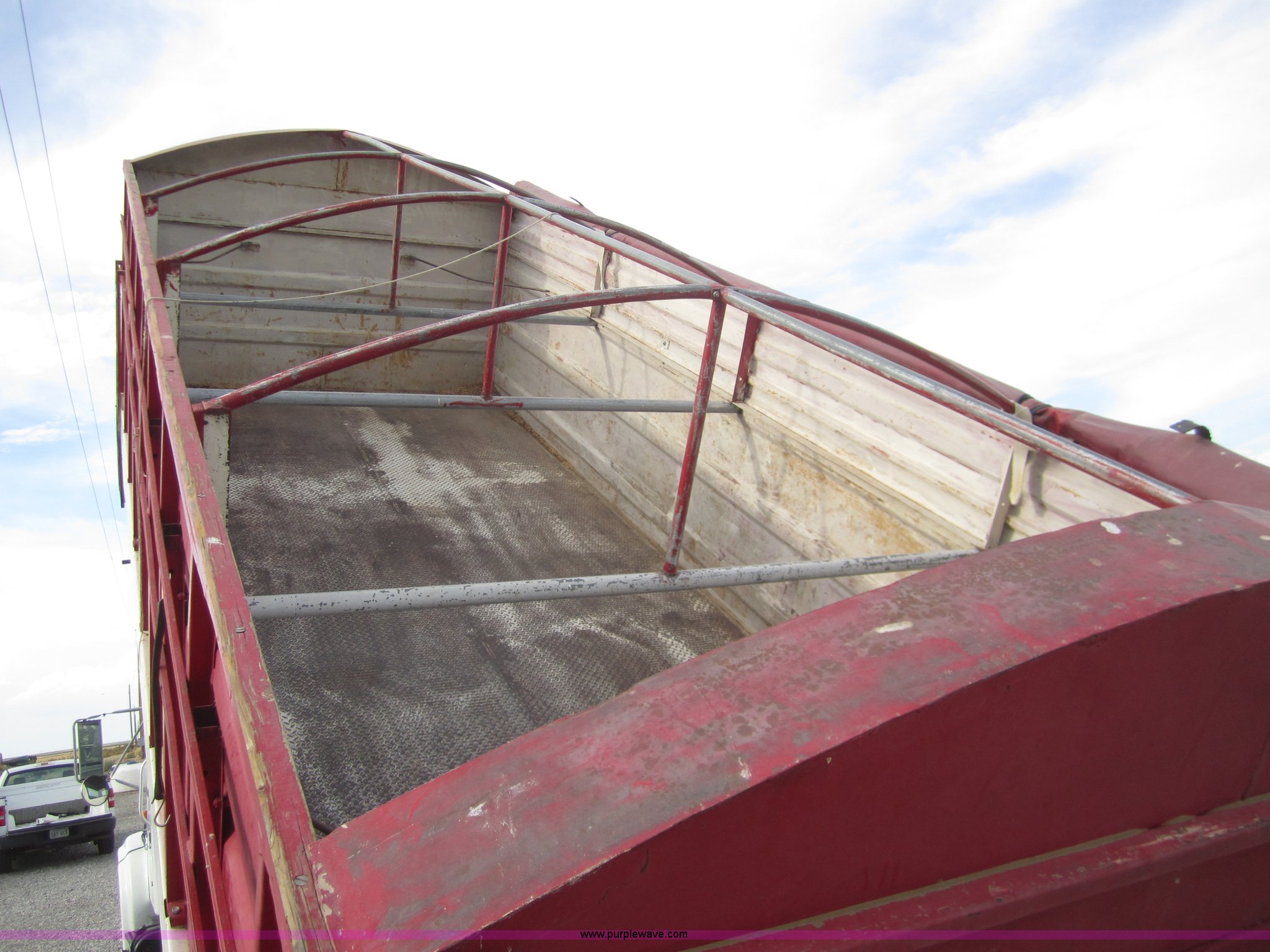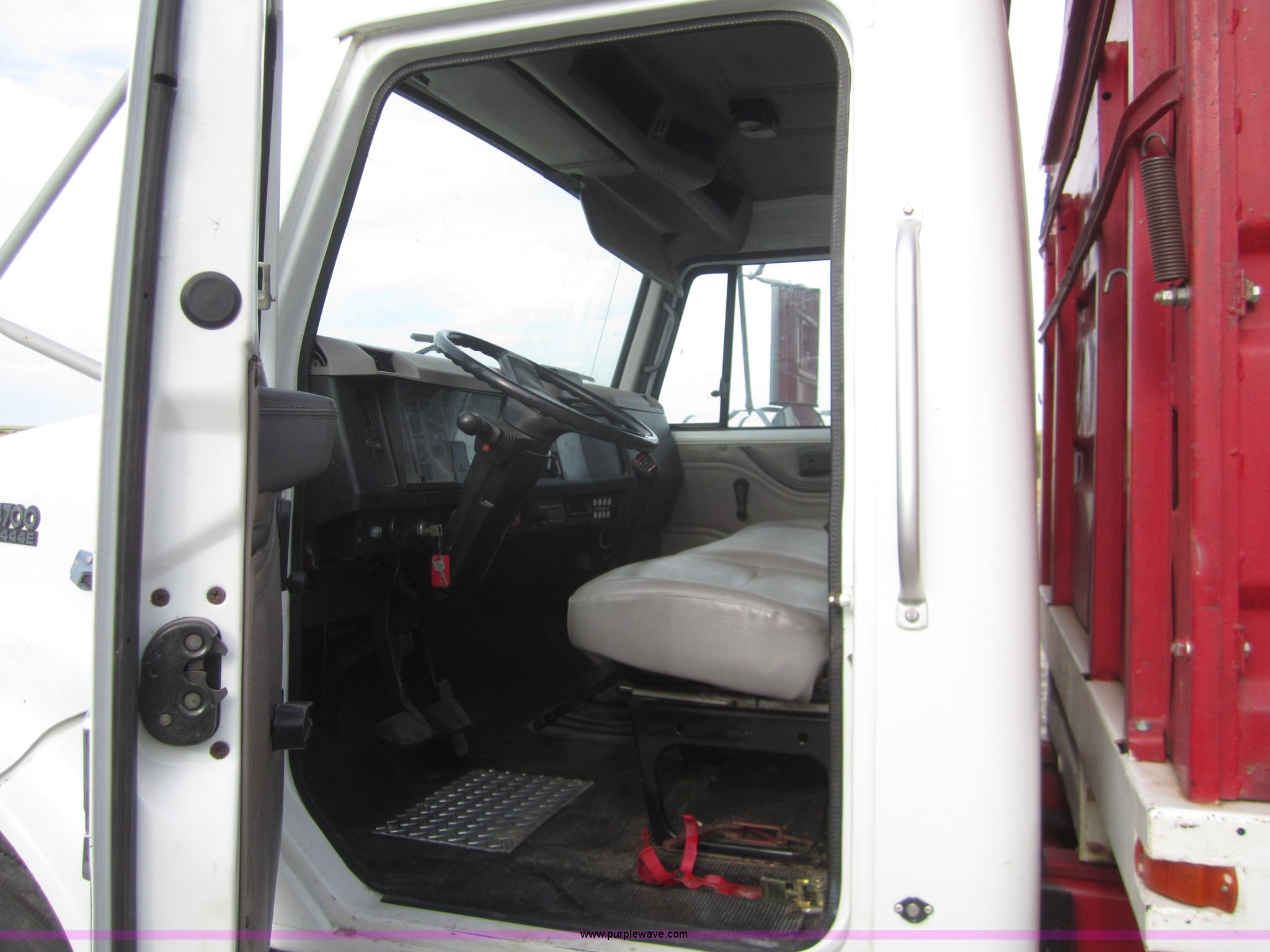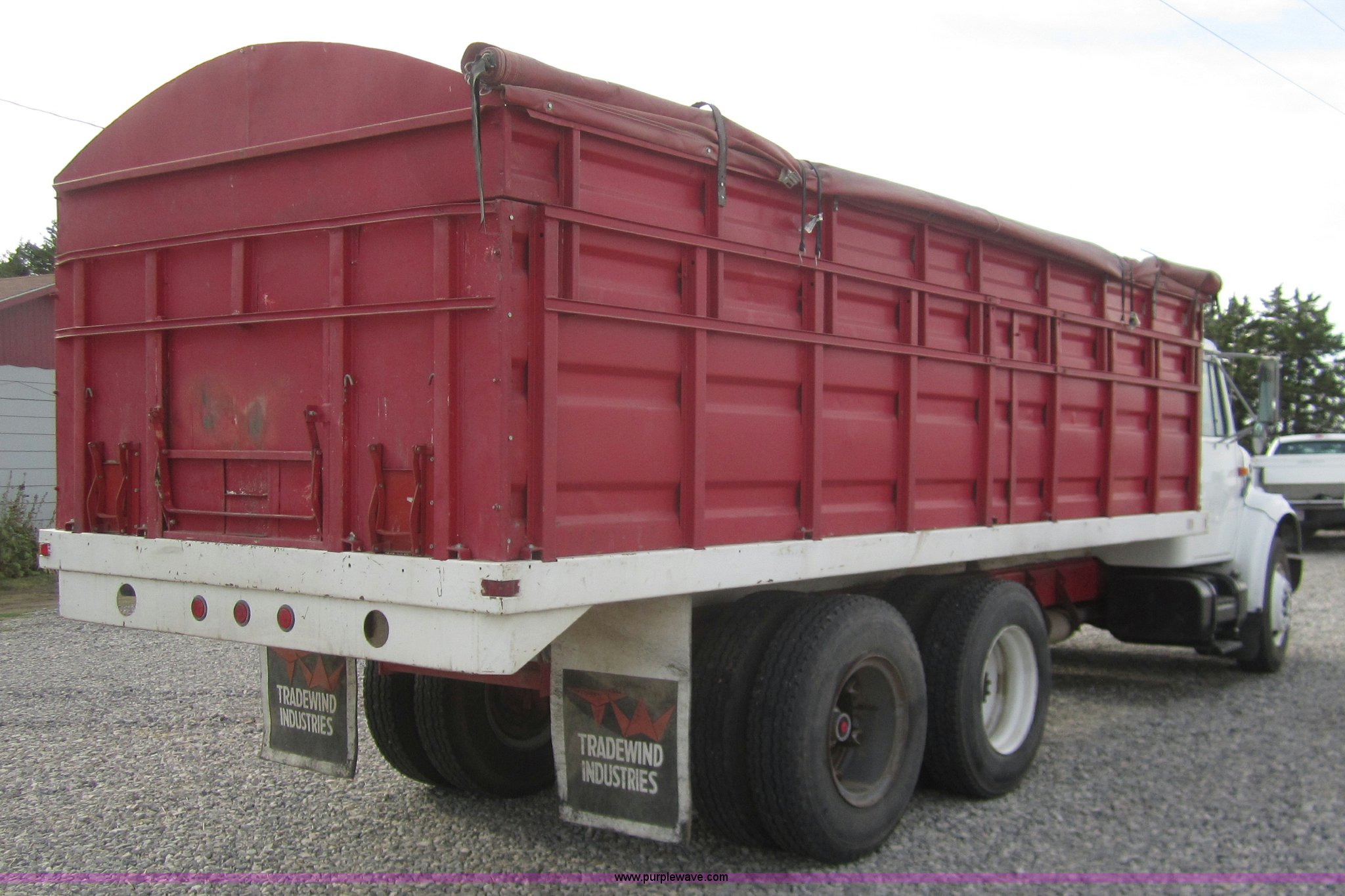 Purple Wave is selling a used Grain Truck in Kansas. This item is a 1998 International 4700 grain truck with the following: 194,943 miles on odometer, International T444 7.3L diesel engine, Seven speed manual transmission, AC and heat, Cruise, AM/FM, Block heater, Tradewind 20' dump bed, Roll over tarp, Manual end gate, Galion twin cylinder hoist, Dual 50 gallon fuel tanks, Spring suspension, Hydraulic brakes, Drag axle, 295/75R22.5 tires, 208" wheelbase
