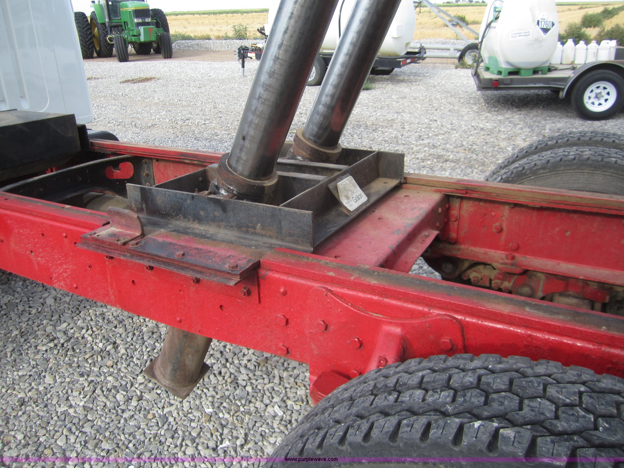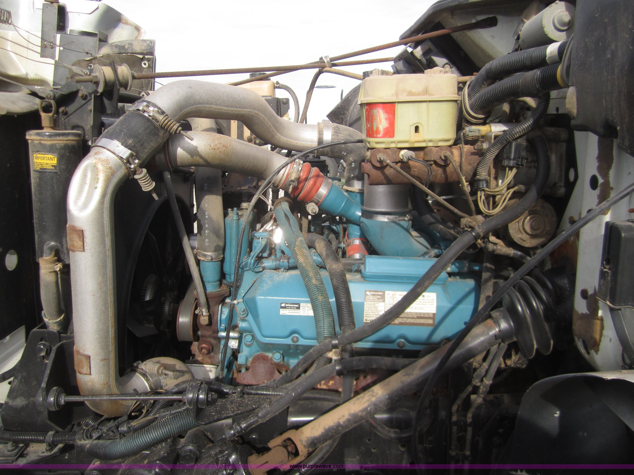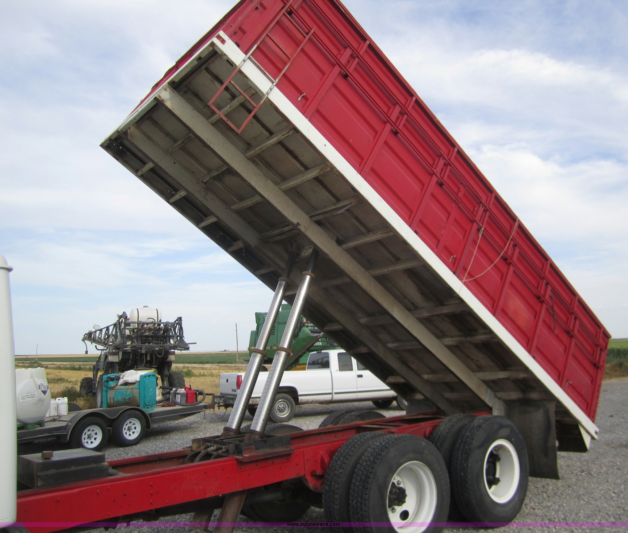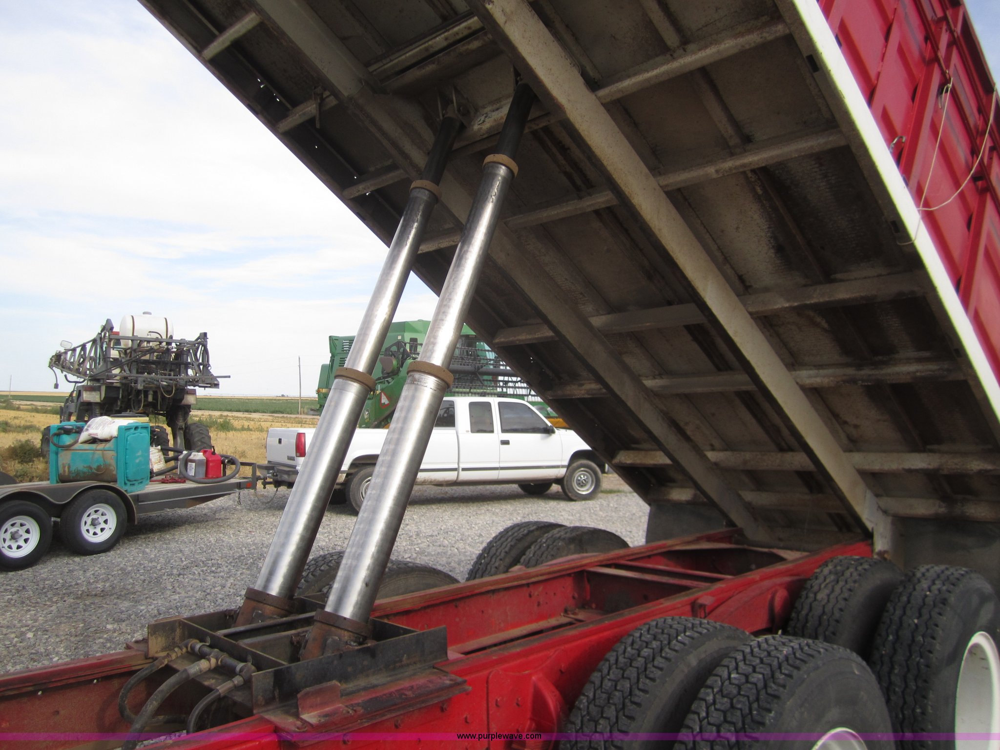 Purple Wave is selling a used Grain Truck in Kansas. This item is a 1998 International 4700 grain truck with the following: 194,943 miles on odometer, International T444 7.3L diesel engine, Seven speed manual transmission, AC and heat, Cruise, AM/FM, Block heater, Tradewind 20' dump bed, Roll over tarp, Manual end gate, Galion twin cylinder hoist, Dual 50 gallon fuel tanks, Spring suspension, Hydraulic brakes, Drag axle, 295/75R22.5 tires, 208" wheelbase