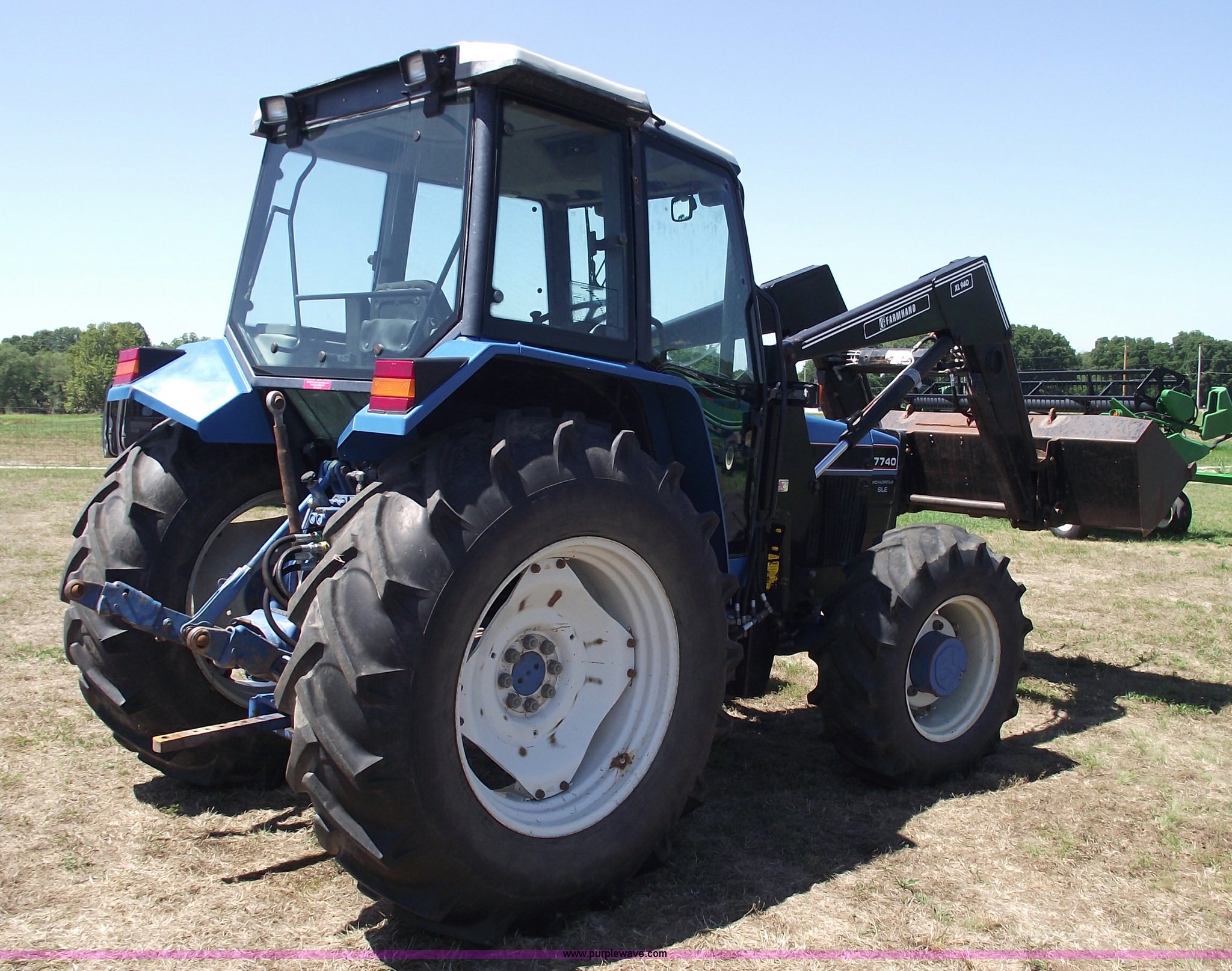 Purple Wave is selling a used Tractor in Missouri. This item is a 1992 Ford 7740 Powerstar SLE MFWD tractor with the following: 4,725 hours on meter, Ford four cylinder diesel engine, 86 HP, Model 2F16, Serial 357895, Partial Powershift transmission, 16F-16R gears, Differential lock, AC and heat, Spring seat, Instructor's seat, Tilt wheel, AM/FM, Farmhand loader, 85" smooth bucket, Quick attach, Bale spike, Two-lever control, Three point, Draw bar, Auxiliary outlet, 540/1000 PTO, Rear hydraulic remotes, 25 gallon fuel capacity, 14.9/24 front tires, 18.4/34 rear tires, 96" wheelbase, Serial B020699