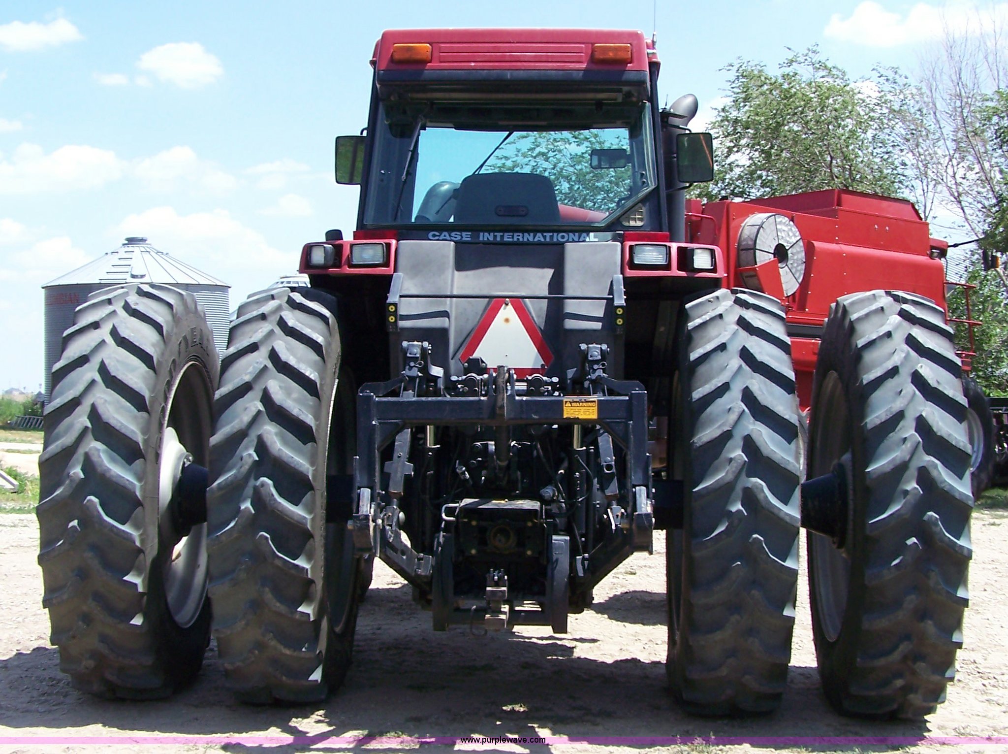 Purple Wave is selling a used Tractor in Kansas. This item is a 1994 Case IH Magnum 7250 MFWD tractor with the following: 9,062 hours on meter, Six cylinder diesel engine, Remanfactured engine with 3,300 hours, 200 HP, Serial AJB0066768, Partial Powershift transmission, 18F-4R gears, AC and heat, Air ride seat, Tilt wheel, AM/FM/Cassette, Three point quick attach, 540/1000 PTO, (4) rear hydraulic remote sets, (22) front suitcase weights, Rear weights, Unknown size, 420/90R30 front tires, 480/80R46 rear tires, New AC clutch, Recently serviced, All repairs done by Oakley Ag Center, LLC., Stored inside, Serial JJA0051476