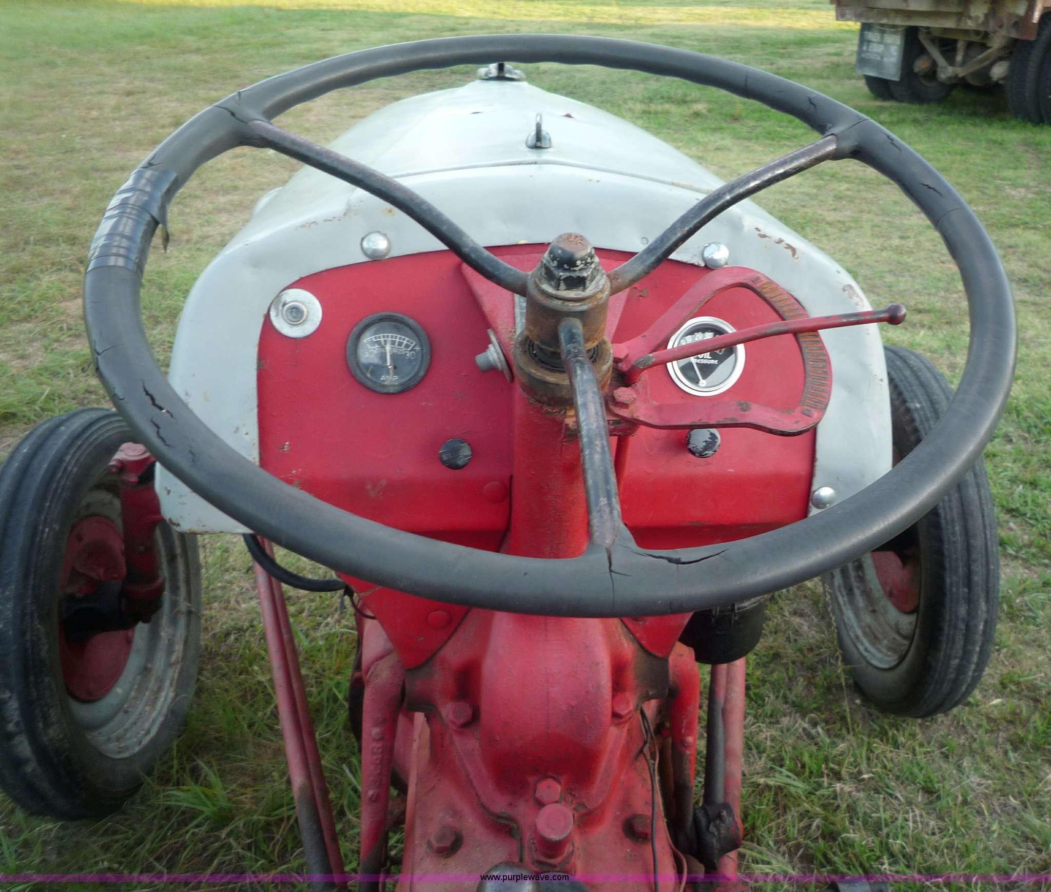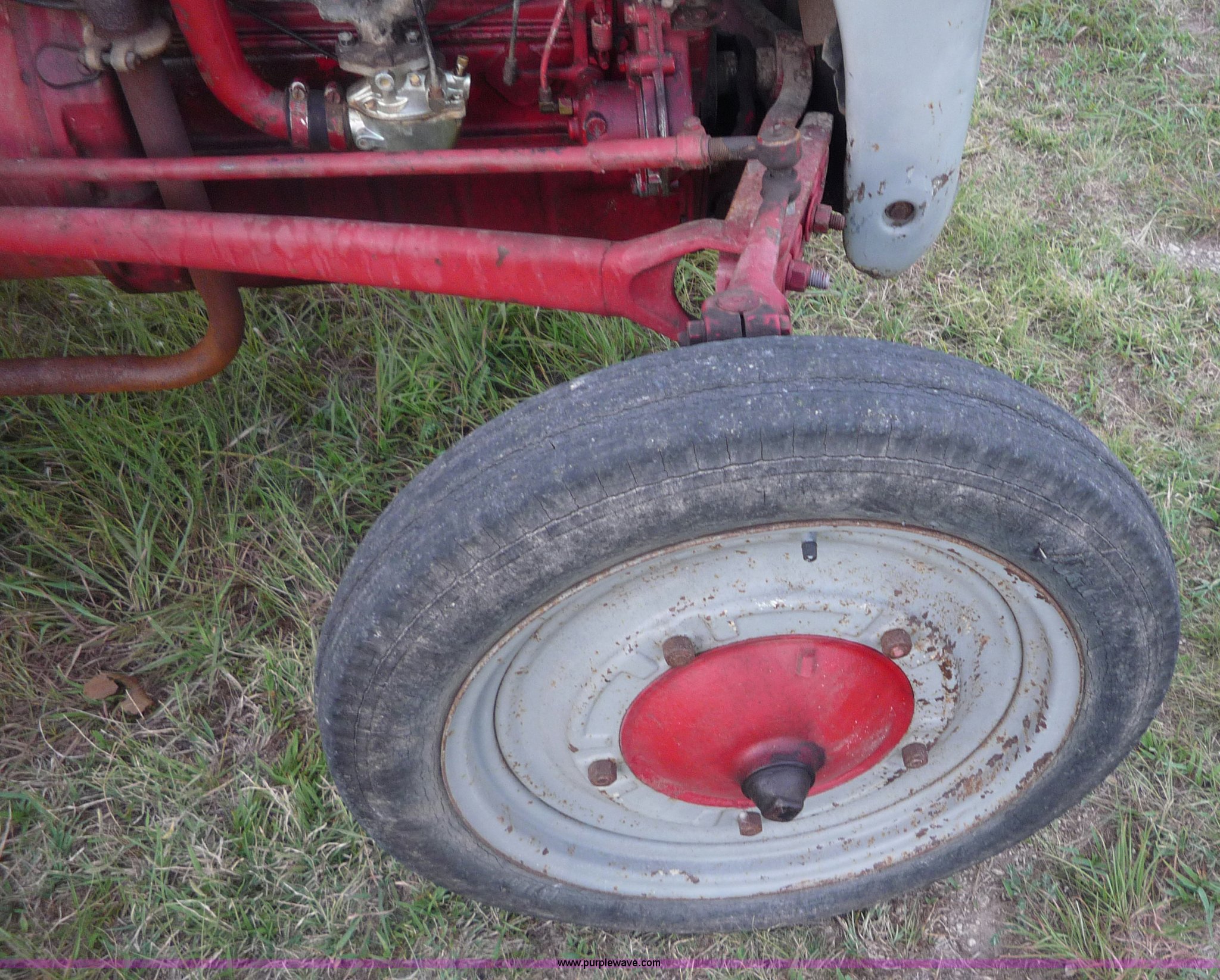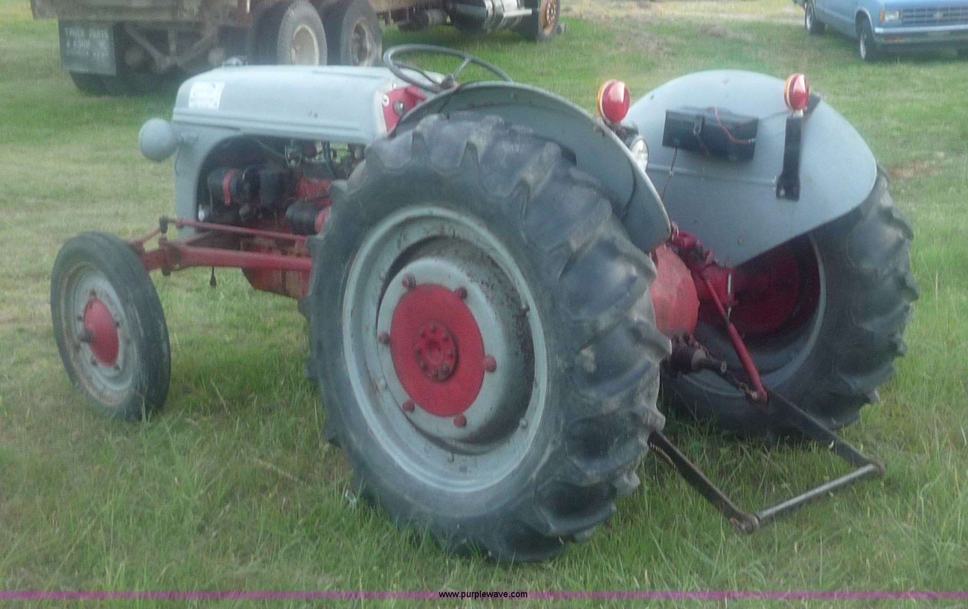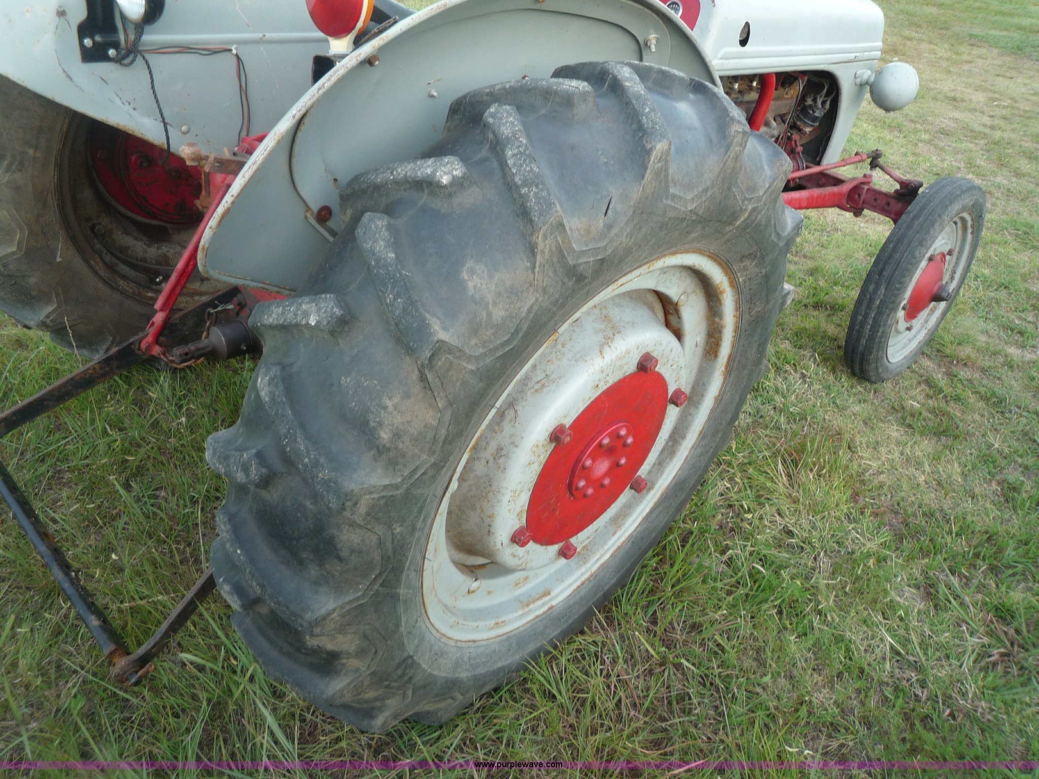 Purple Wave is selling a used Tractor in Kansas. This item is a 1946 Ford 2N tractor with the following: Four cylinder gas engine, 3F-1R gears, Three point, 540 PTO, 4.0-9 front tires, 12.4-28 rear tires, Front left tire has slow leak, 6v battery weak, Serial 9N226817
