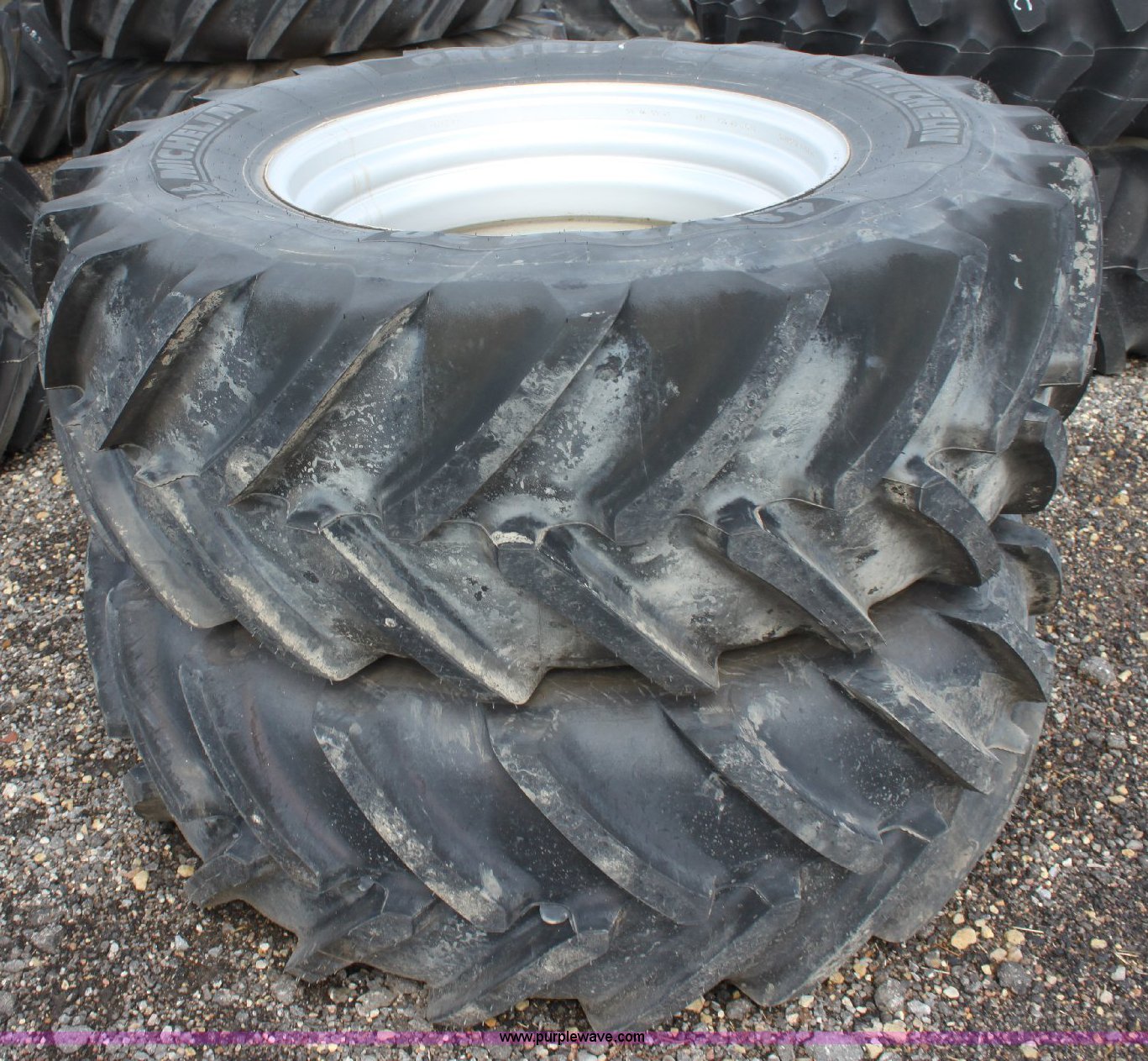Purple Wave is selling a used Industrial Tires or Tracks in Kansas. This item is a (2) Michelin 480/70R30 wheels and tires with the following: New