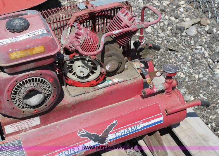Purple Wave is selling a used Air Compressor in Kansas. This item is a Porta-Champ portable air compressor with the following: Honda gas engine, Unknown operating condition