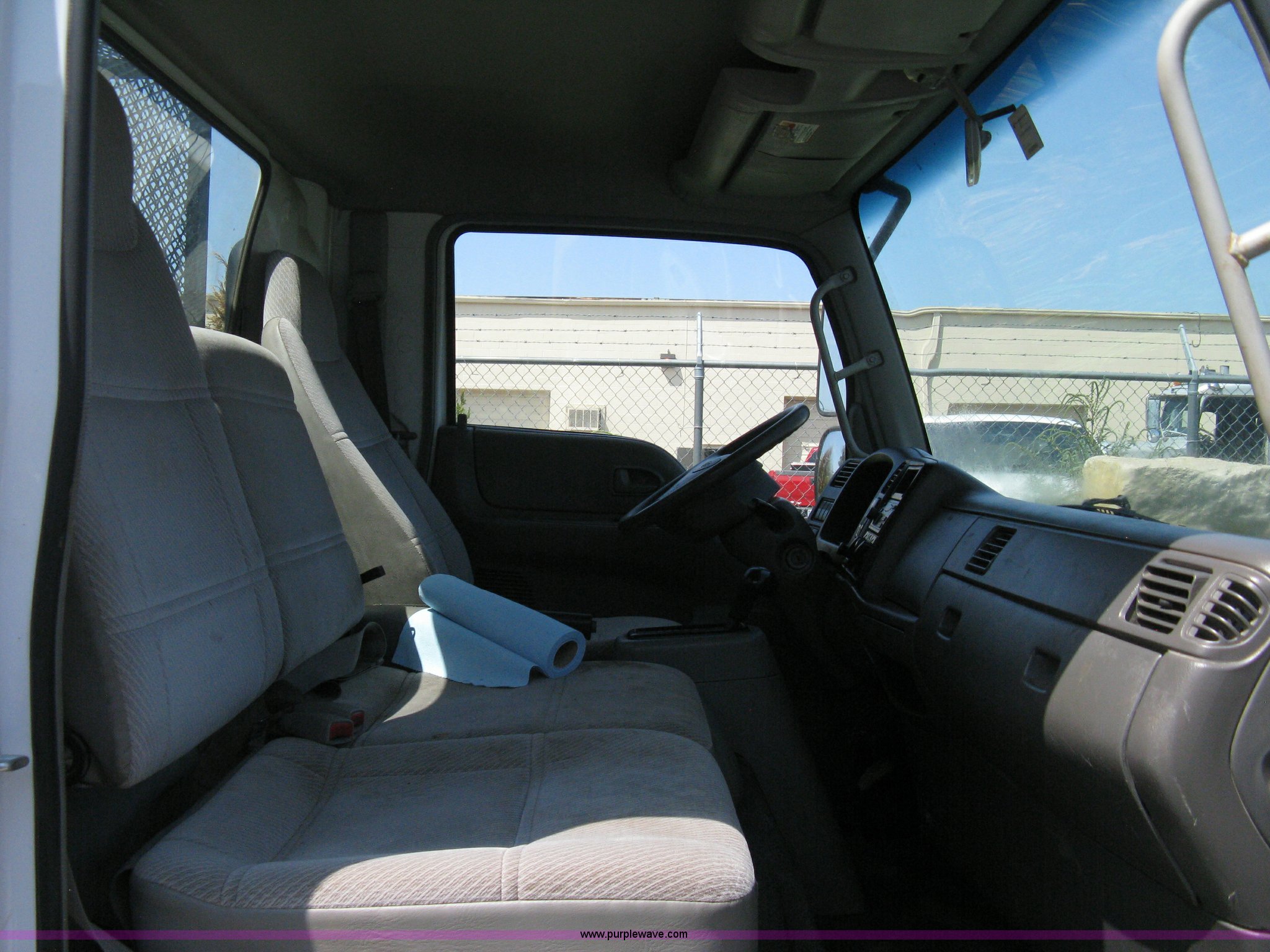 Purple Wave is selling a used Flat Bed Truck in Kansas. This item is a 2006 Ford LCF L45 flatbed utility truck with the following: 54,550 miles on odometer, Powerstroke 4.5L V6 diesel engine, Automatic transmission, AC and heat, Tilt, Cruise, AM/FM, Power windows and locks, Economy LG1107 bed, 14'L with 4' dove tail, 8'W, (2) 4' x 6' drop down ramps, 16"H drop down side walls on passenger side, Tool crib behind cab, Steel expanded metal floor, GVWR 16,000 lbs, 225/70R19.5 tires