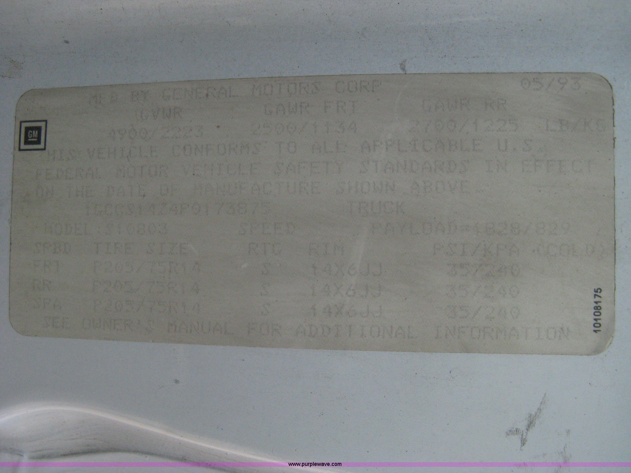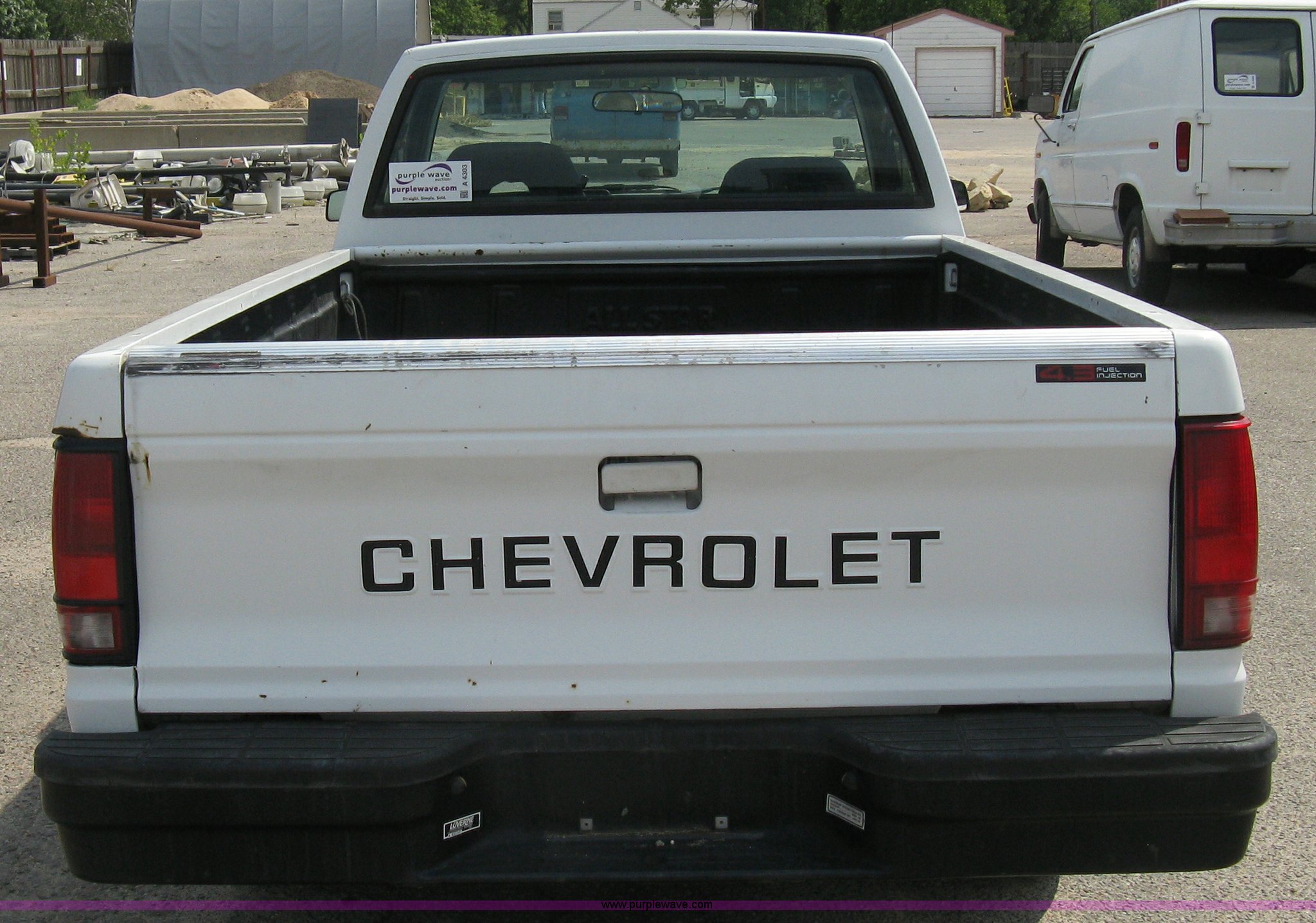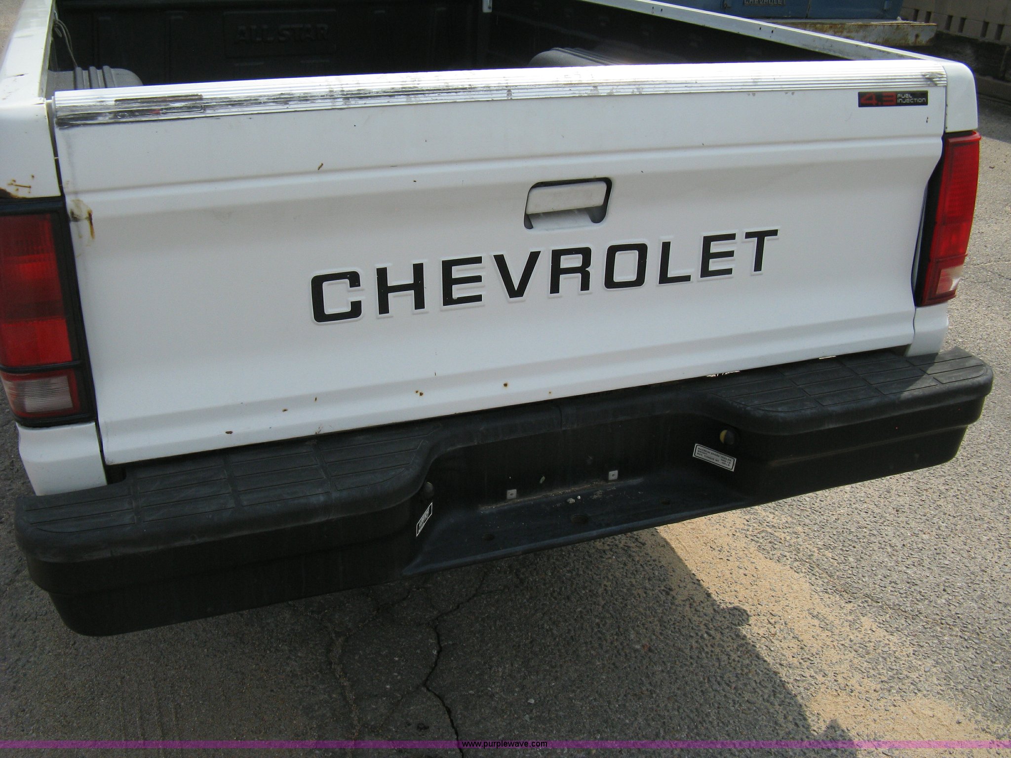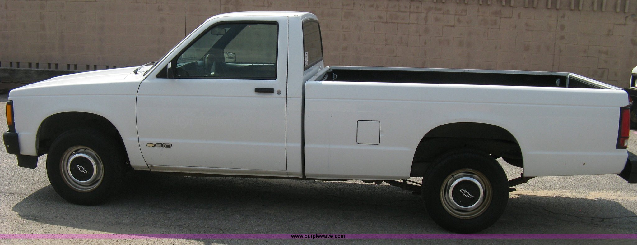 Purple Wave is selling a used Passenger Vehicle in Kansas. This item is a 1993 Chevrolet S10 pickup truck with the following: 49,262 miles on odometer, 4.3L V6 TBI engine, Automatic transmission, AC and heat, AM/FM, Manual windows and locks, Bench seat, Recently replaced head liner, Plastic bed liner, P205/75R14 tires, Spare tire