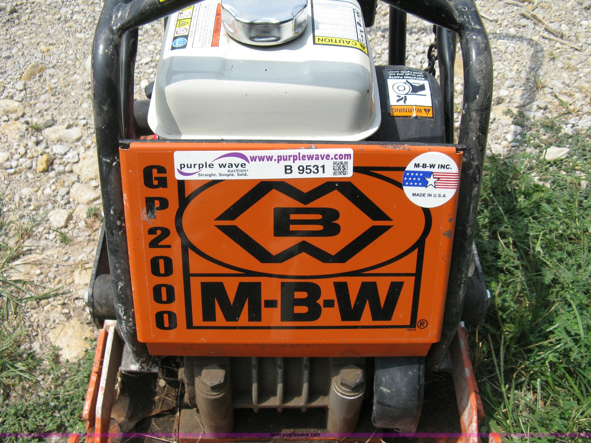Purple Wave is selling a used Tools in Kansas. This item is a MBW GP2000 plate compactor with the following: Honda GX160 gas engine