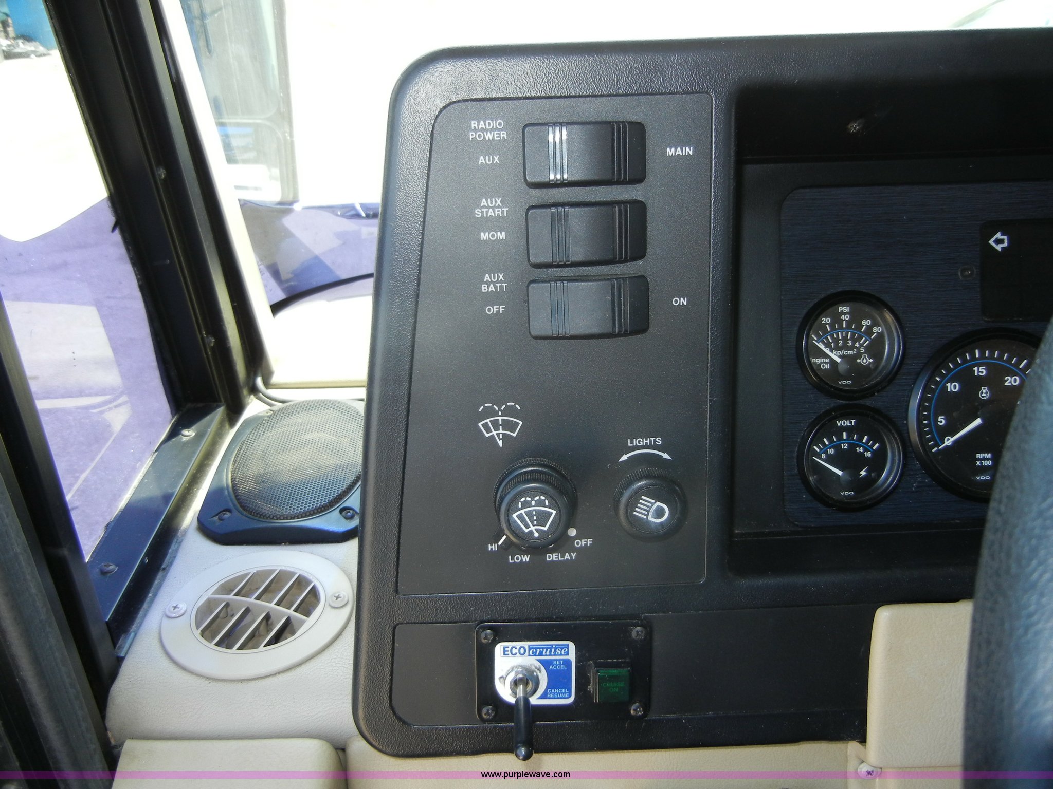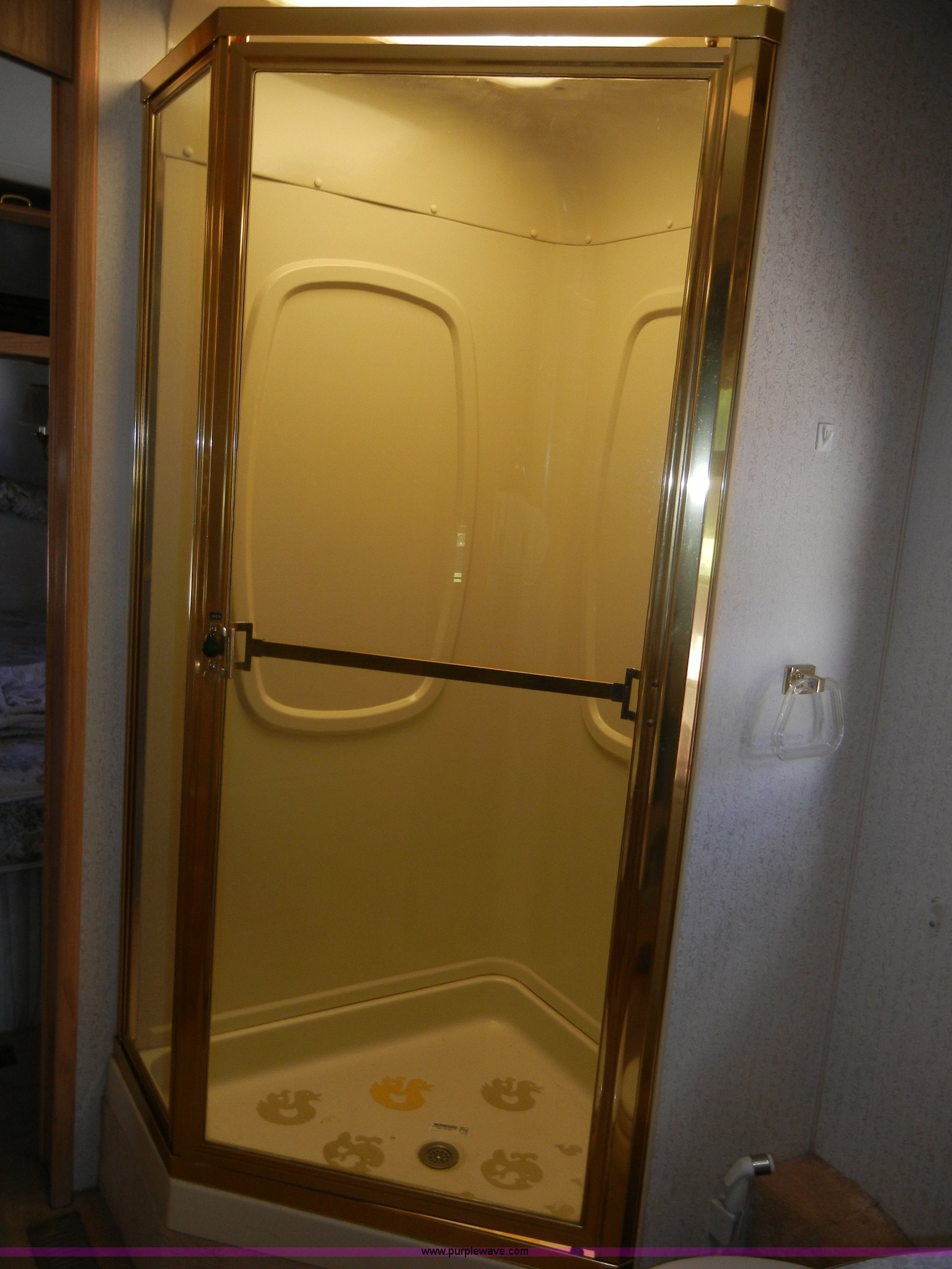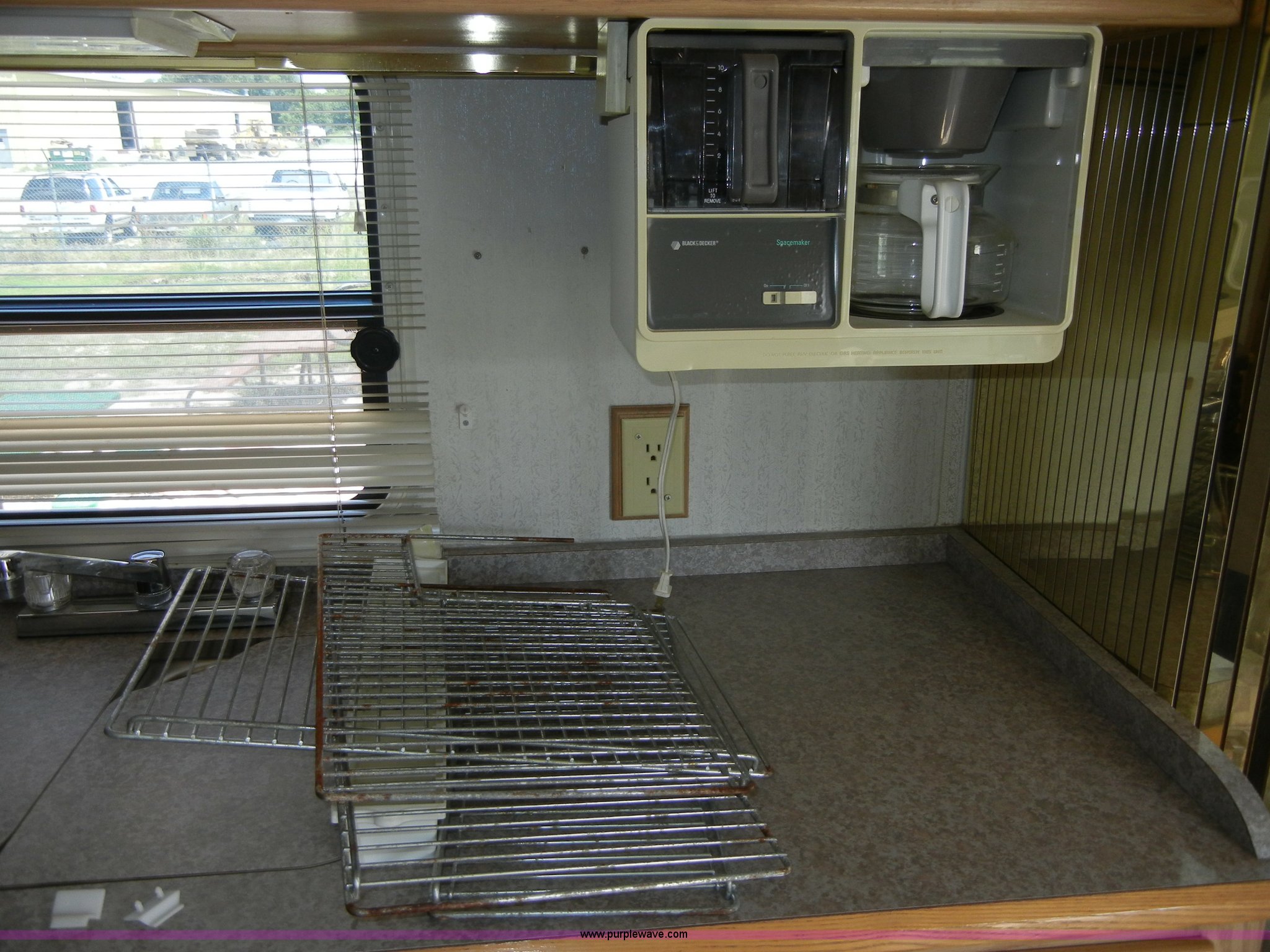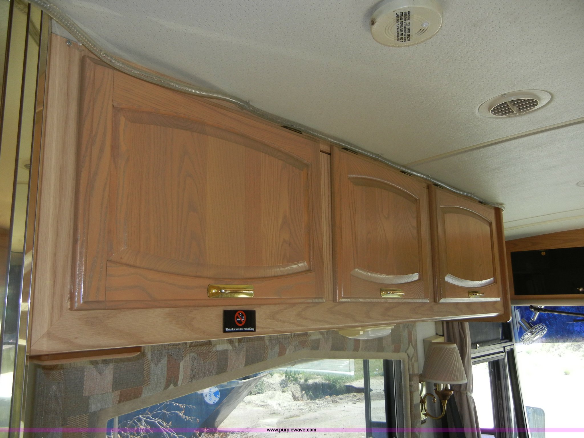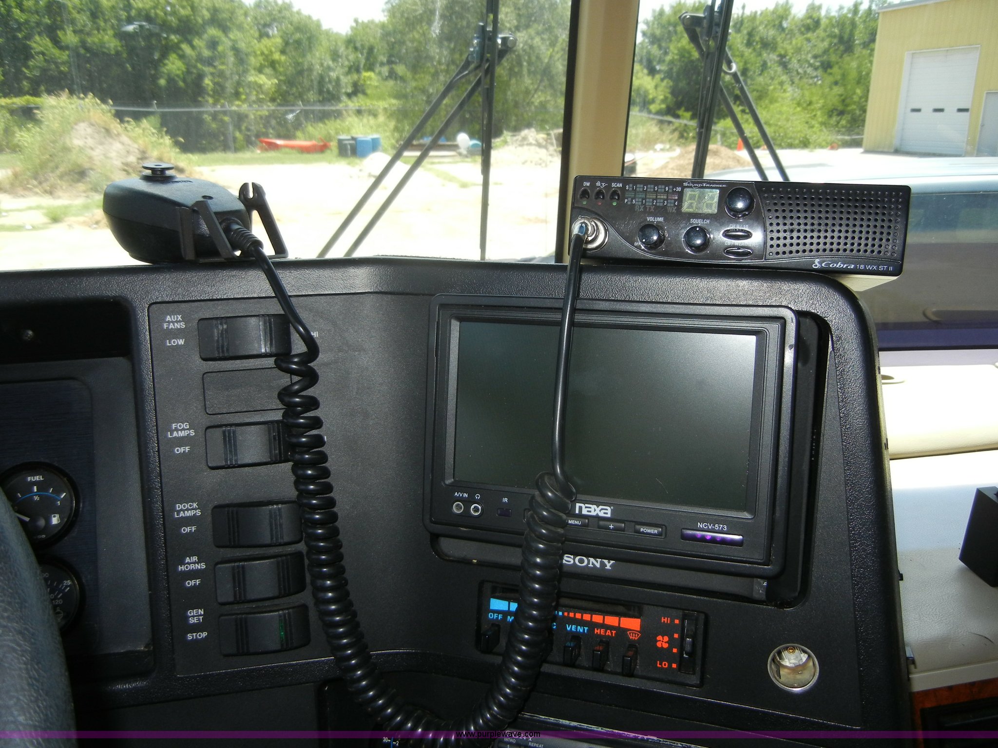 Purple Wave is selling a used RV in Kansas. This item is a 1994 Spartan Vectra Winnebago motor home with the following: 63,498 miles on odometer, Cummins 5.9L diesel engine, Automatic transmission, Push button unit, no gear shift, AC and heat, AM/FM/Cassette, Power windows, locks, and mirrors, Cloth captain chairs, CB unit, Bedroom, Bed, VCR, storage, Bathroom, Shower, toilet, sink, closets, Kitchen, Fridge/freezer, sink, stove, microwave, table with two chairs, Living room, Couch, chair, 26" LED color TV, storage, Awning, LP gas system, Hot water heater, Exterior stereo unit, Sewage outlet, Computerized leveling units, Receiver hitch, Trailer wiring, 8R19.5 tires, GVWR 20,500 lbs, FAWR 7,000 lbs, RAWR 13,500 lbs, Model WSM35RQ, Type MPV, Dead battery, Kitchen wood flooring needs repaired, Serial 80M824228150