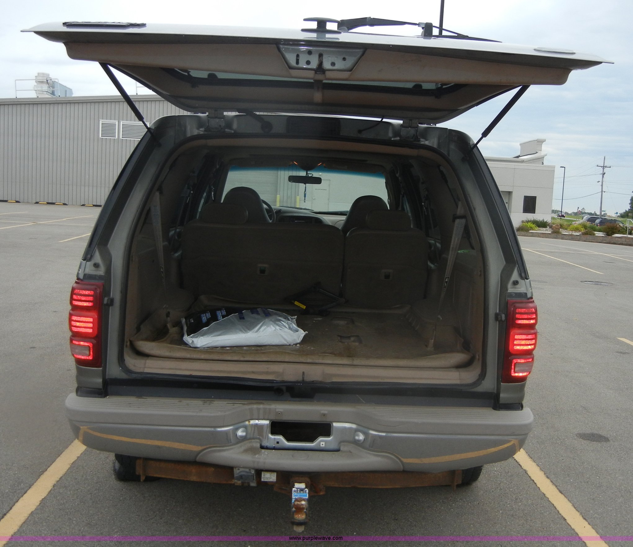 Purple Wave is selling a used Passenger Vehicle in Kansas. This item is a 1999 Ford Expedition Eddie Bauer SUV with the following: Mileage unknown, Odometer non operational, Triton 5.4L V8 EFI engine, Automatic transmission, Four wheel drive, AC and heat, Tilt, Cruise, AM/FM, Power windows, locks, mirrors, and seats, Heated seats, Vinyl seats, damaged, Front and rear climate control, Sunroof, Keyless entry, Side rails, Bug shield, Front tow hooks, Receiver hitch, Trailer wiring, 265/70R17 tires, flat, Exterior/interior cosmetic damage