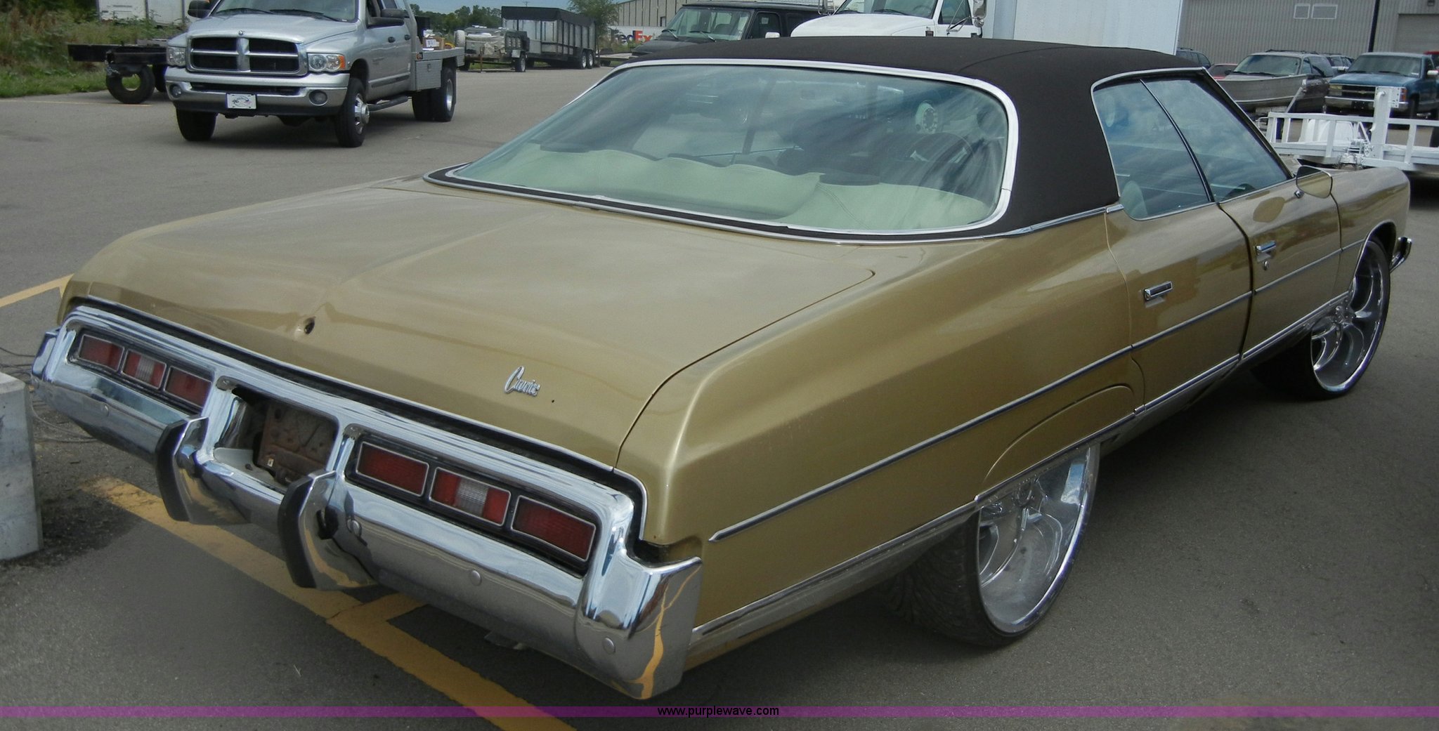 Purple Wave is selling a used Passenger Vehicle in Kansas. This item is a 1972 Chevrolet Caprice with the following: 94,539 miles on odometer, Automatic transmission, AC and heat, Cruise, AM/FM/CD, Power windows, Manual locks, Vinyl bench seats, Sunroof, 275/25ZP24 tires, Ignition key only, Trunk lock missing, Does not start, Driver window does not roll up correctly