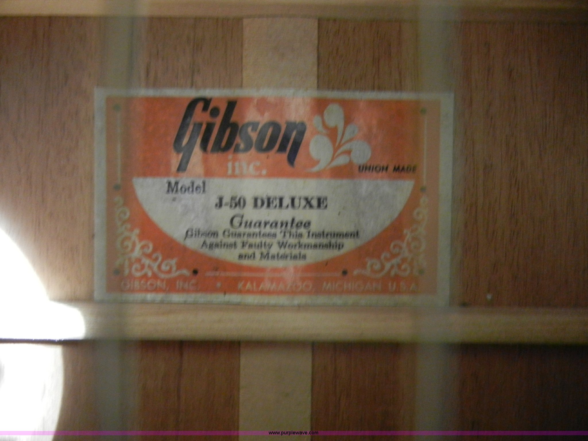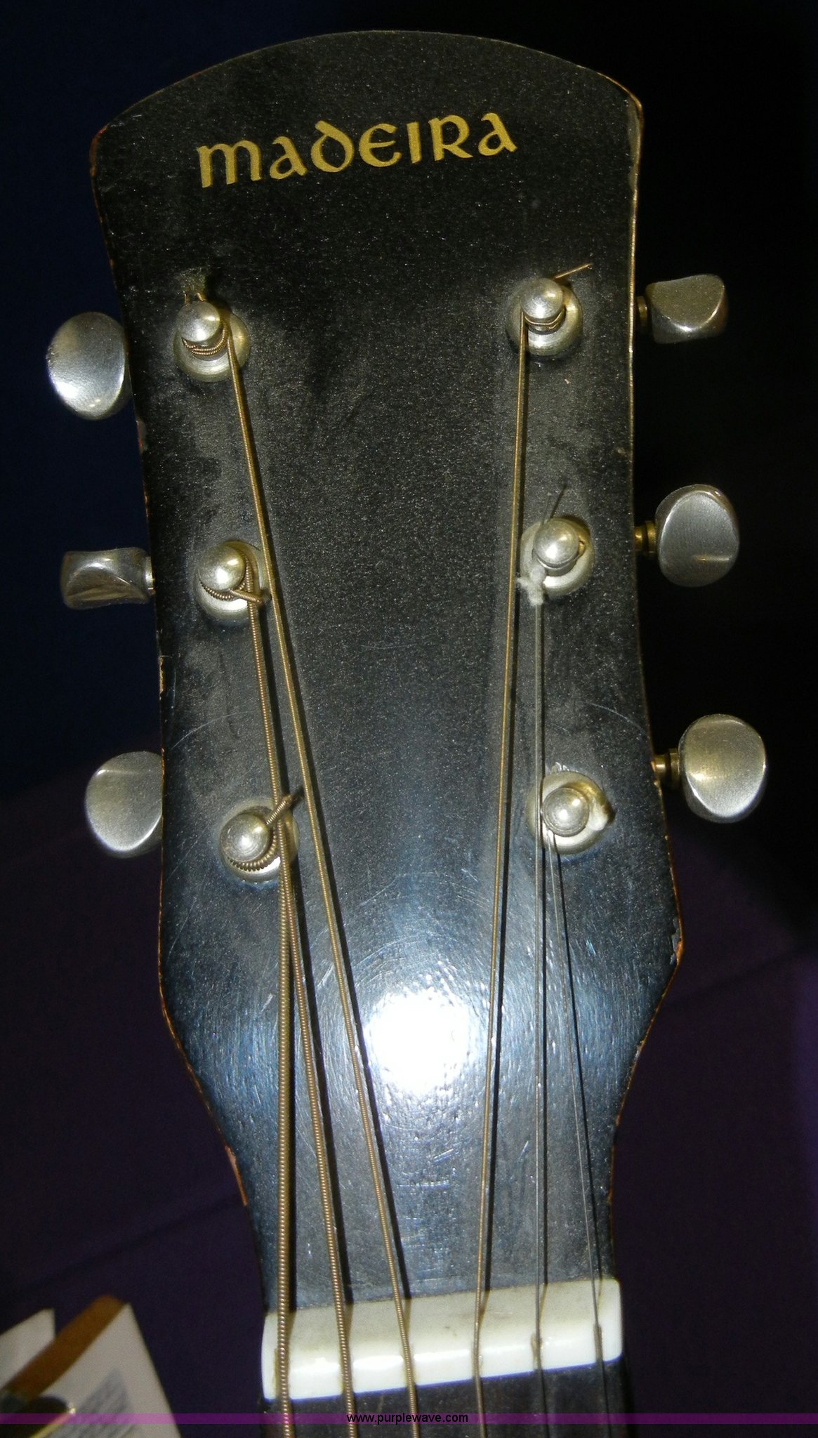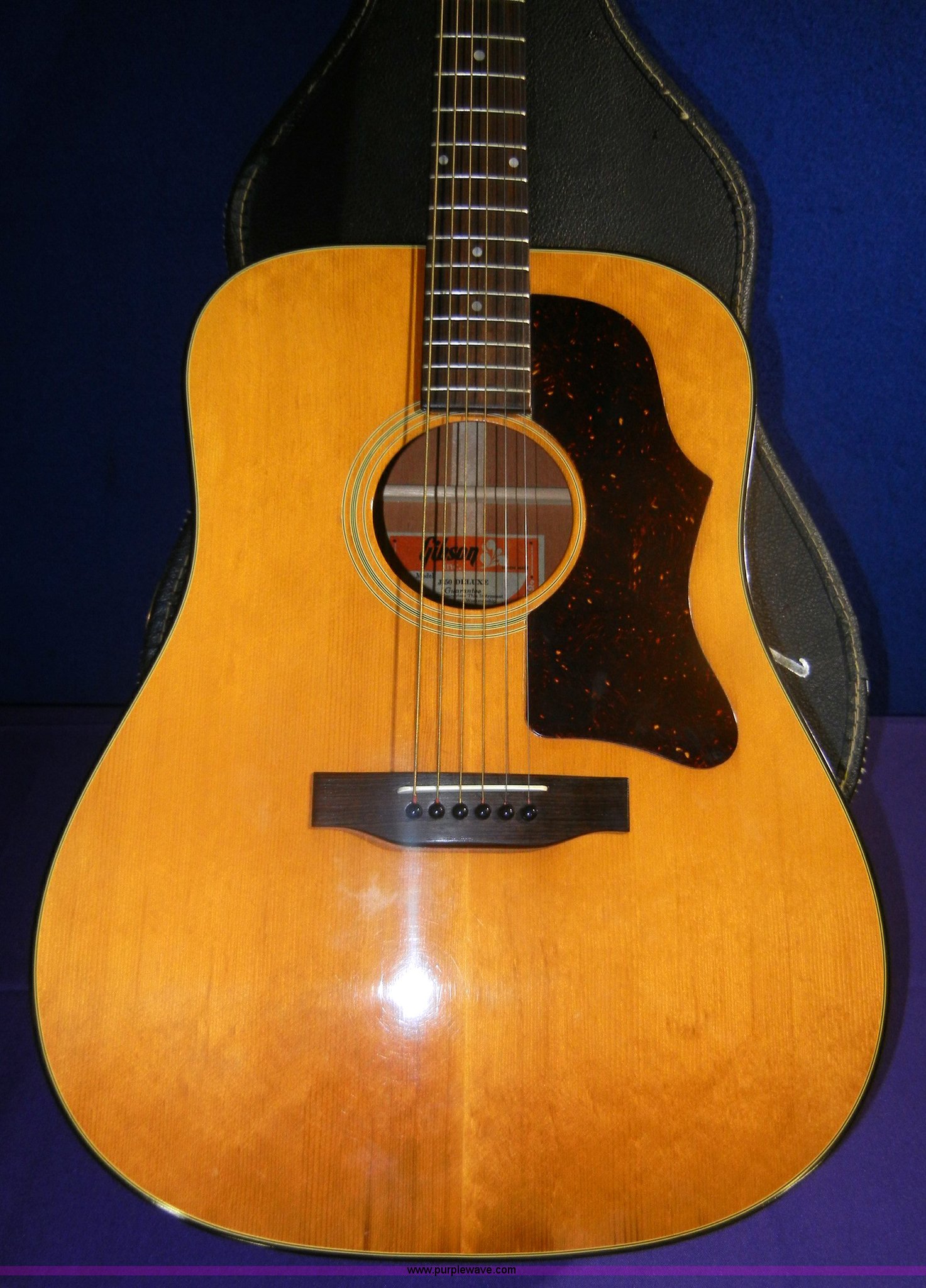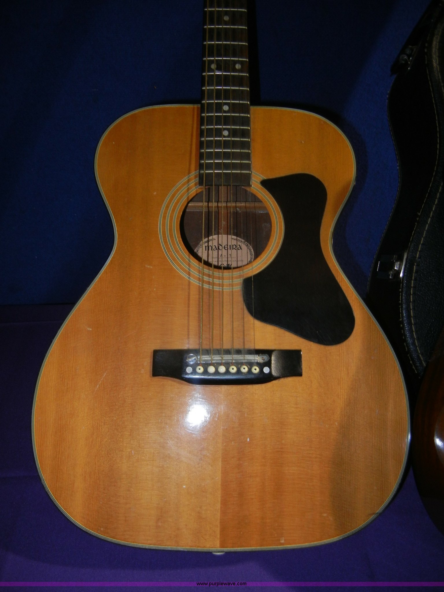 Purple Wave is selling a used Music Equip. in Kansas. This item is a (2) acoustic guitars with the following: Madeira by Guild, Model A-1, 40" length, Gibson with hard case, Model J-50 Dlx, 41" length