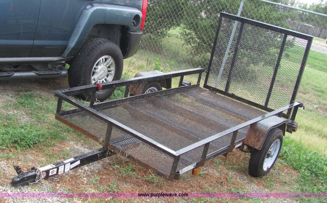 Purple Wave is selling a used Car or Utility Trailer in Kansas. This item is a 4' x 8' single axle utility trailer with the following: 38" fold down ramp, 1 7/8" receiver, 4.80-12 tires