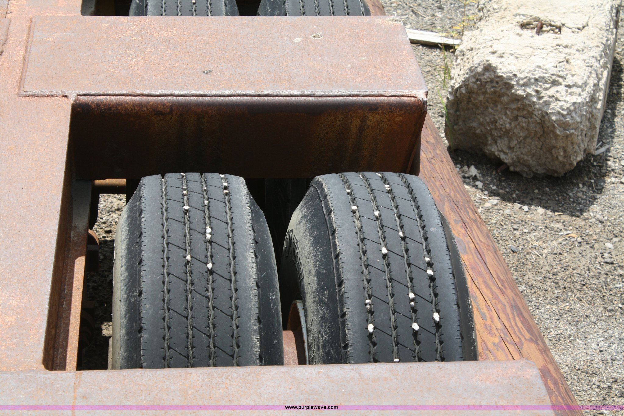 Purple Wave is selling a used Equip. Trailer in Kansas. This item is a 1980 Hyster low boy trailer with the following: Detachable neck, 18'L x 96"W deck, 12'L over axles, Air brakes, Triple axle, 16 HP gas engine, Does not run, 10.00R15 tires