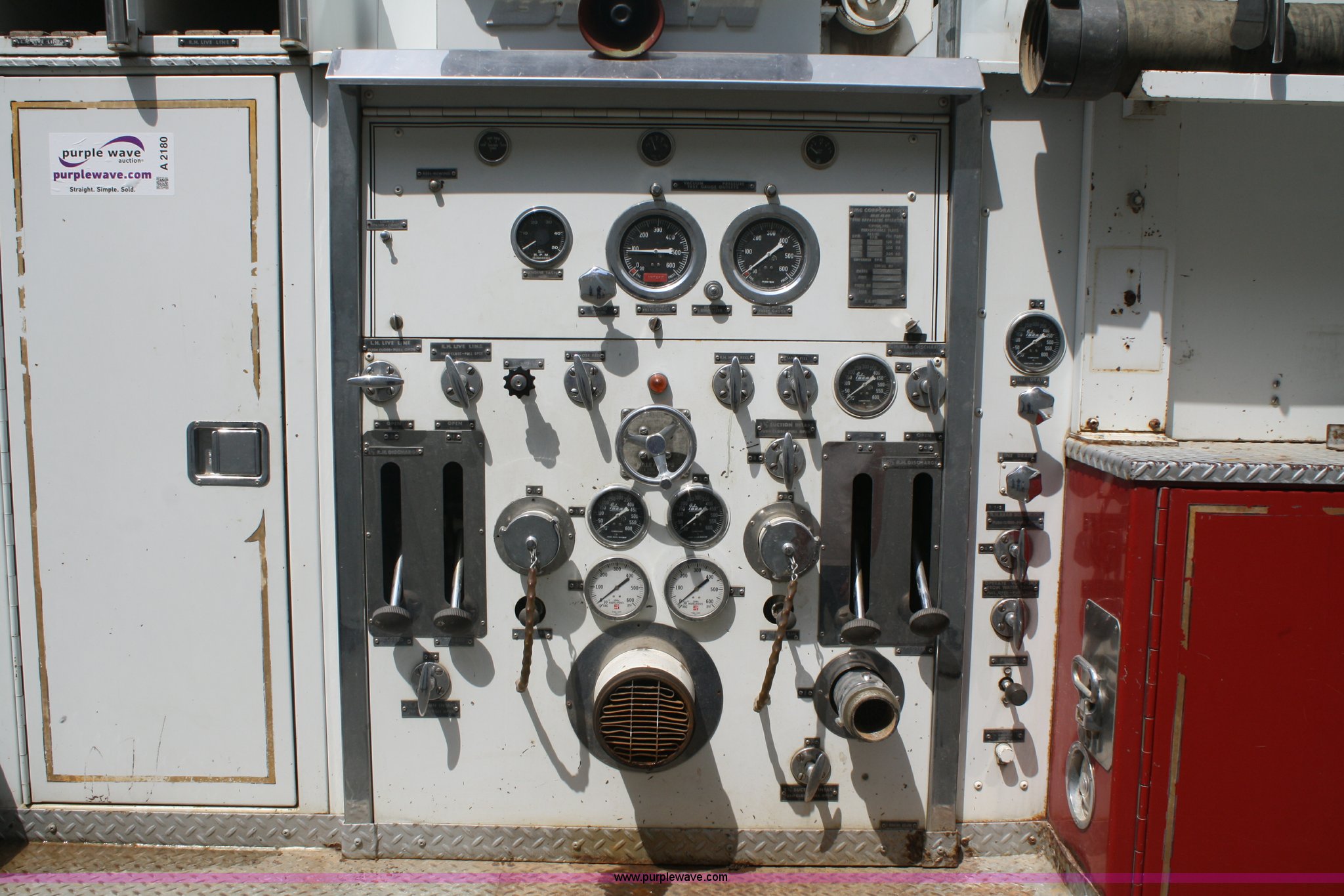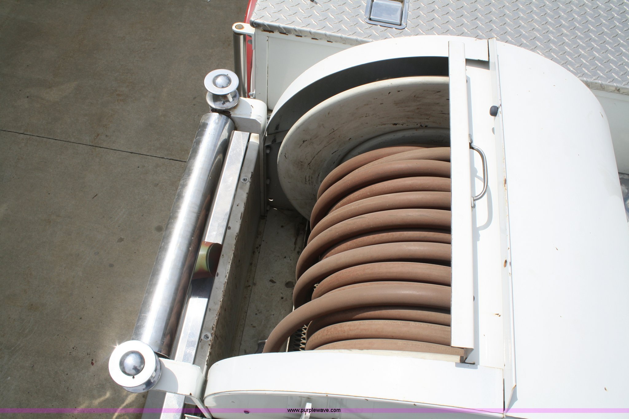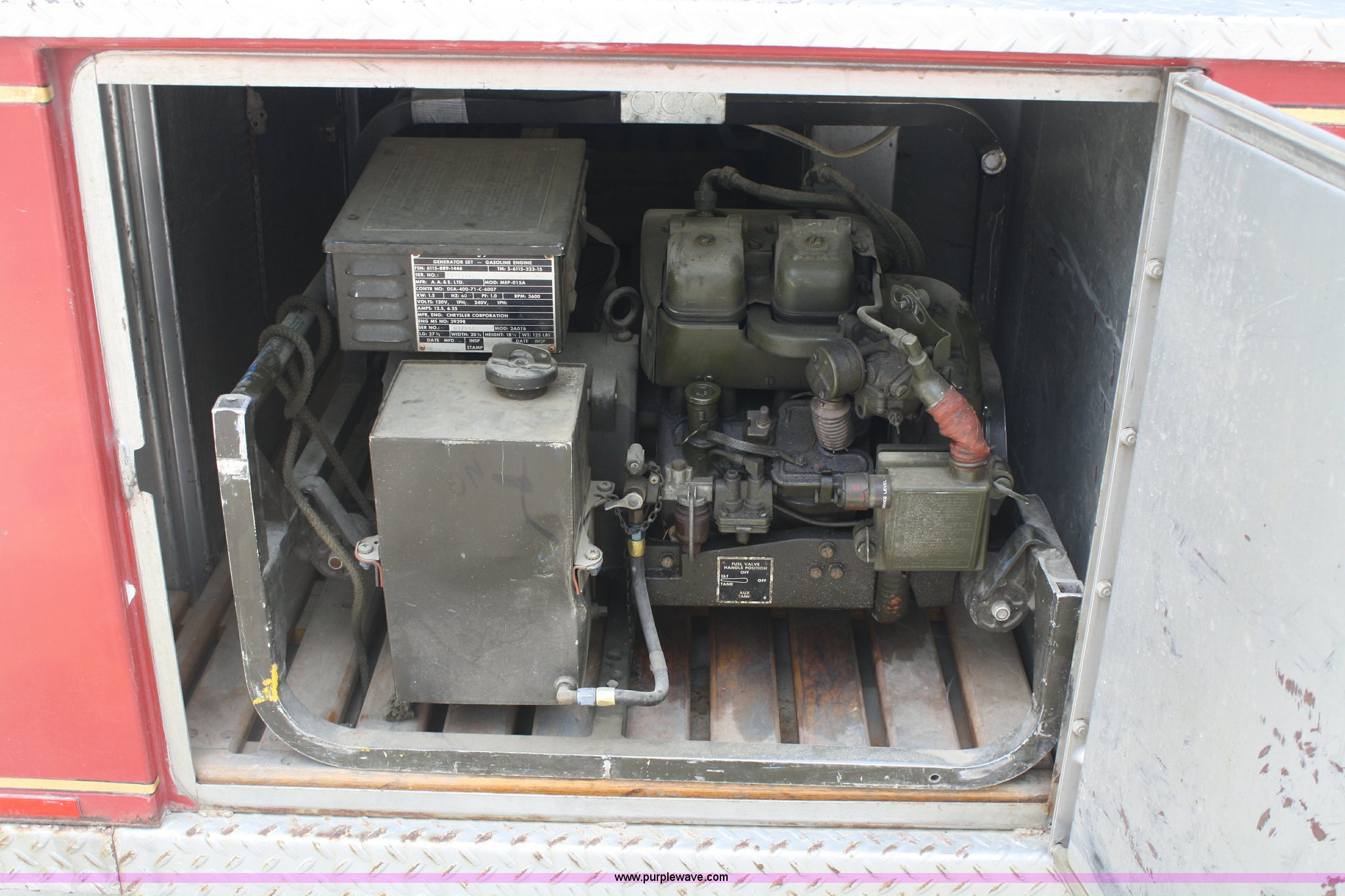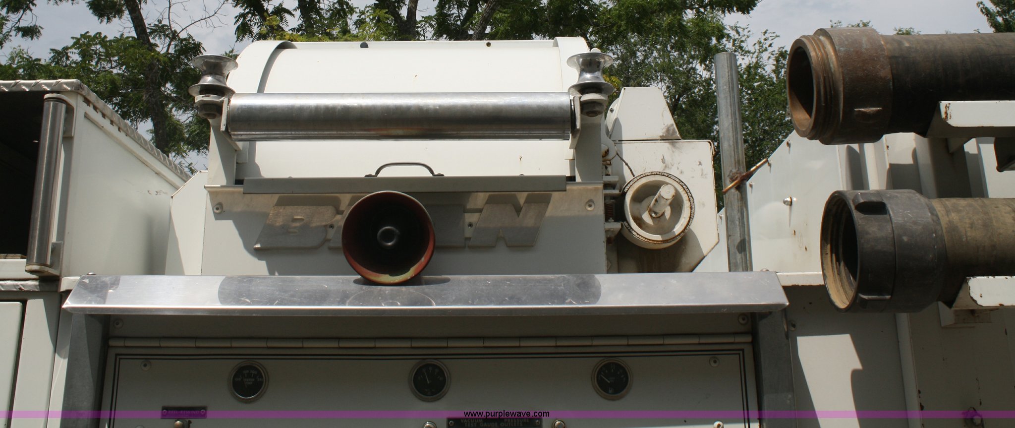 Purple Wave is selling a used Fire Truck or Emergency Vehicle in Kansas. This item is a 1975 Ford Bean fire truck with the following: 19,268 miles on odometer, 535 V8 gas engine, Approx. 150 miles on engine, Runs rough, Five speed manual transmission, Micro-lok brake system, 1.5 KW gas generator, (3) spotlights, (2) front, one rear, Federal signal light bar, Sonic siren with controller, 1,000 gpm Hale pump, 750 gallon tank, Water outlets, (2) 2.5" rear, (2) 2.5" passenger side, (2) 2.5" driver side, Water intakes, 5" passenger side, (2) 2.5" passenger side, 5" and 2.5" driver side, (2) 1" hose reels with hose and nozzle, 24' extension ladder, 14' roof ladder, 10' attic ladder, (2) 5" x 10' section hoses, 9.00-20 tires, One battery missing