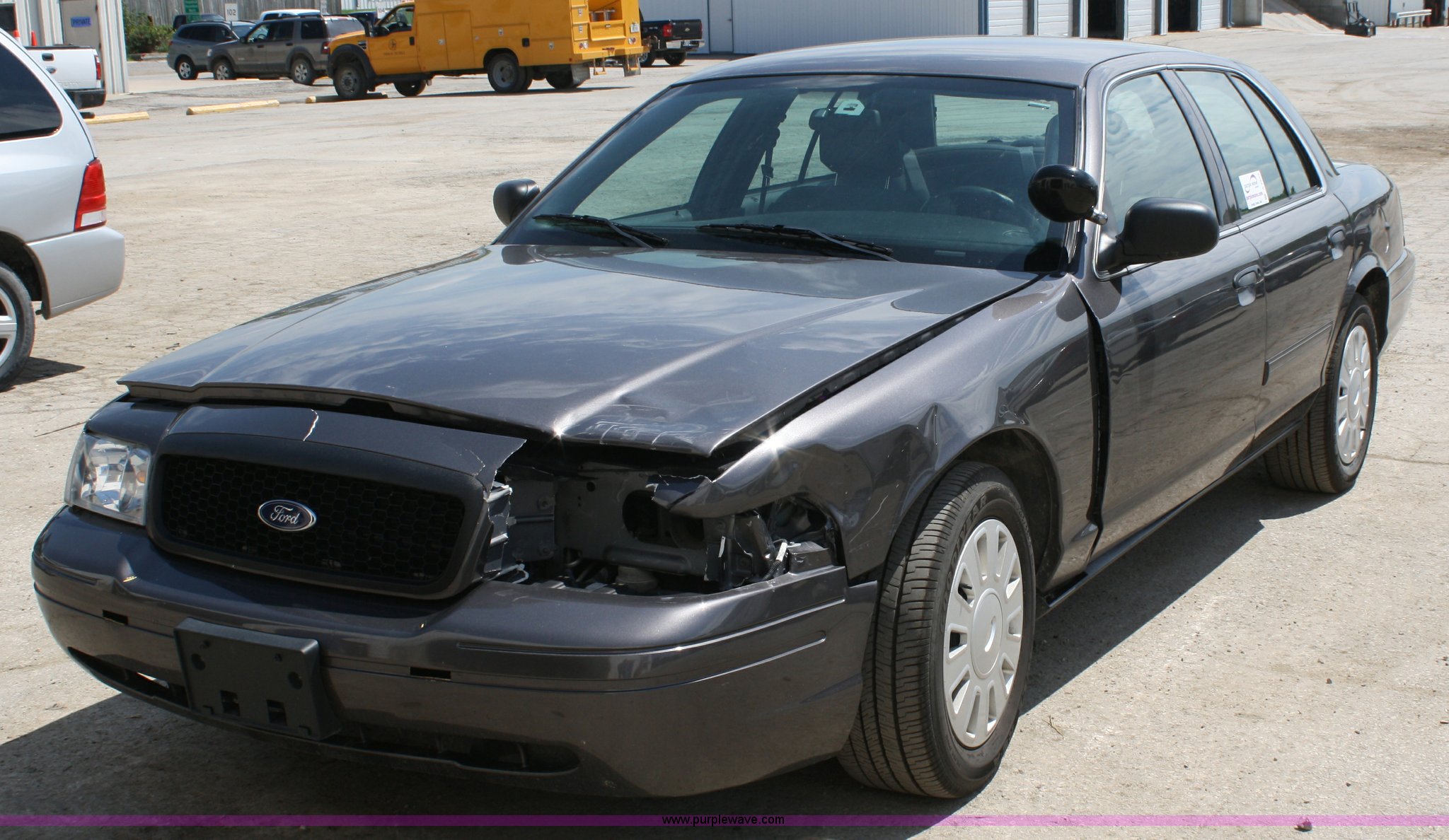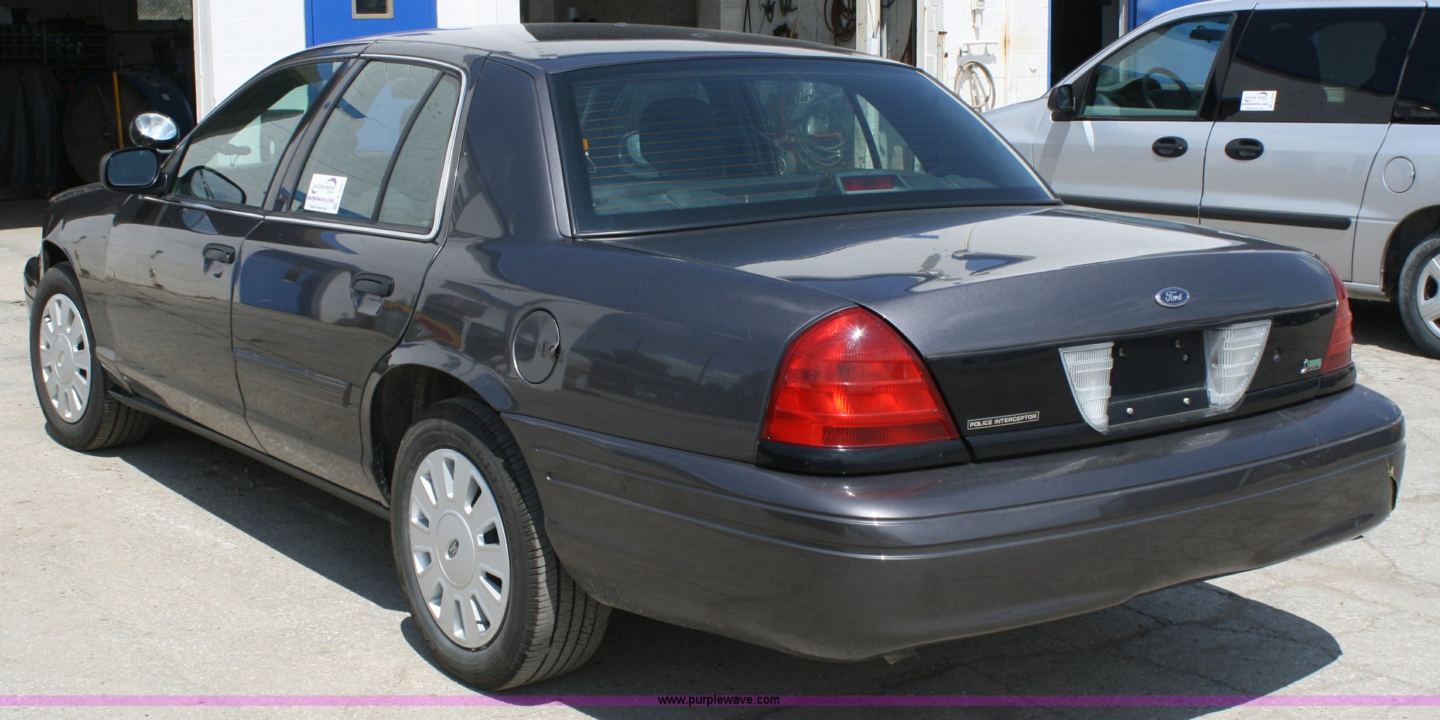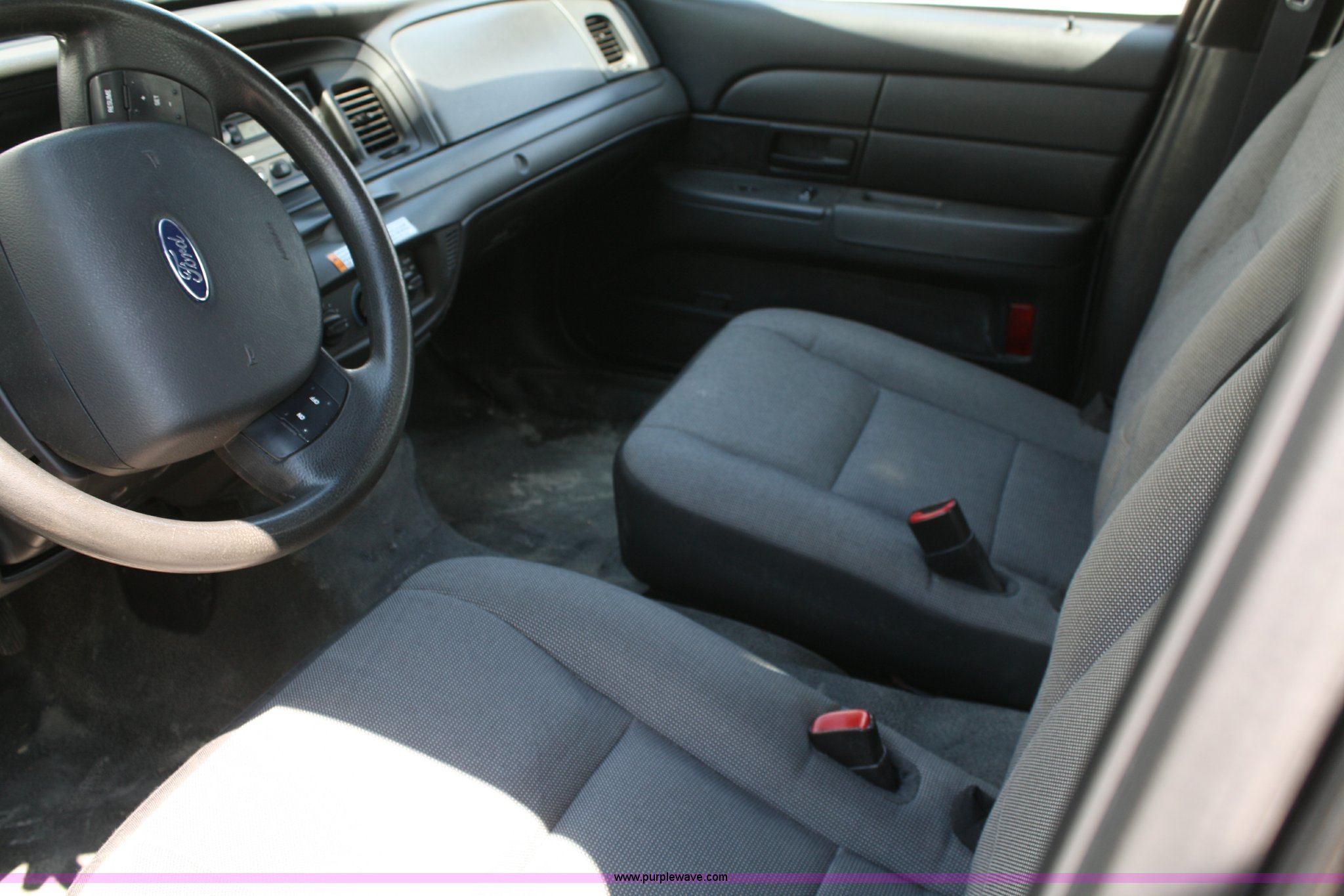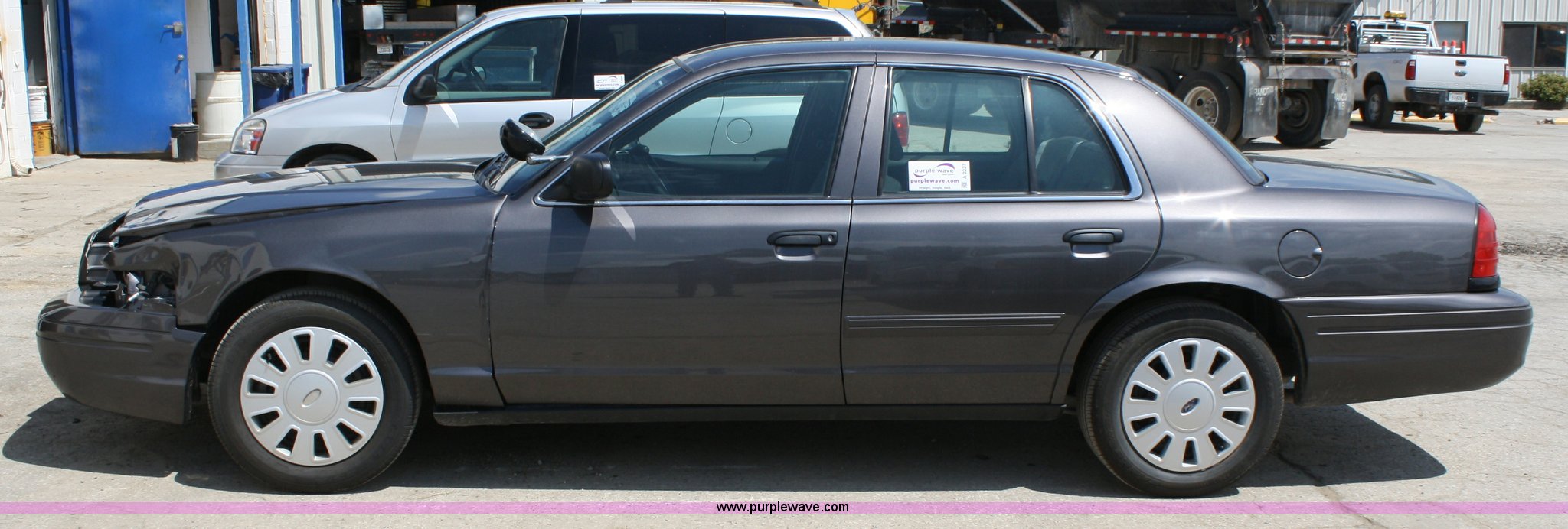 Purple Wave is selling a used Passenger Vehicle in Kansas. This item is a 2009 Ford Crown Victoria Police Interceptor with the following: 76,546 miles on odometer, 4.6L V8 EFI engine, Automatic transmission, AC and heat, Tilt, Cruise, AM/FM, Power windows, locks, mirrors, and seats, Adjustable pedals, 235/55R17 tires, Body damage to left front