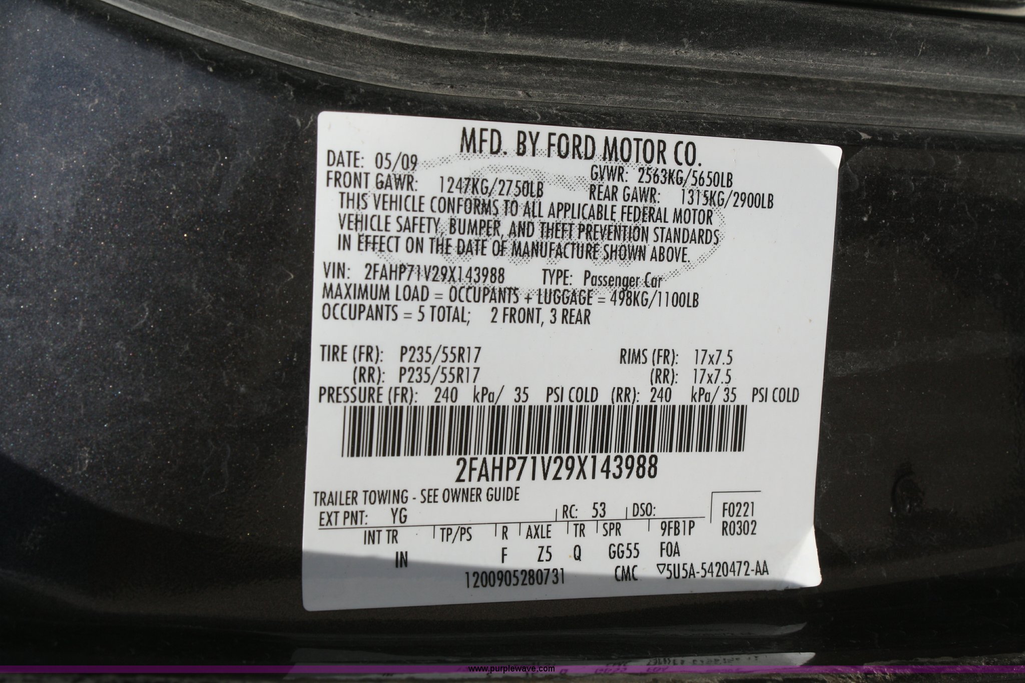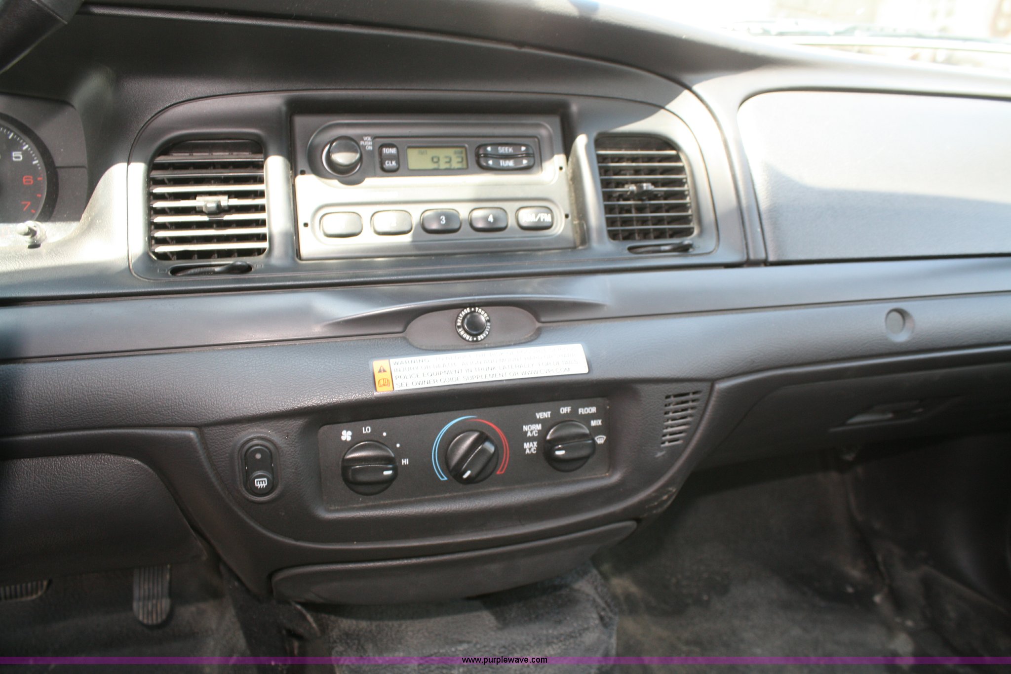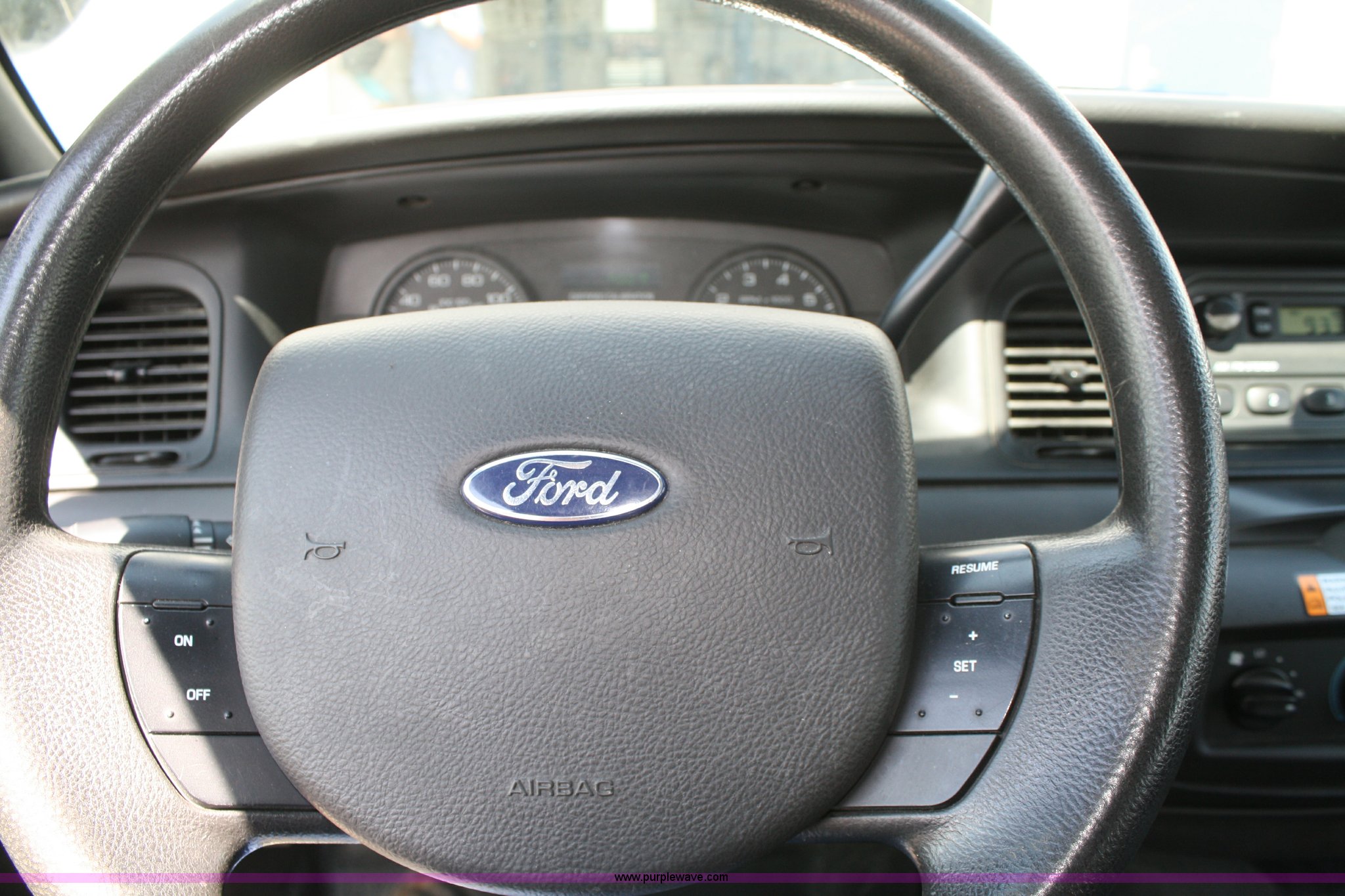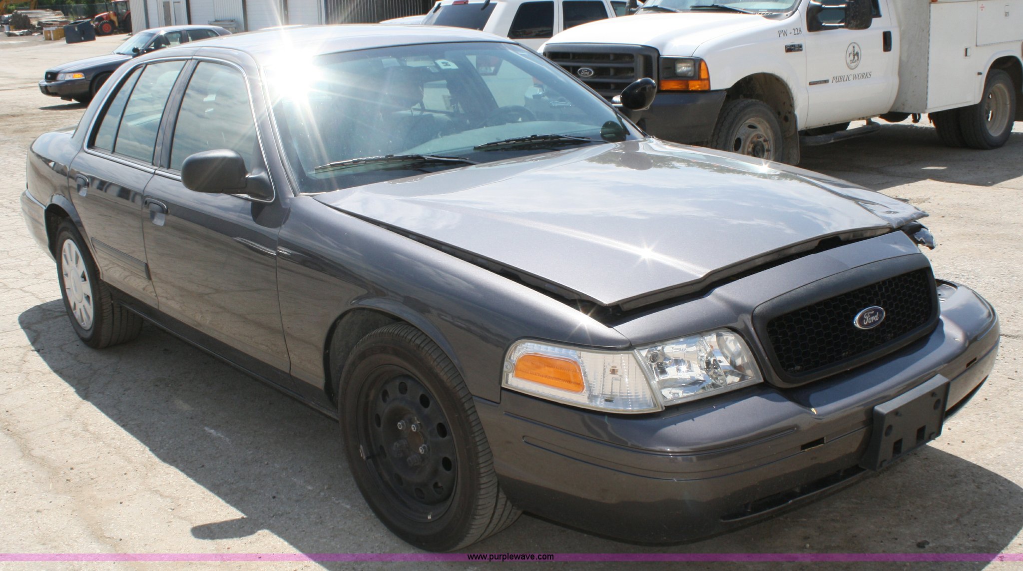 Purple Wave is selling a used Passenger Vehicle in Kansas. This item is a 2009 Ford Crown Victoria Police Interceptor with the following: 76,546 miles on odometer, 4.6L V8 EFI engine, Automatic transmission, AC and heat, Tilt, Cruise, AM/FM, Power windows, locks, mirrors, and seats, Adjustable pedals, 235/55R17 tires, Body damage to left front
