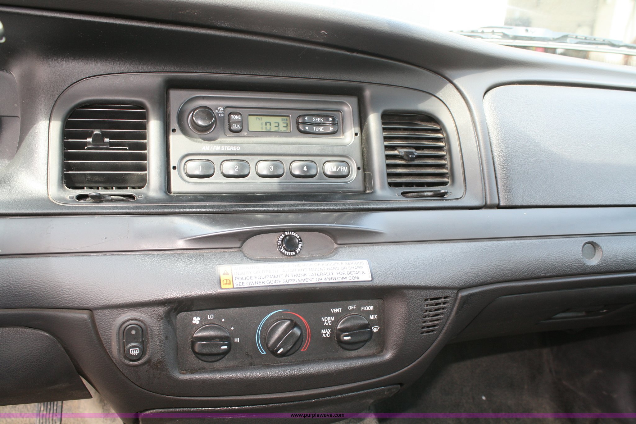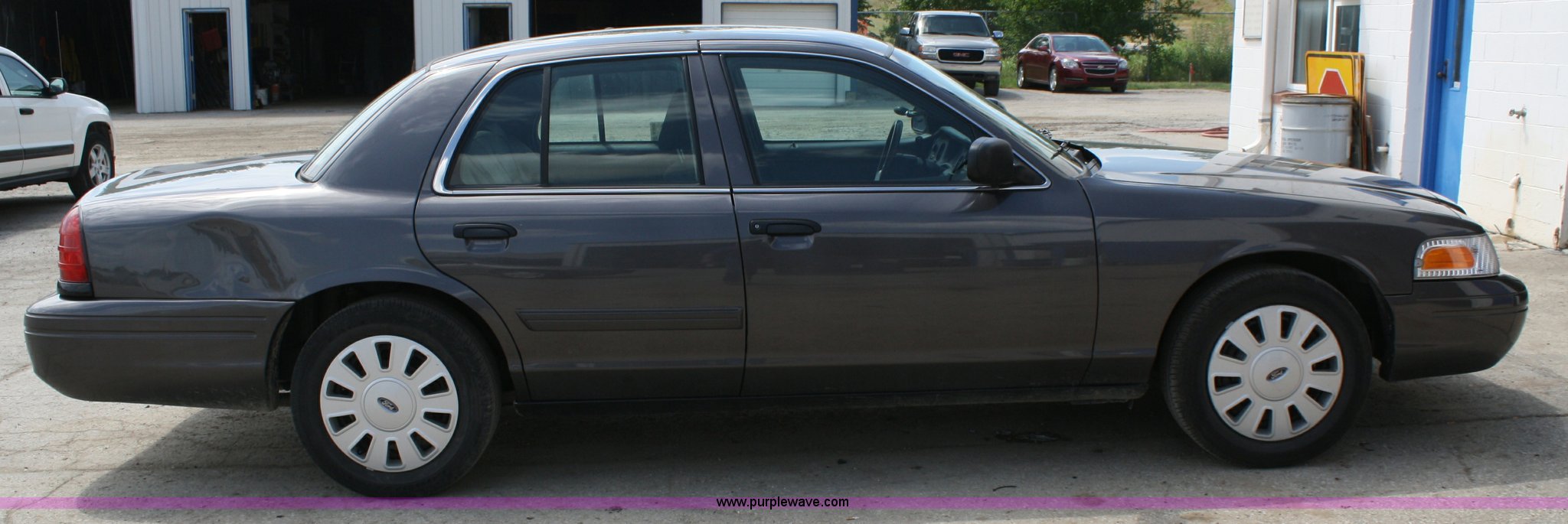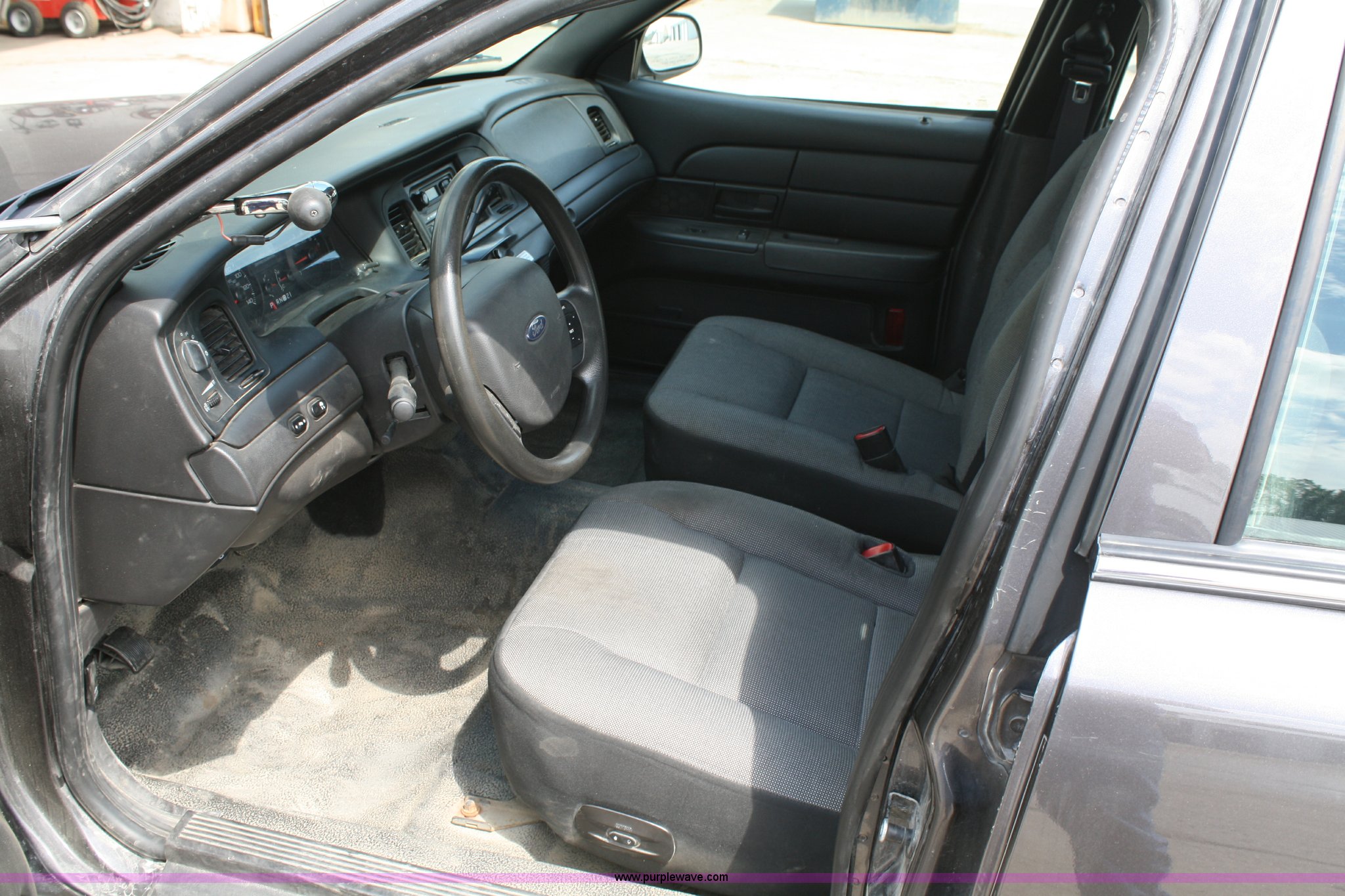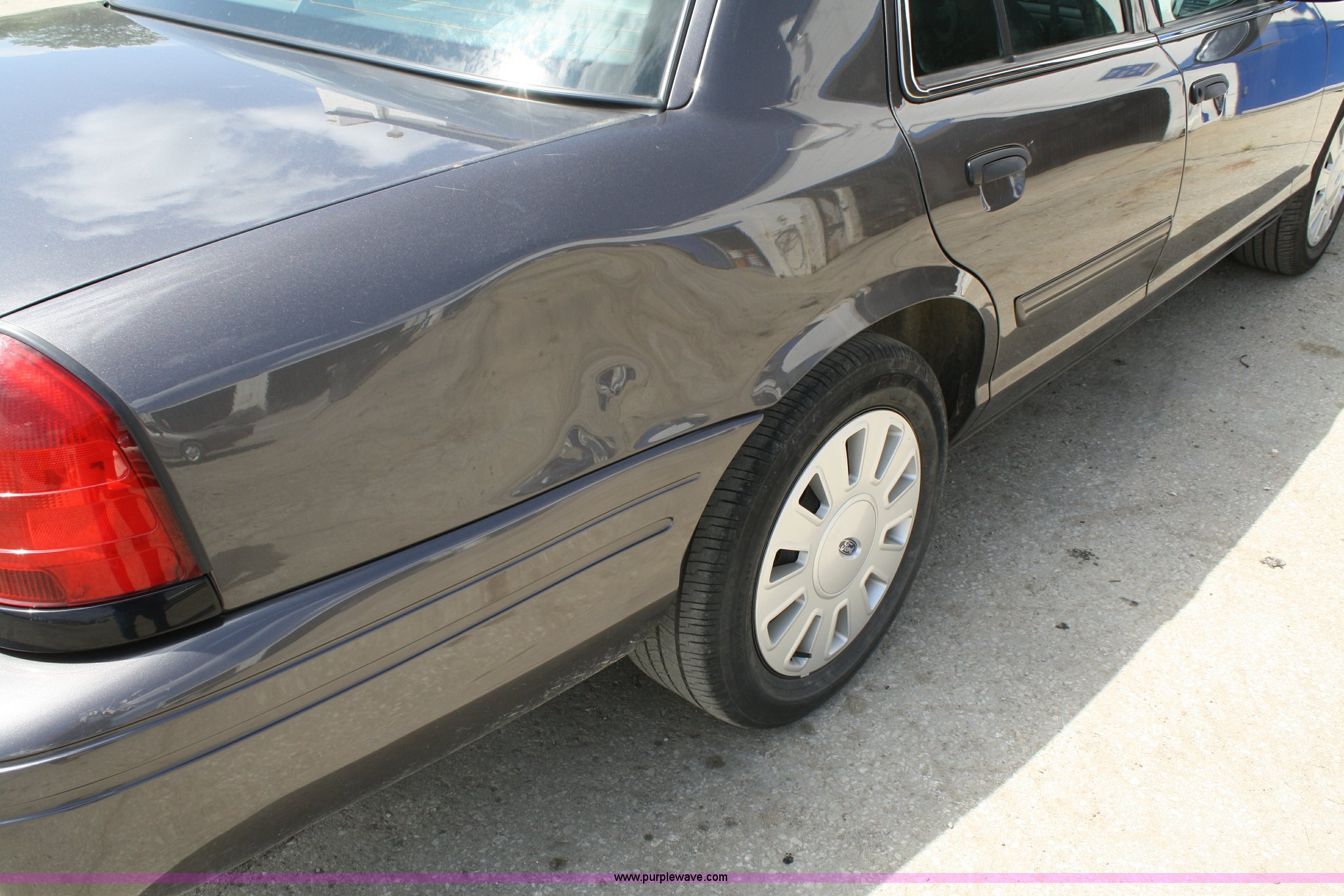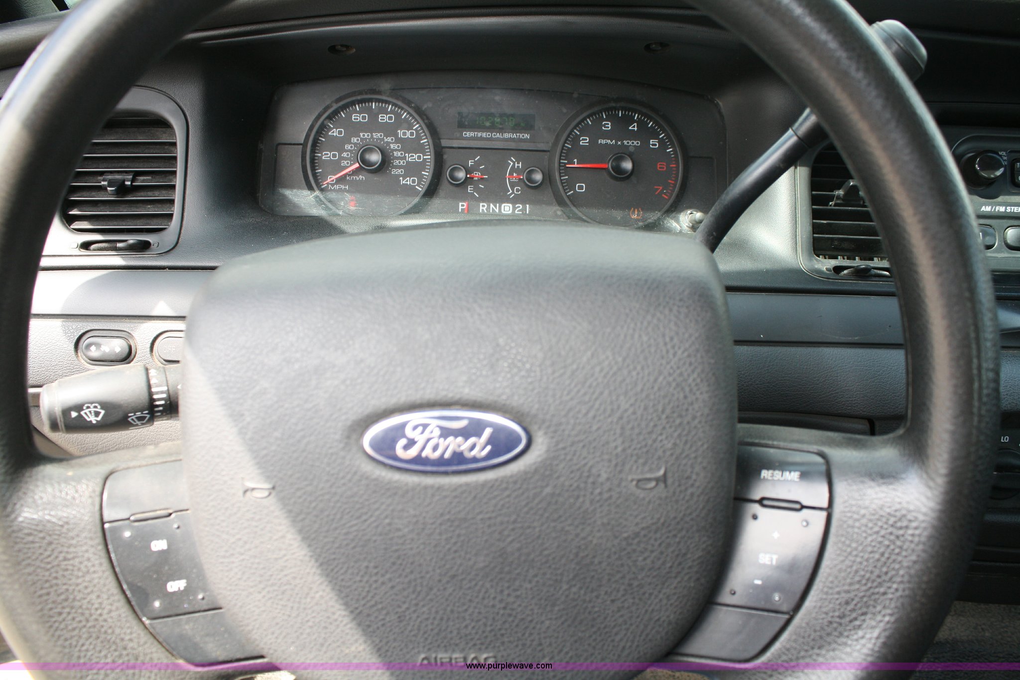Purple Wave is selling a used Passenger Vehicle in Kansas. This item is a 2009 Ford Crown Victoria Police Interceptor with the following: 102,870 miles on odometer, 4.6L V8 EFI engine, Automatic transmission, AC and heat, Tilt, Cruise, AM/FM, Power windows, locks, mirrors, and seats, Adjustable pedals, 235/55R17 tires, Damage to right rear quarter panel