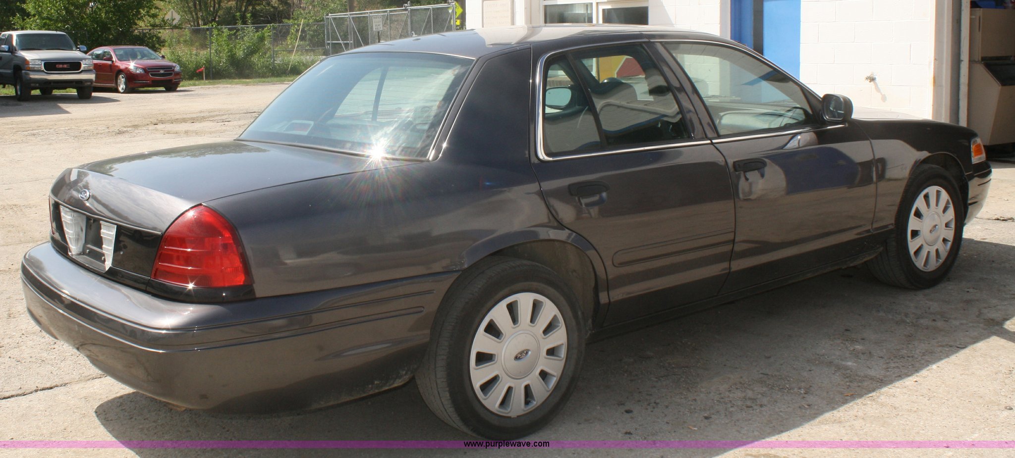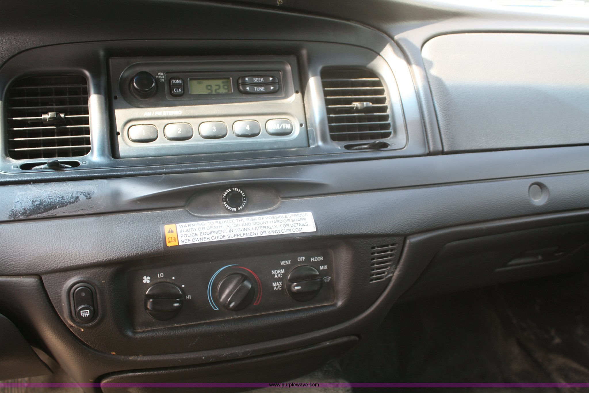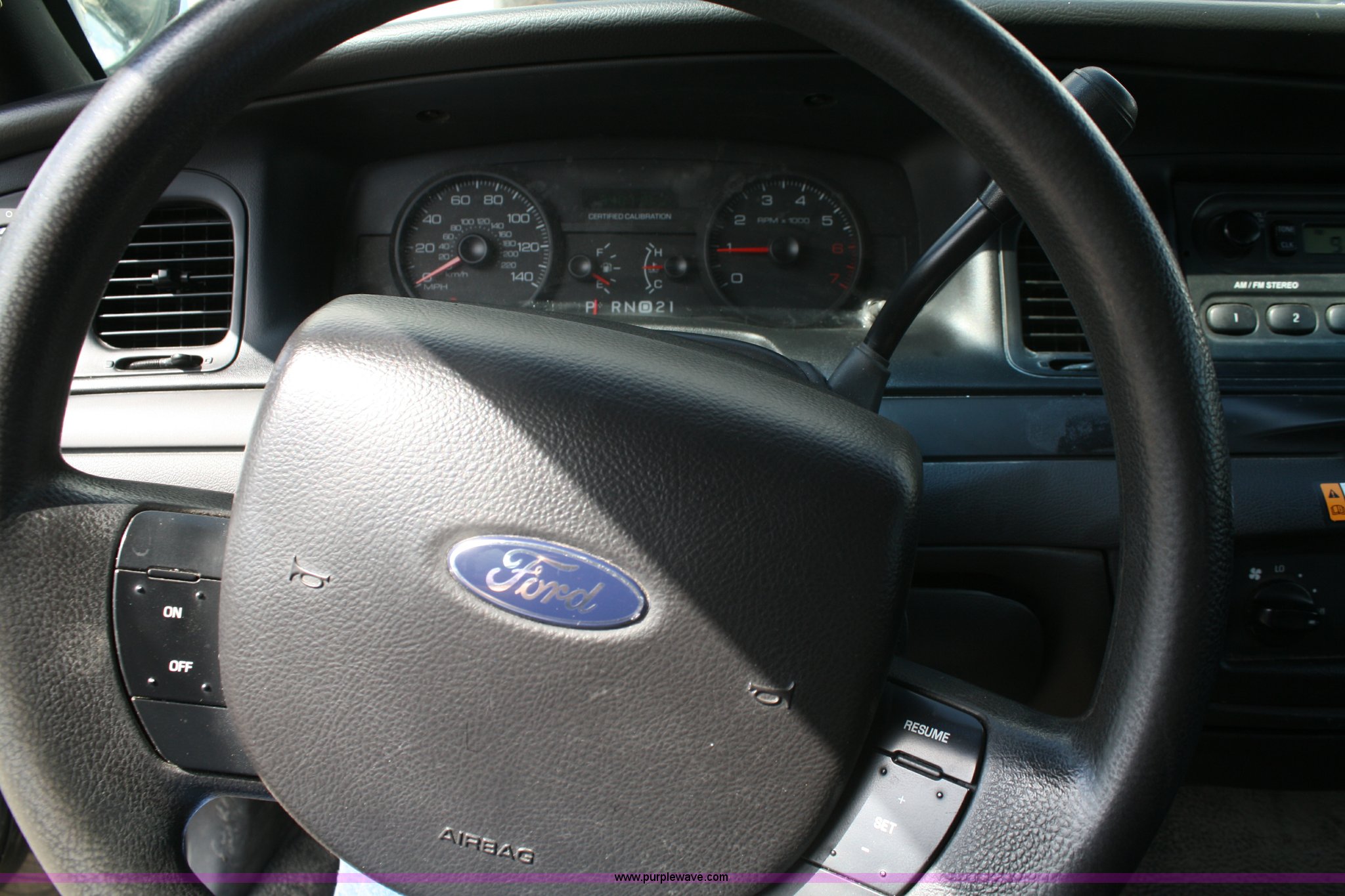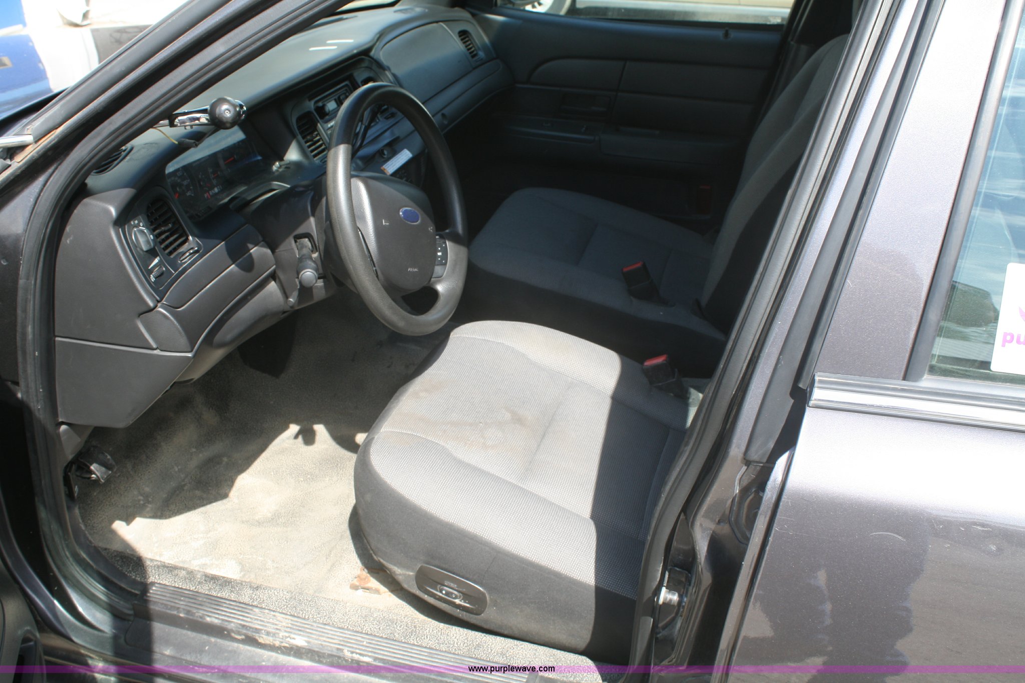 Purple Wave is selling a used Passenger Vehicle in Kansas. This item is a 2008 Ford Crown Victoria Police Interceptor with the following: 94,011 miles on odometer, 4.6L V8 EFI engine, Automatic transmission, AC and heat, Tilt, Cruise, AM/FM, Power windows, locks, mirrors, and seats, 235/55R17 tires