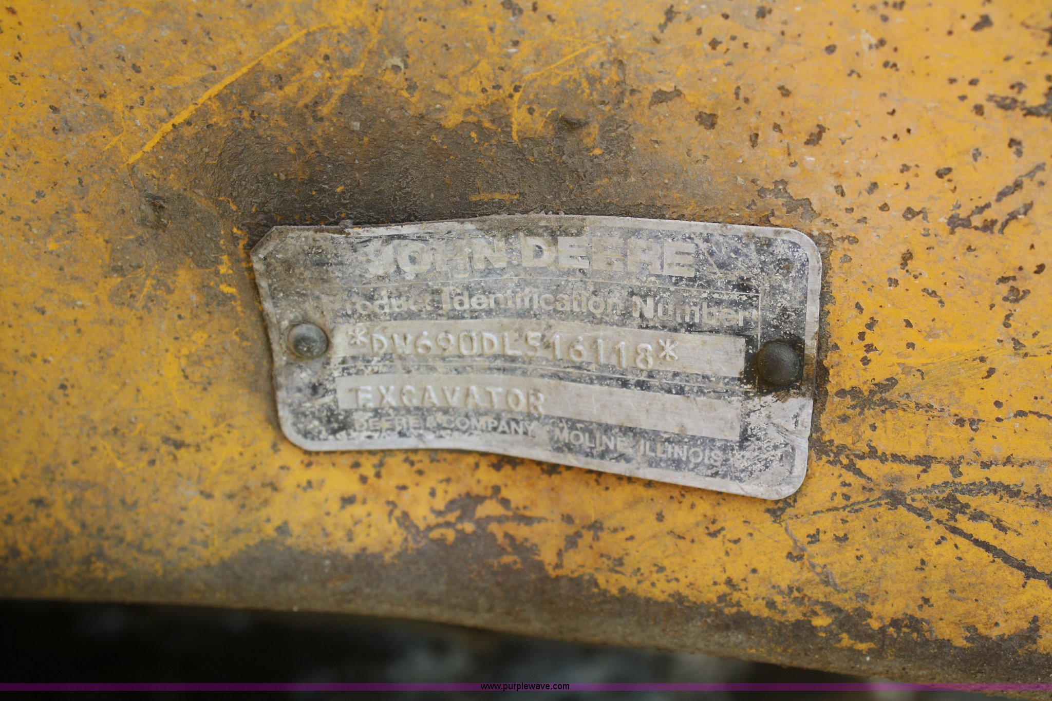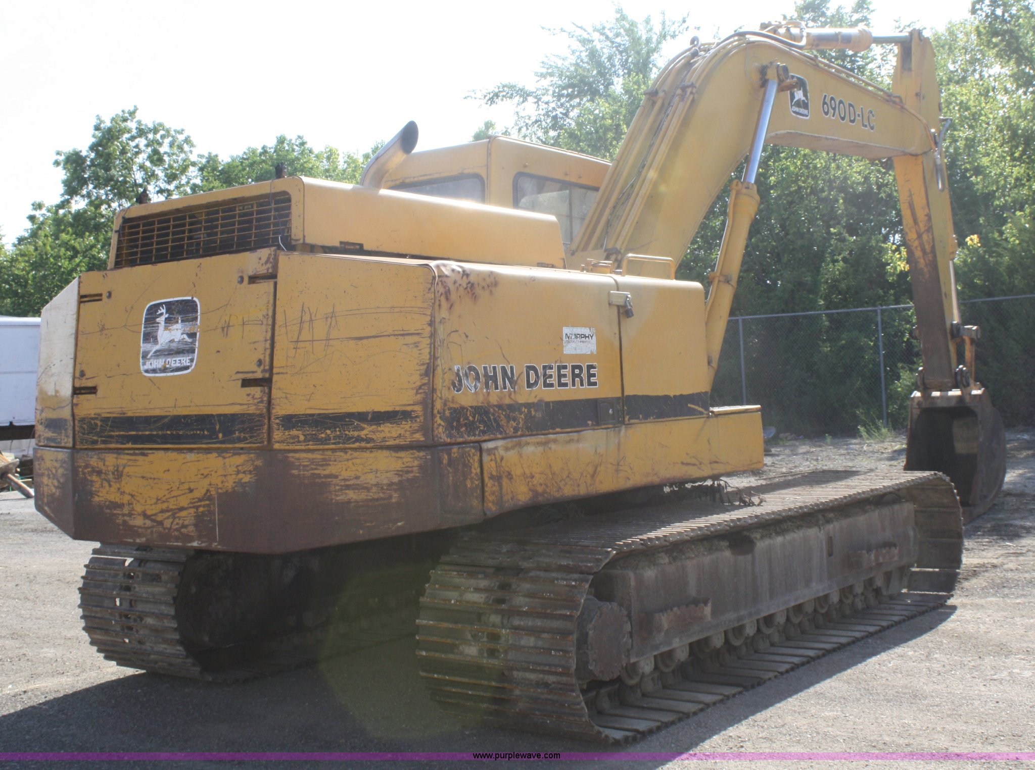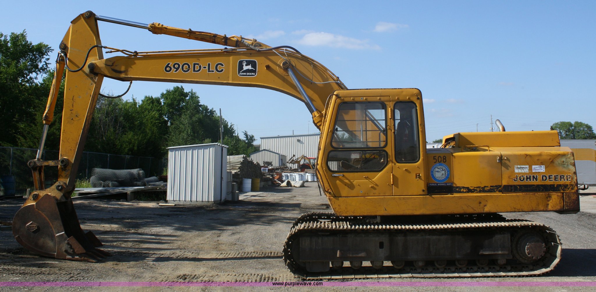 Purple Wave is selling a used Hydraulic Excavator in Kansas. This item is a 1987 John Deere 690D-LC excavator with the following: Hours unknown, John Deere six cylinder diesel engine, 125 HP, 32" bucket, 7'3" stick, 30"W tracks, 41,050 lbs. base operating weight, Starter solenoid needs replaced, Boom lift cylinder leaks, Serial 516118