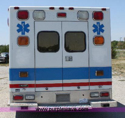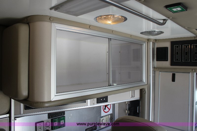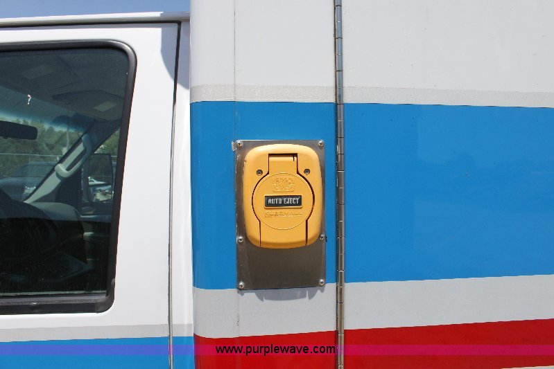 Purple Wave is selling a used Fire Truck or Emergency Vehicle in Kansas. This item is a 2006 Ford E350 ambulance with the following: 110,835 miles on odometer, 6,802 hours on meter, Powerstroke 6.0L V8 DI diesel engine, Automatic transmission, AC and heat, Rear climate control, AM/FM/CD, Tilt, Cruise, Power windows, locks, and mirrors, Whelen siren and PA controls, MedTec light and siren controls, (3) rear oxygen outlets, Rear vacuum outlet, Rear light controls, 225/75R16 tires