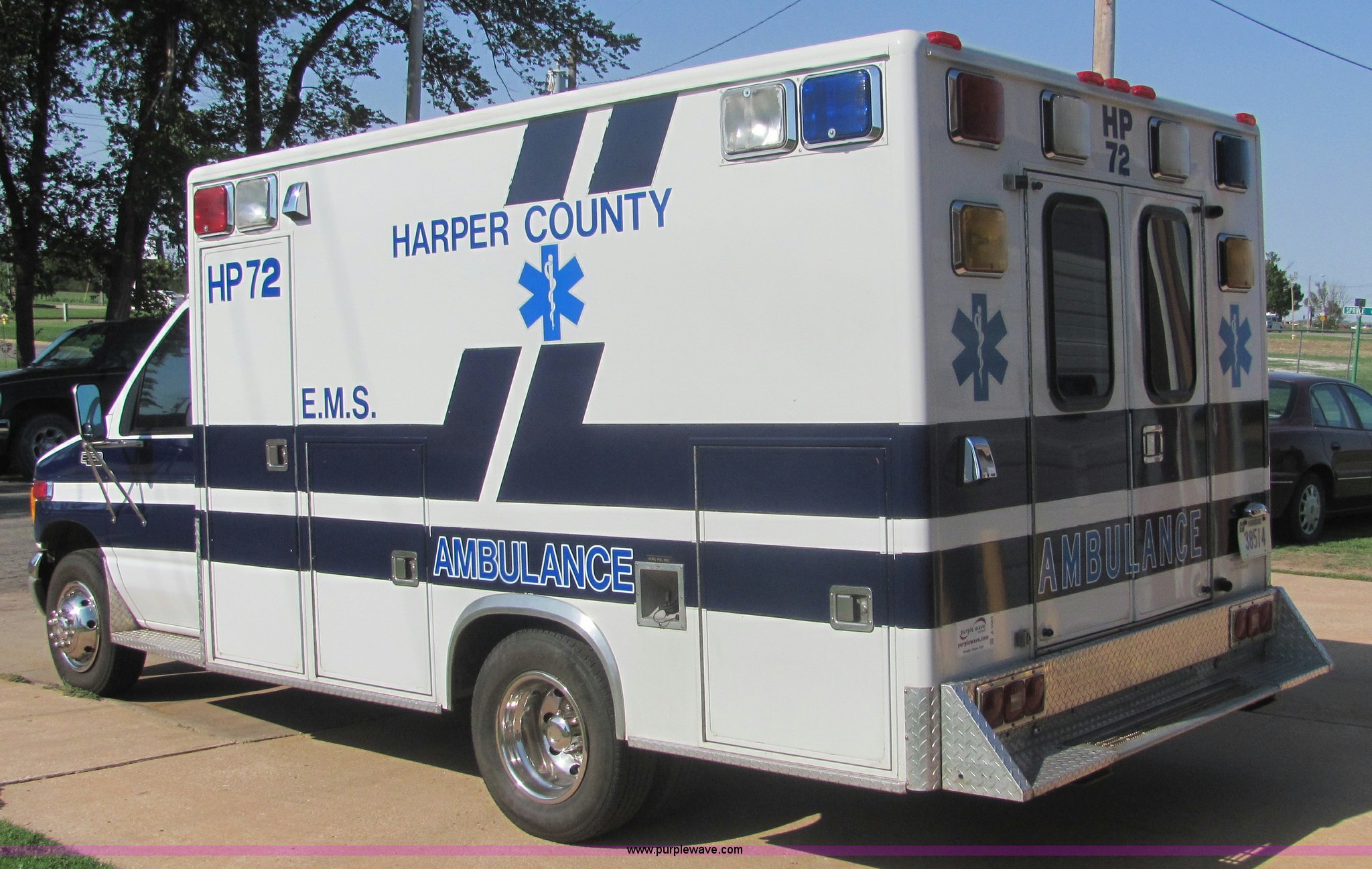 2000 Ford E350 Super Duty ambulance. 110,528 miles on odometer Mileage will vary, in use, Powerstroke 7.3L V8 diesel engine, Automatic transmission, AC and heat, front and rear, Tilt, Cruise, Power windows and locks, Contents not included. 1FDWE35F1YHB71925. Harper County EMS. 123 Jennings. Anthony, KS 67003