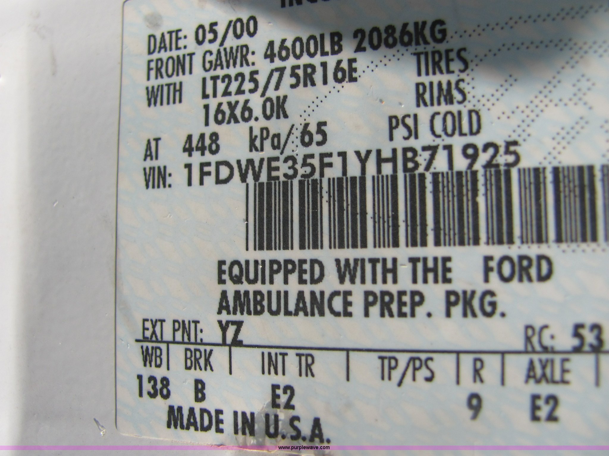 2000 Ford E350 Super Duty ambulance | SOLD! September 13 Government Internet Auction