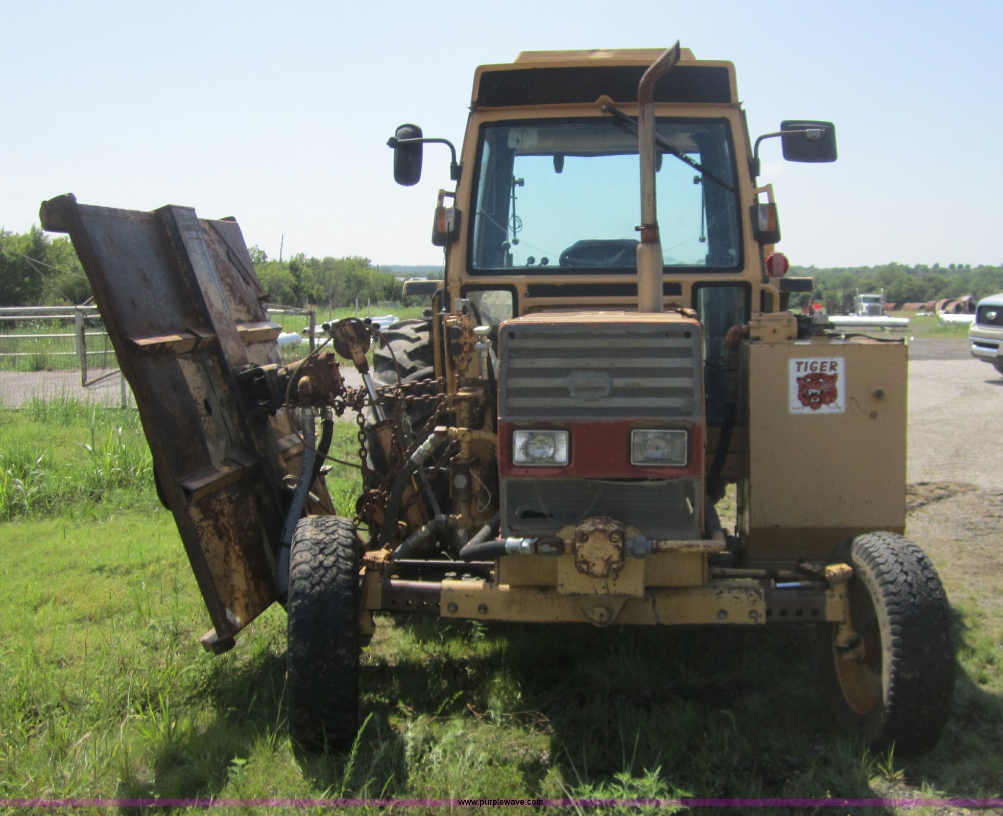 Purple Wave is selling a used Tractor in Kansas. This item is a 1987 Hesston Tiger Special 80-90 tractor with the following: 8,056 hours on meter, 70 HP diesel engine, Manual transmission, 12F-4R gears, AC, Cassette player, 60" side mount mower, 16.9-30 tires, Serial 641268, Unit 191