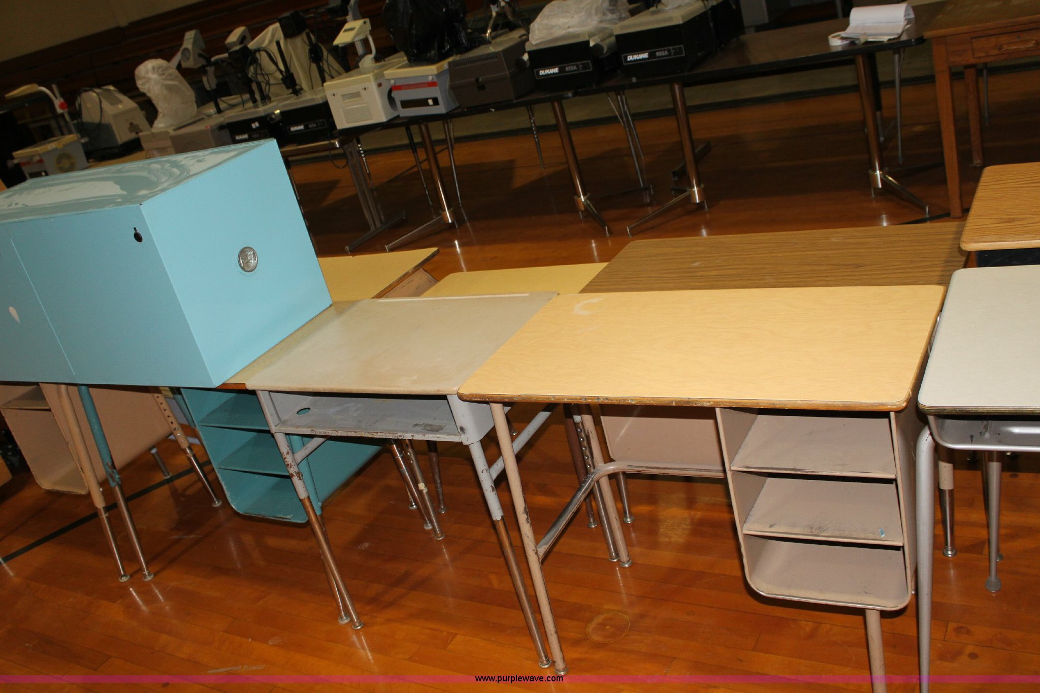 Approximately 40 student desks. Metal storage cabinet. USD 284. 401 Maple. Cottonwood Falls, KS 66845