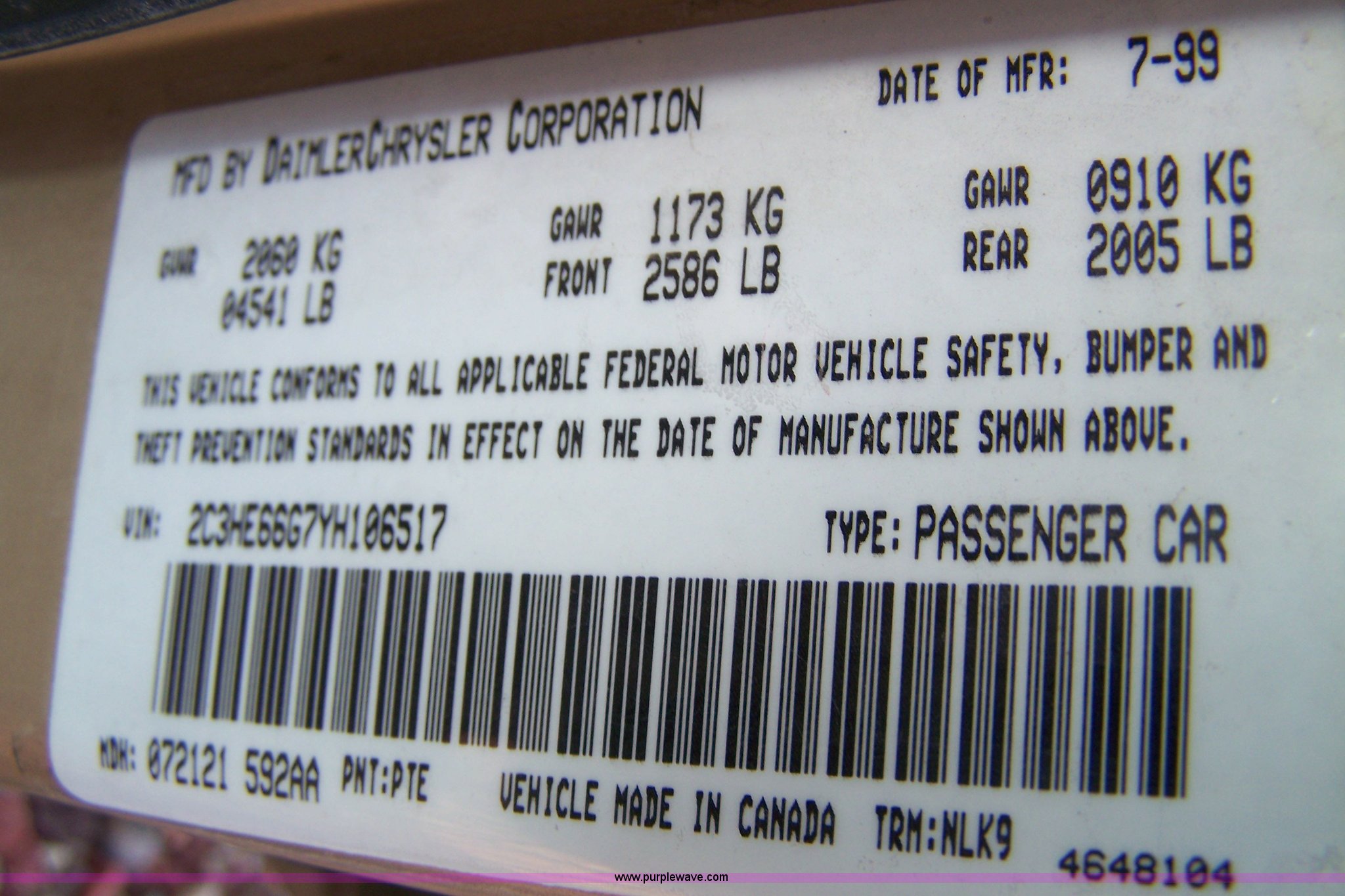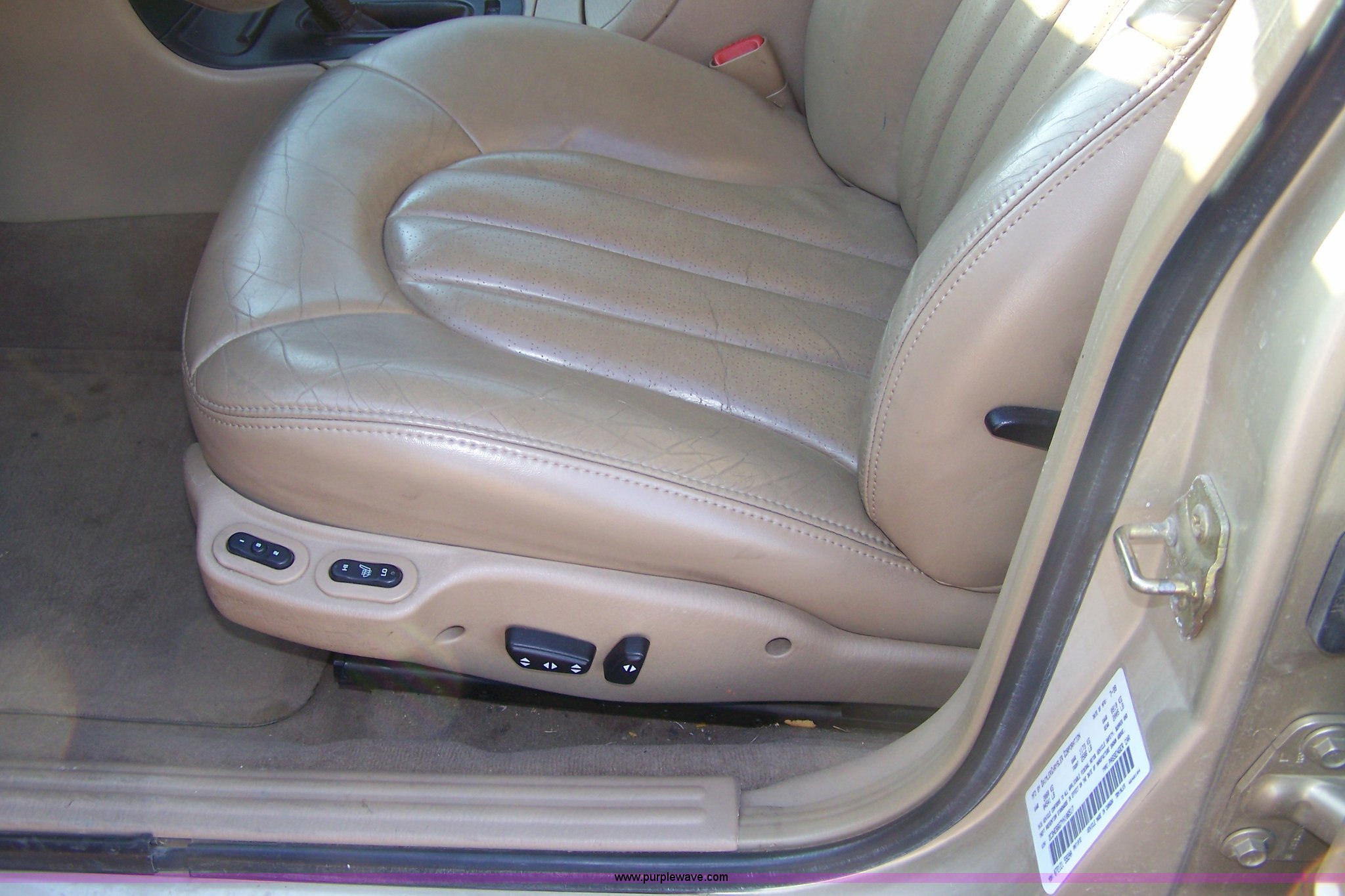 Purple Wave is selling a used Passenger Vehicle in Kansas. This item is a 2000 Chrysler 300M with the following: 71,488 miles on odometer, 3.5L V6 MPI engine, Automatic transmission, AC and heat, Tilt, Cruise, AM/FM/Cassette, Power windows, locks, mirrors, and seats, Leather interior, Sunroof, P235/50R17 tires, Cosmetic damage, Scratches in paint