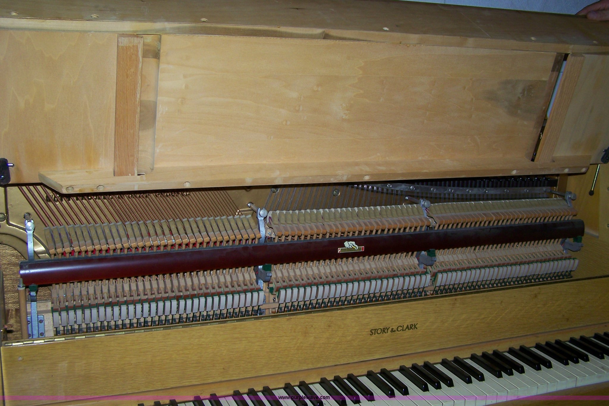 Purple Wave is selling a used Music Equip. in Kansas. This item is a Story & Clark blonde wood piano with the following: Bench included
